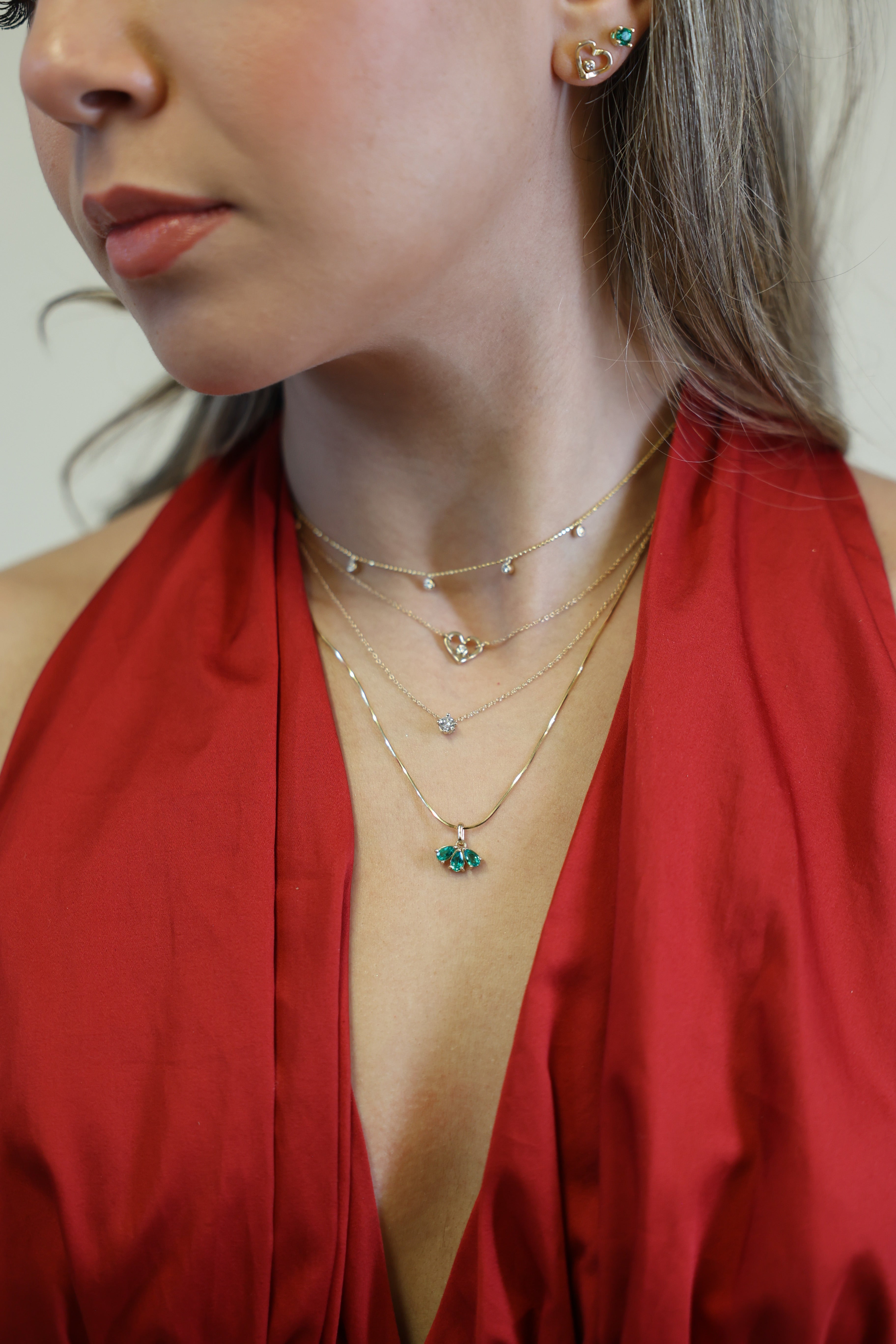 • Family Necklace — 14k Solid Gold LAB Diamond/ Emerald