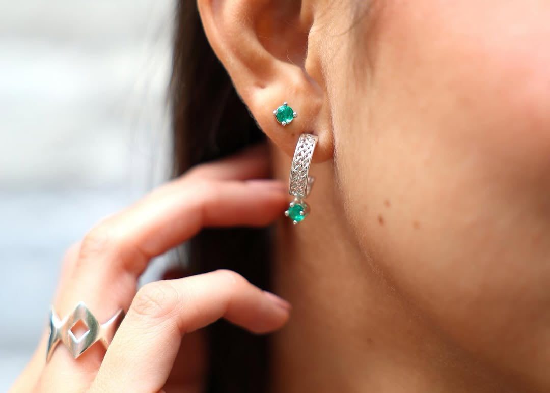• Lab Grown Emerald Stud Earrings with Threaded Post and Back