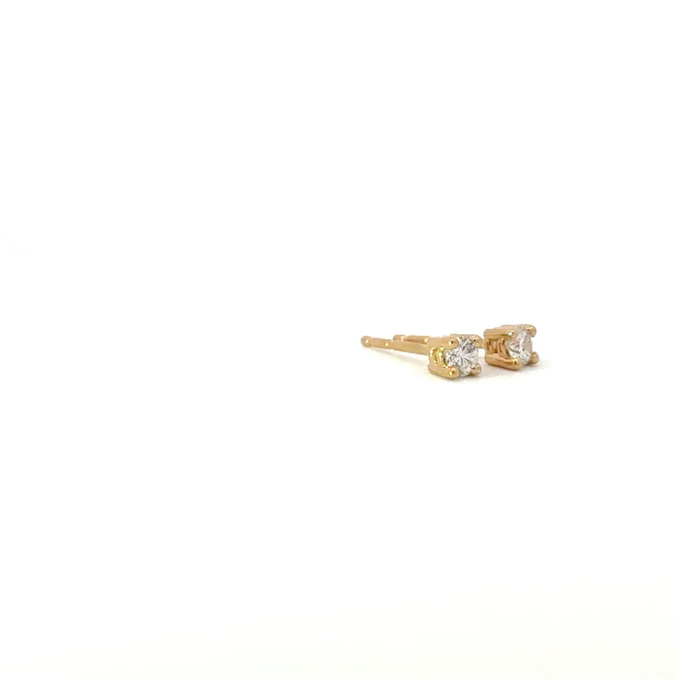 14K Yellow Gold Mini Stud Earrings with Brilliant Round Diamonds