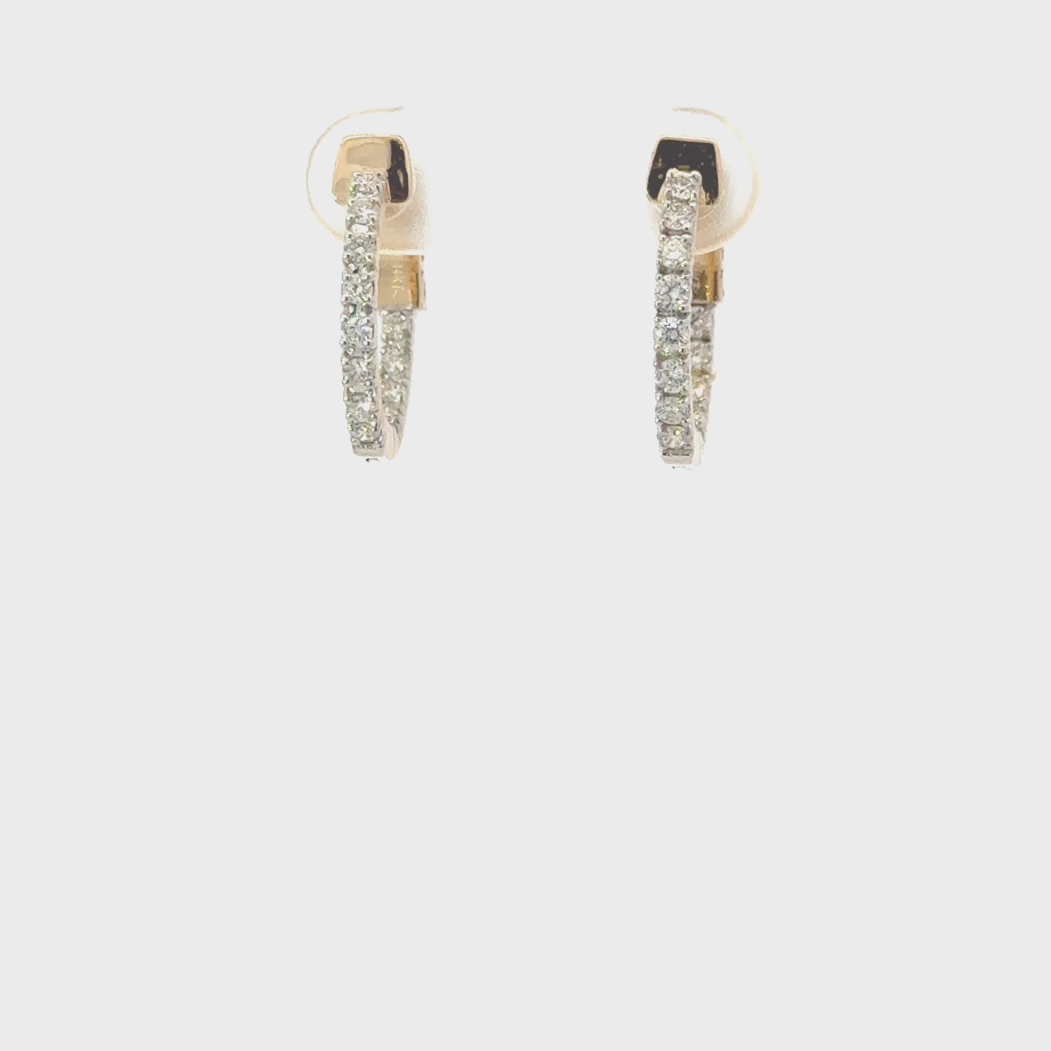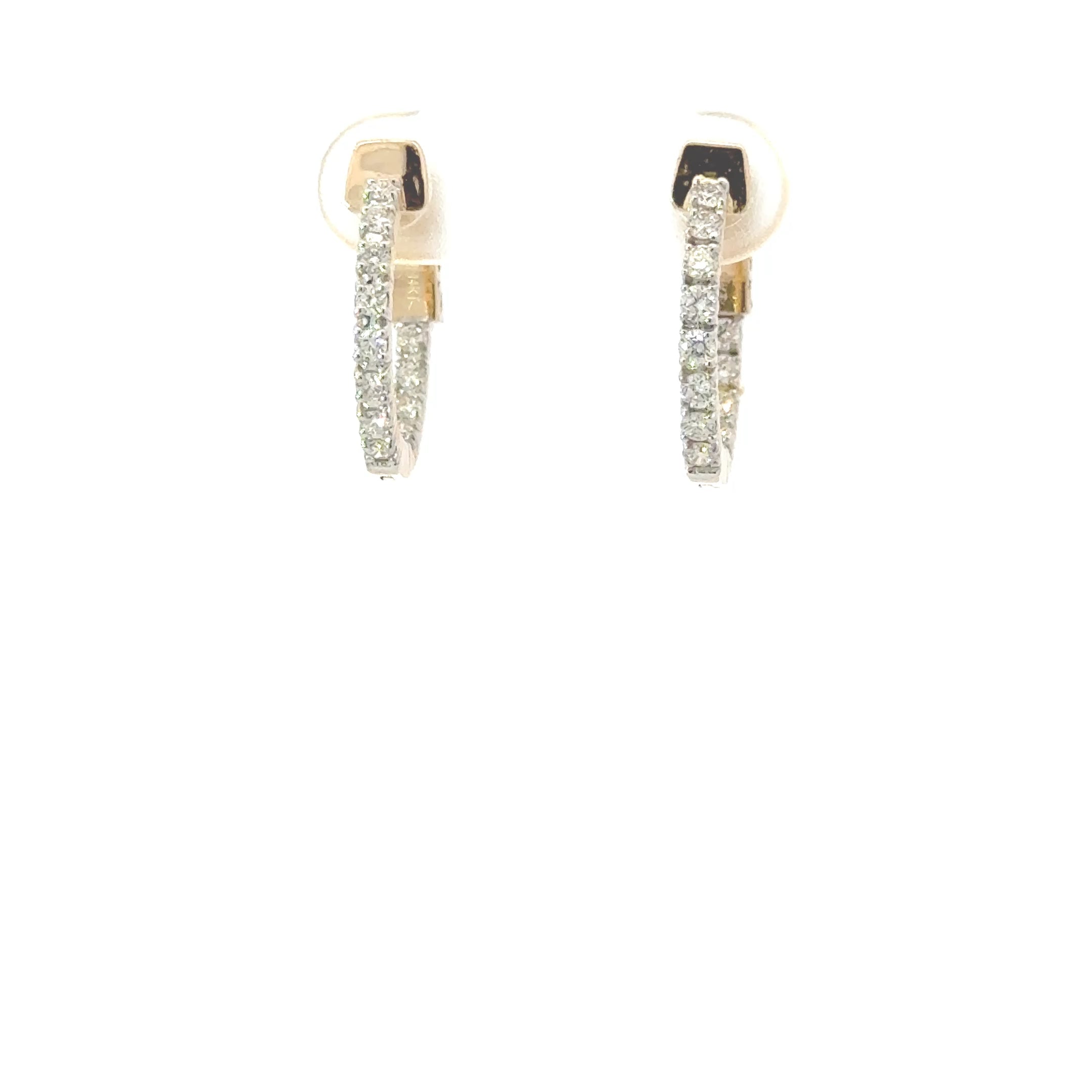14K Yellow Gold NATURAL Diamond In & Out Hoops – 1.05ct