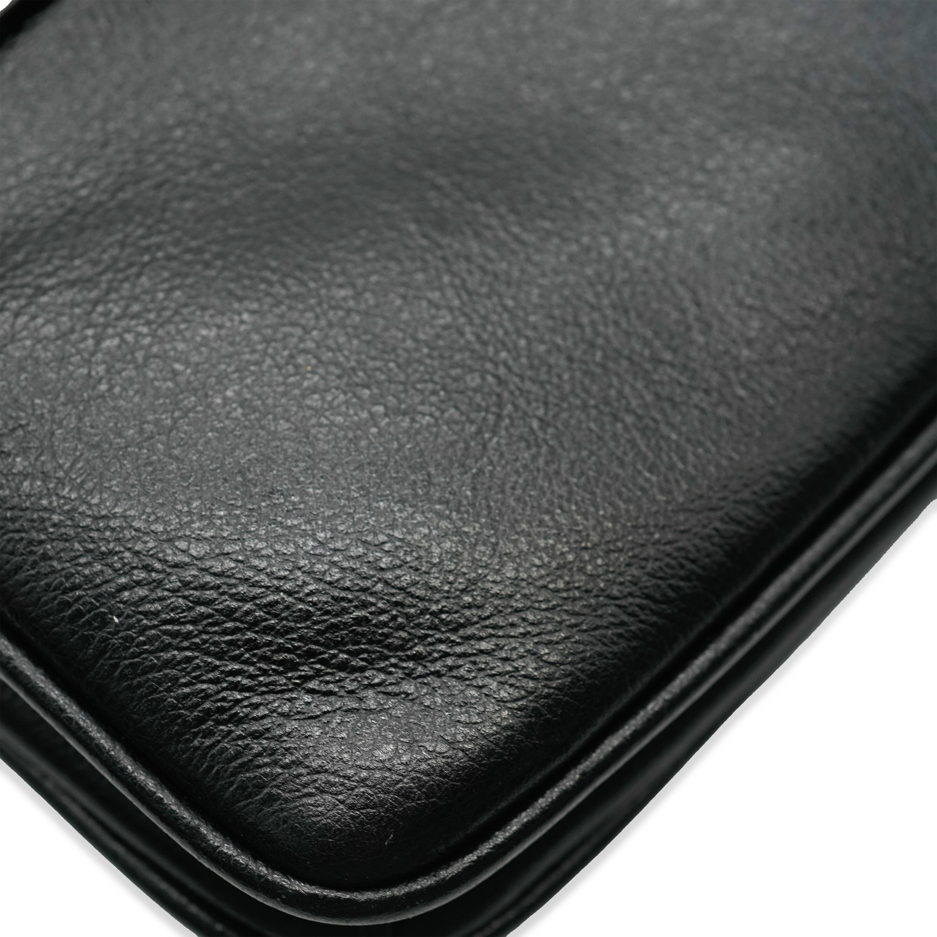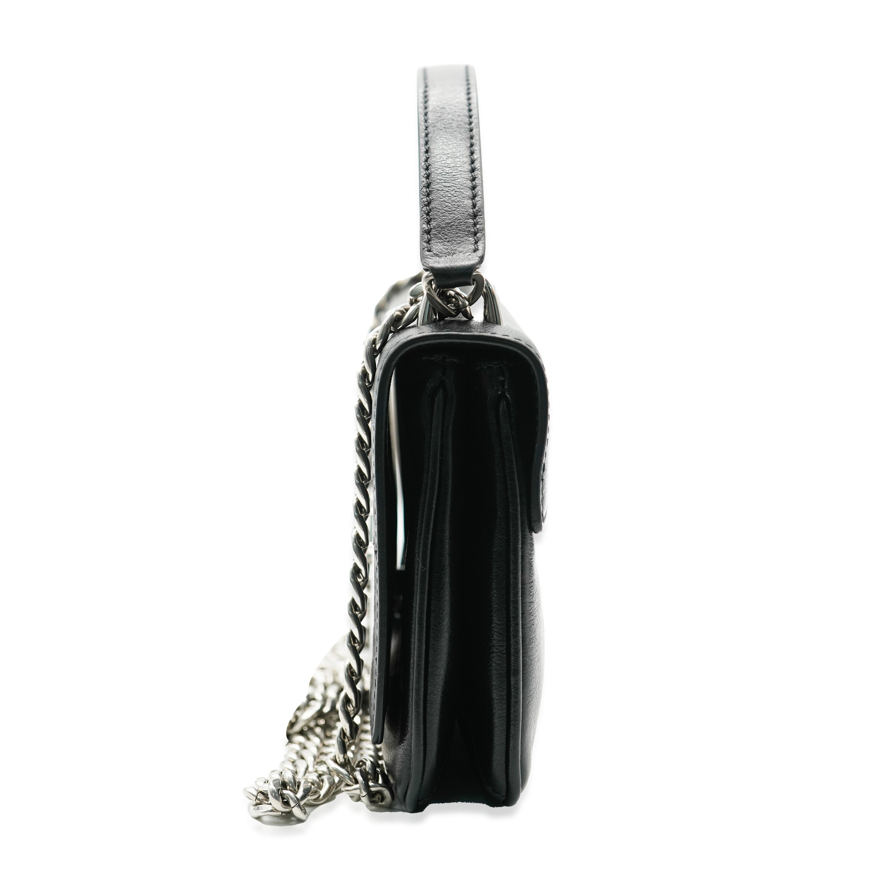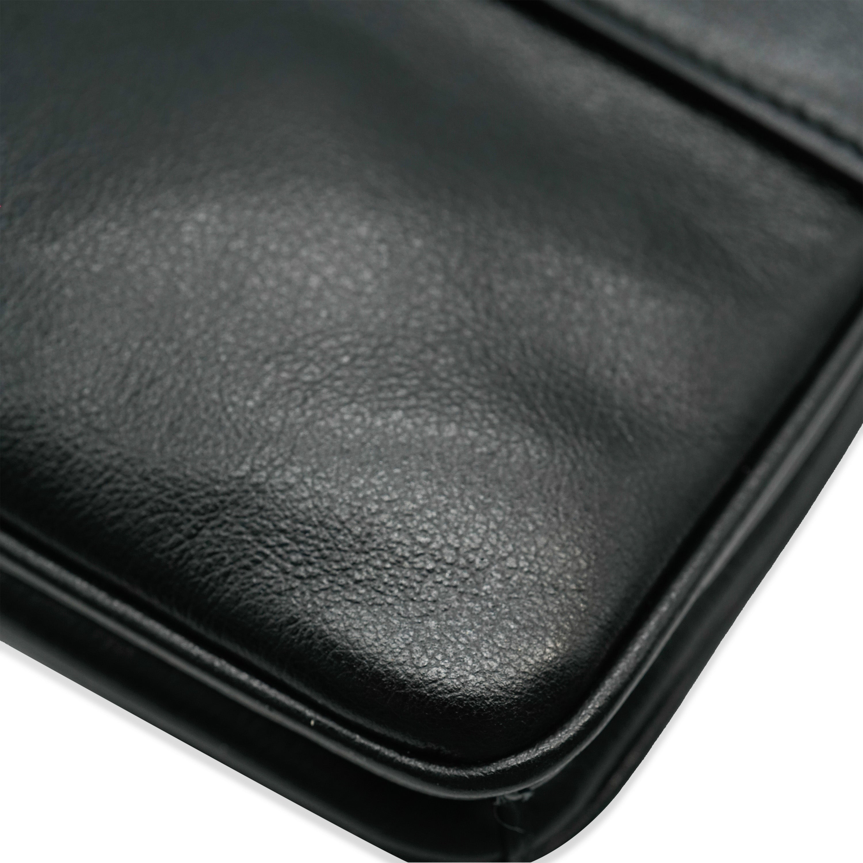 ¿Te apasiona la calidad? ¡Te encantará el bolso bandolera con cadena y solapa con logotipo de piel de becerro negra de PRADA! Este bolso en muy buen estado, fabricado en Italia, cuenta con un elegante exterior negro de lujosa piel de becerro. Con unas medidas de 20 x 13 x 2,5 cm, es compacto pero lo suficientemente espacioso como para guardar tus objetos esenciales. La longitud del asa de 30 cm y la correa de 45 cm ofrecen opciones de transporte versátiles. Completa tu atuendo y eleva tu estilo con esta impresionante pieza llamativa.