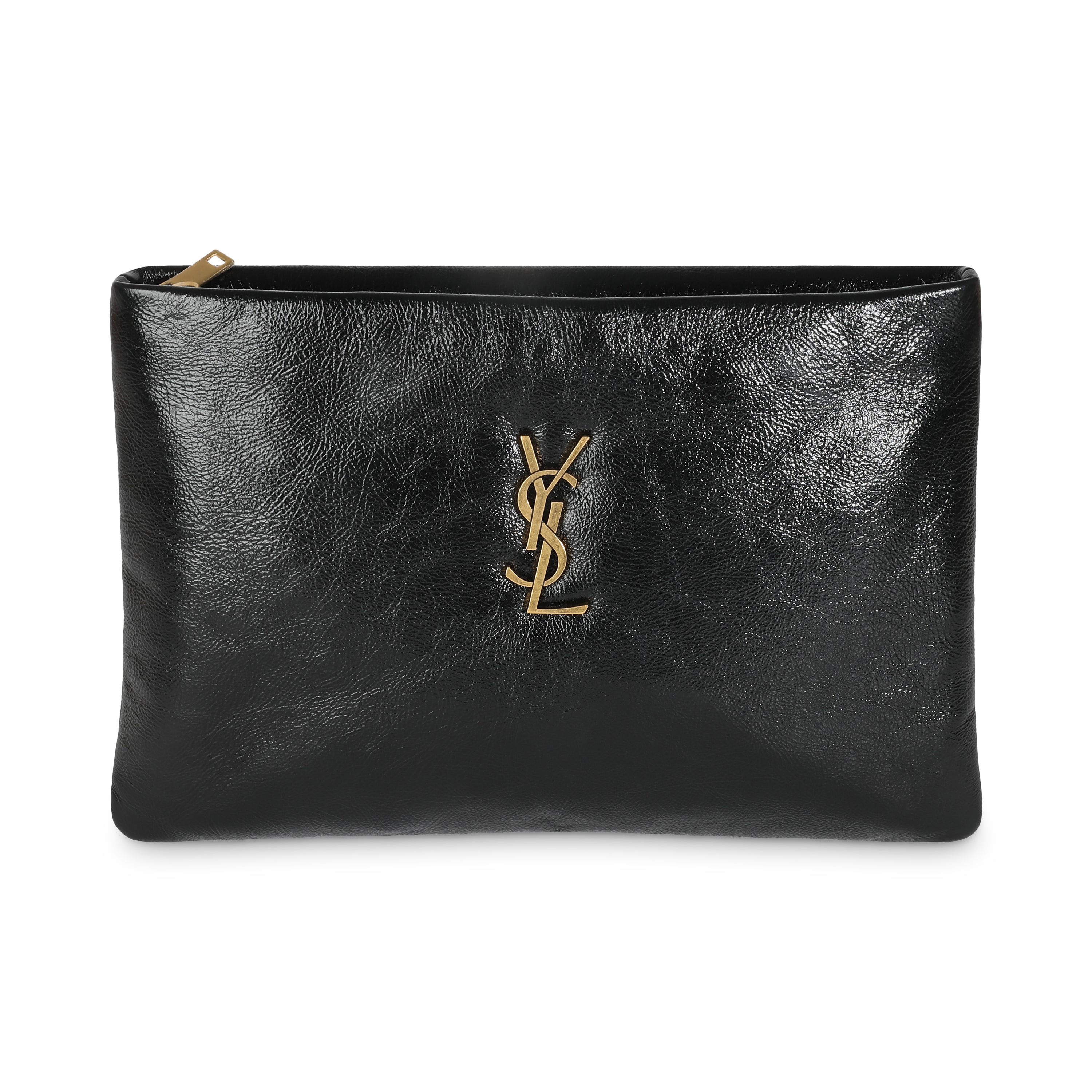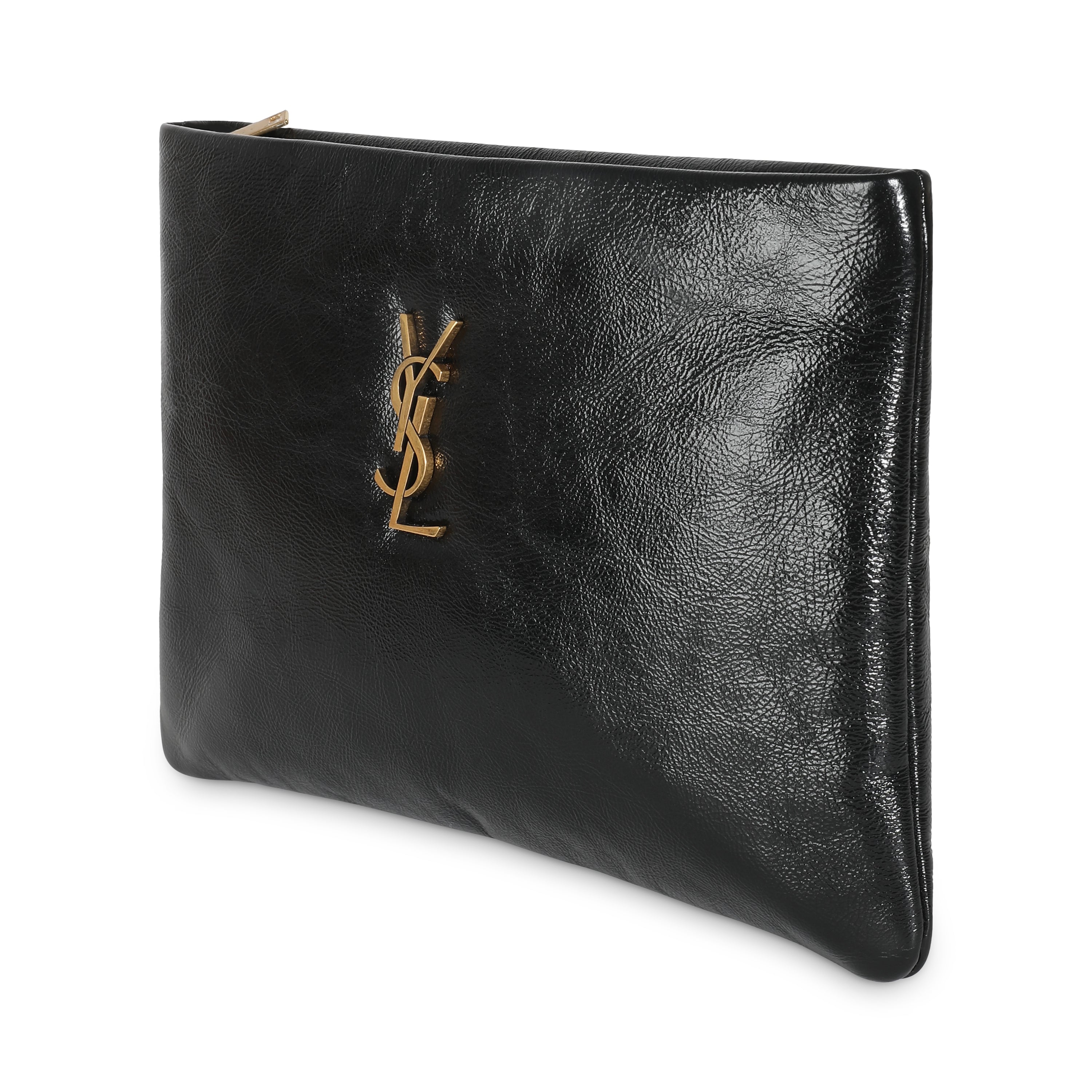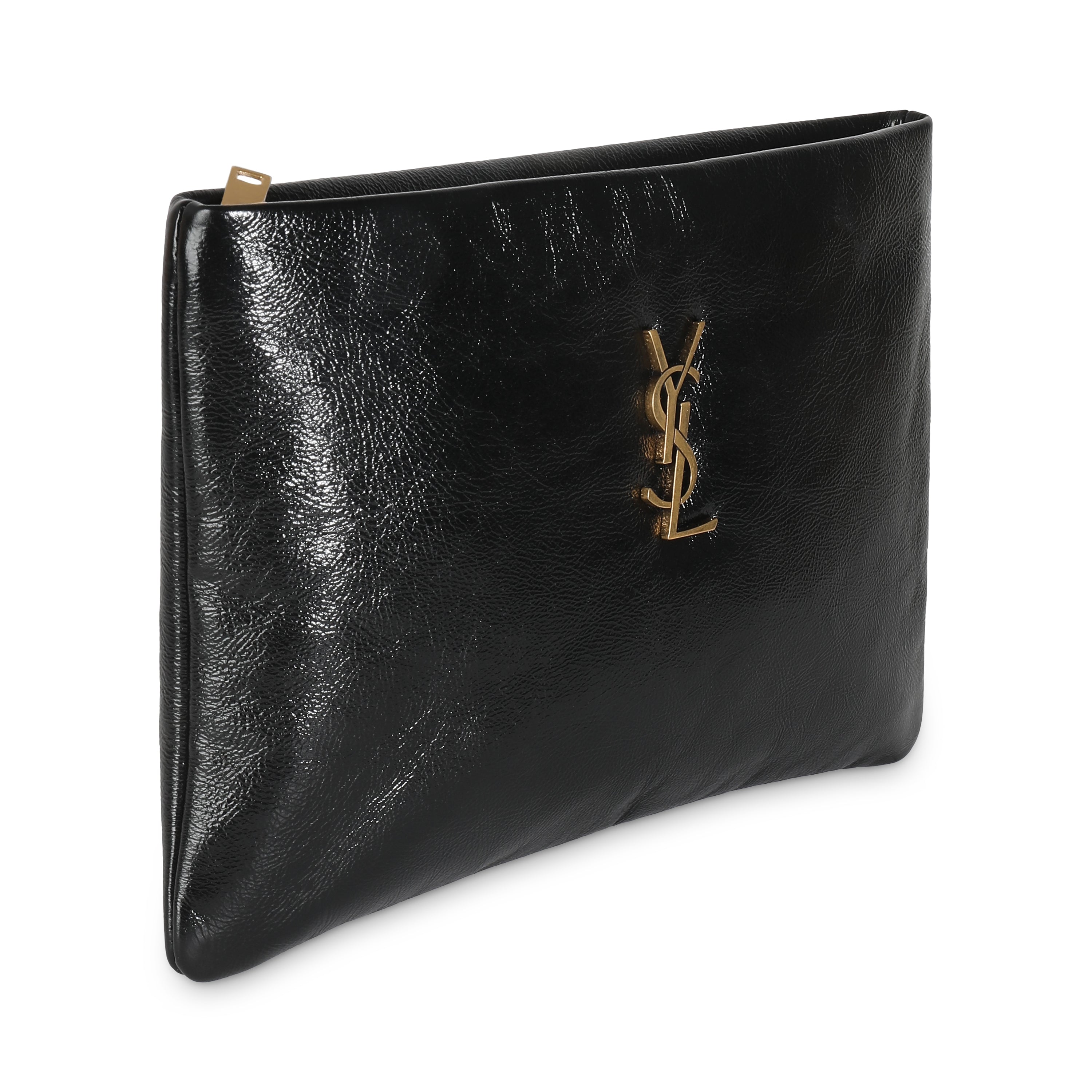 SAINT LAURENT - Estuche tipo almohada Calypso pequeño de piel brillante negra