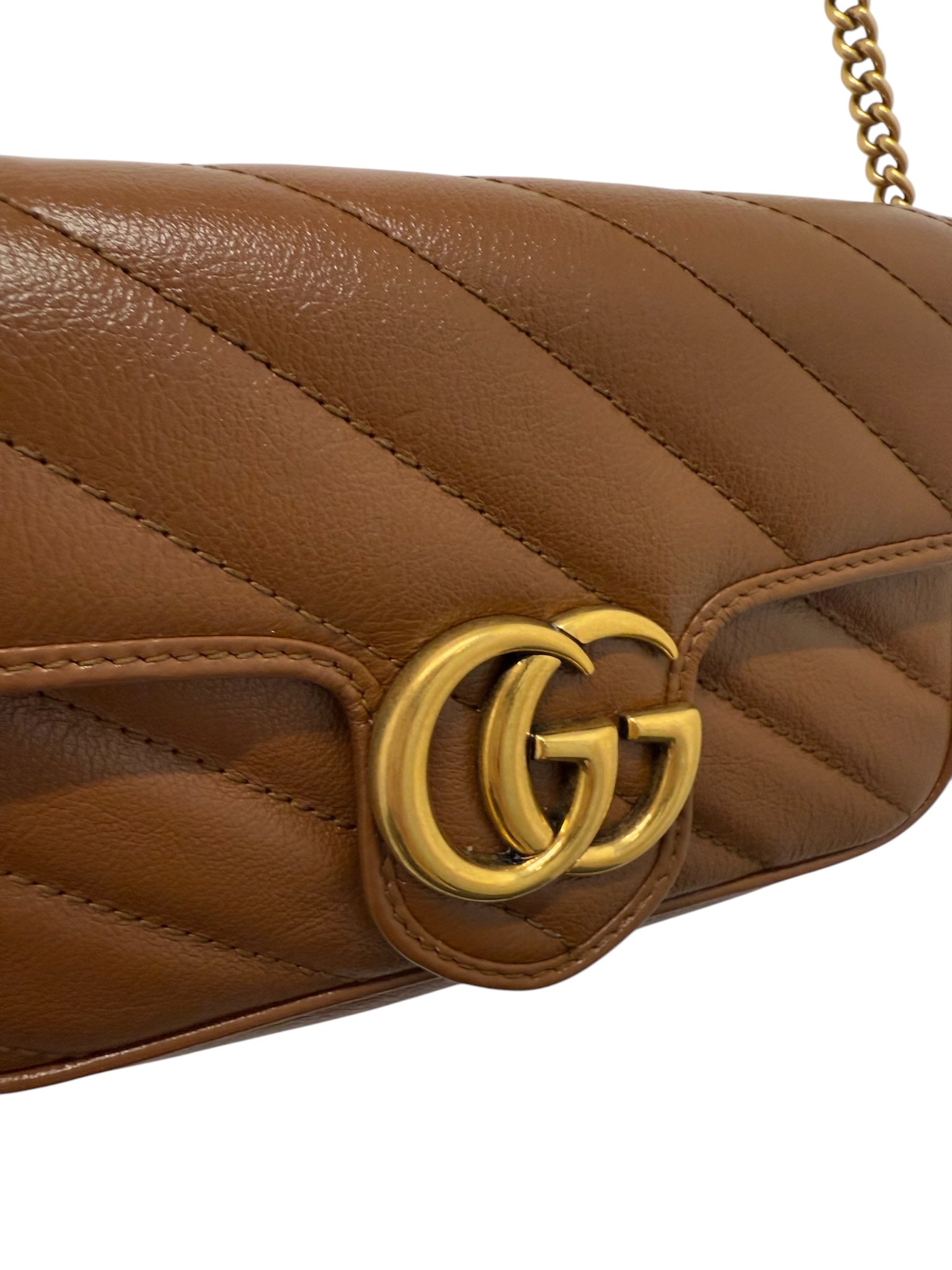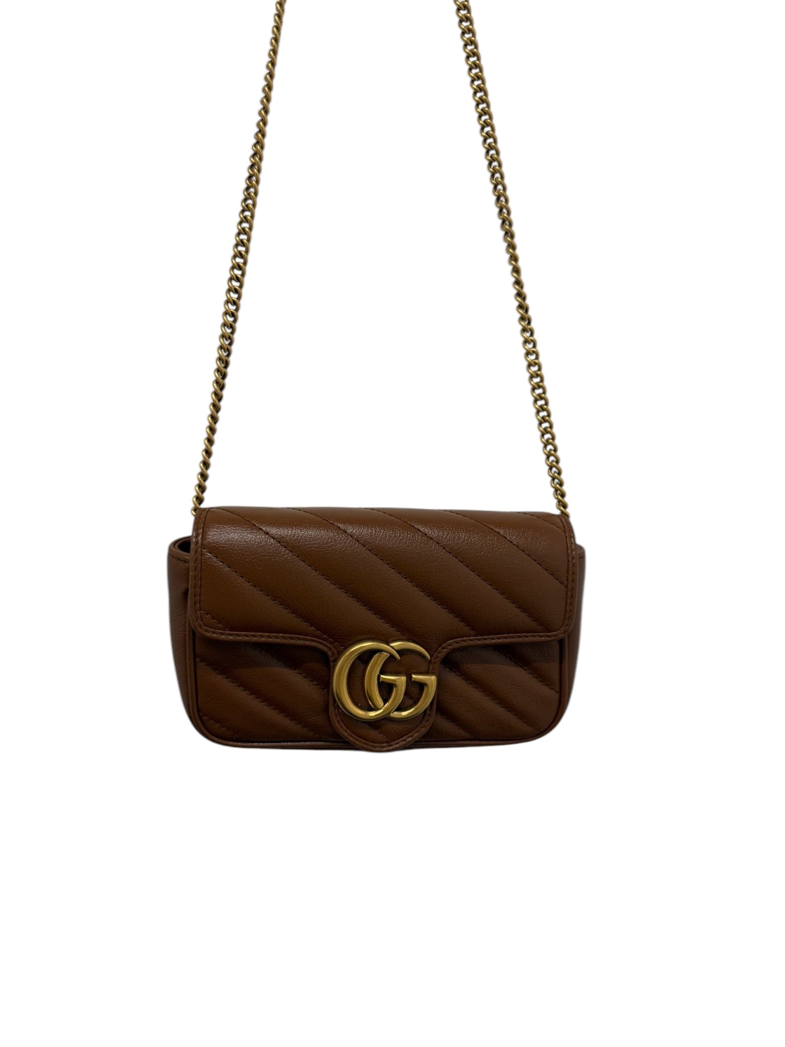 Bolso Super Mini GG Marmont de piel de becerro marrón GG USADO