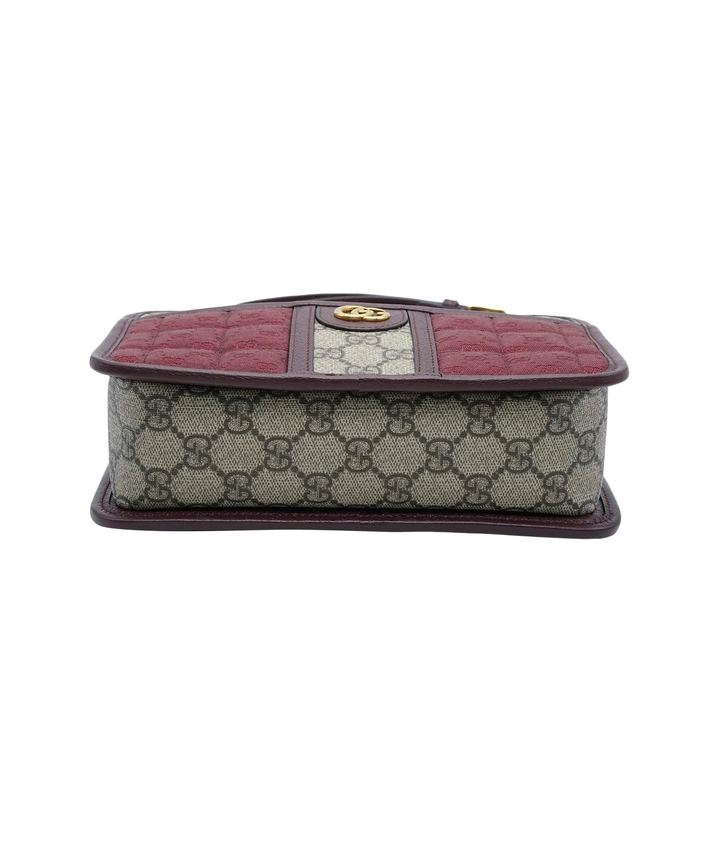 GUCCI - Bolso de hombro mini GG de lona acolchada con logo GG en color burdeos y beige