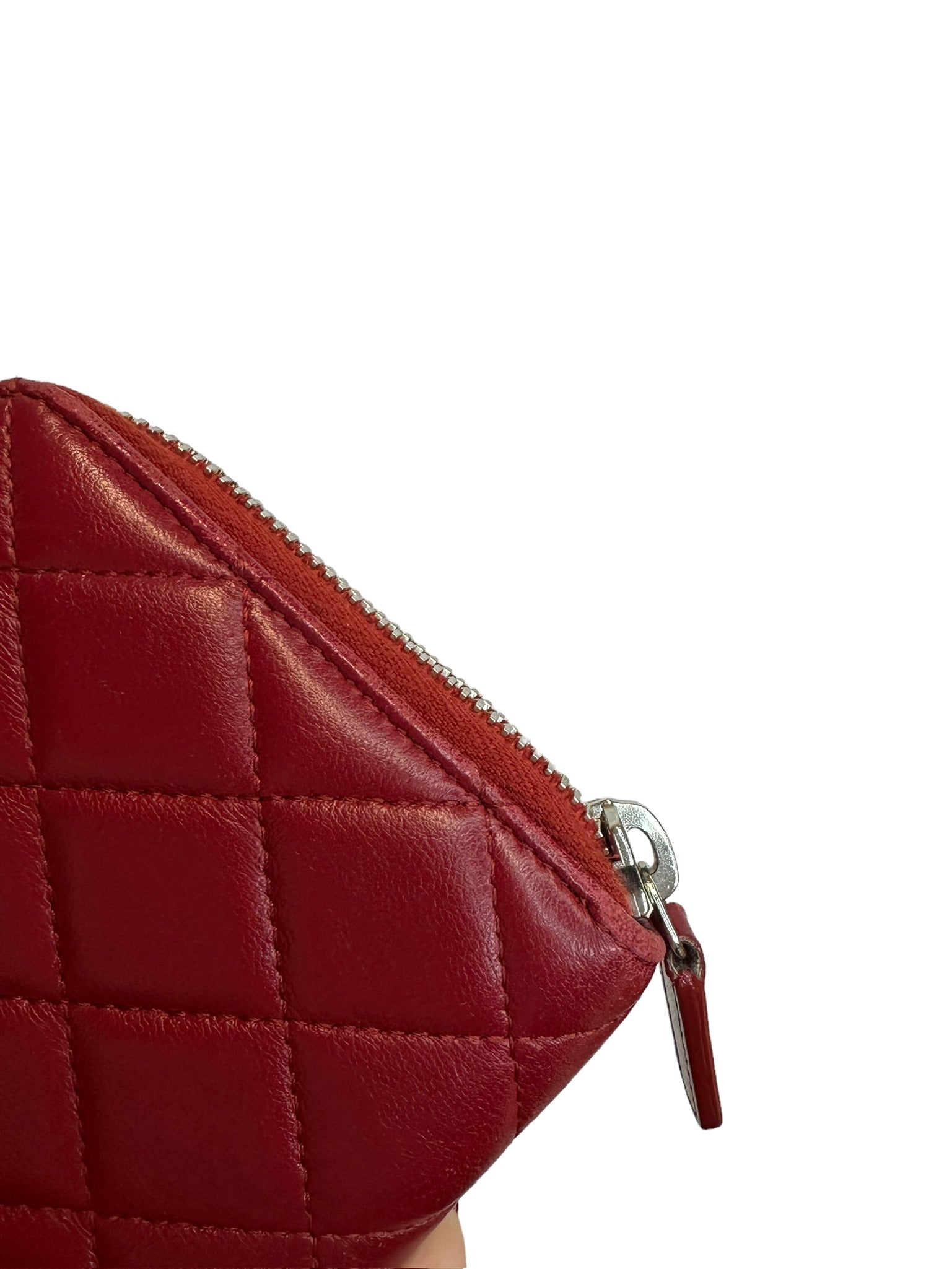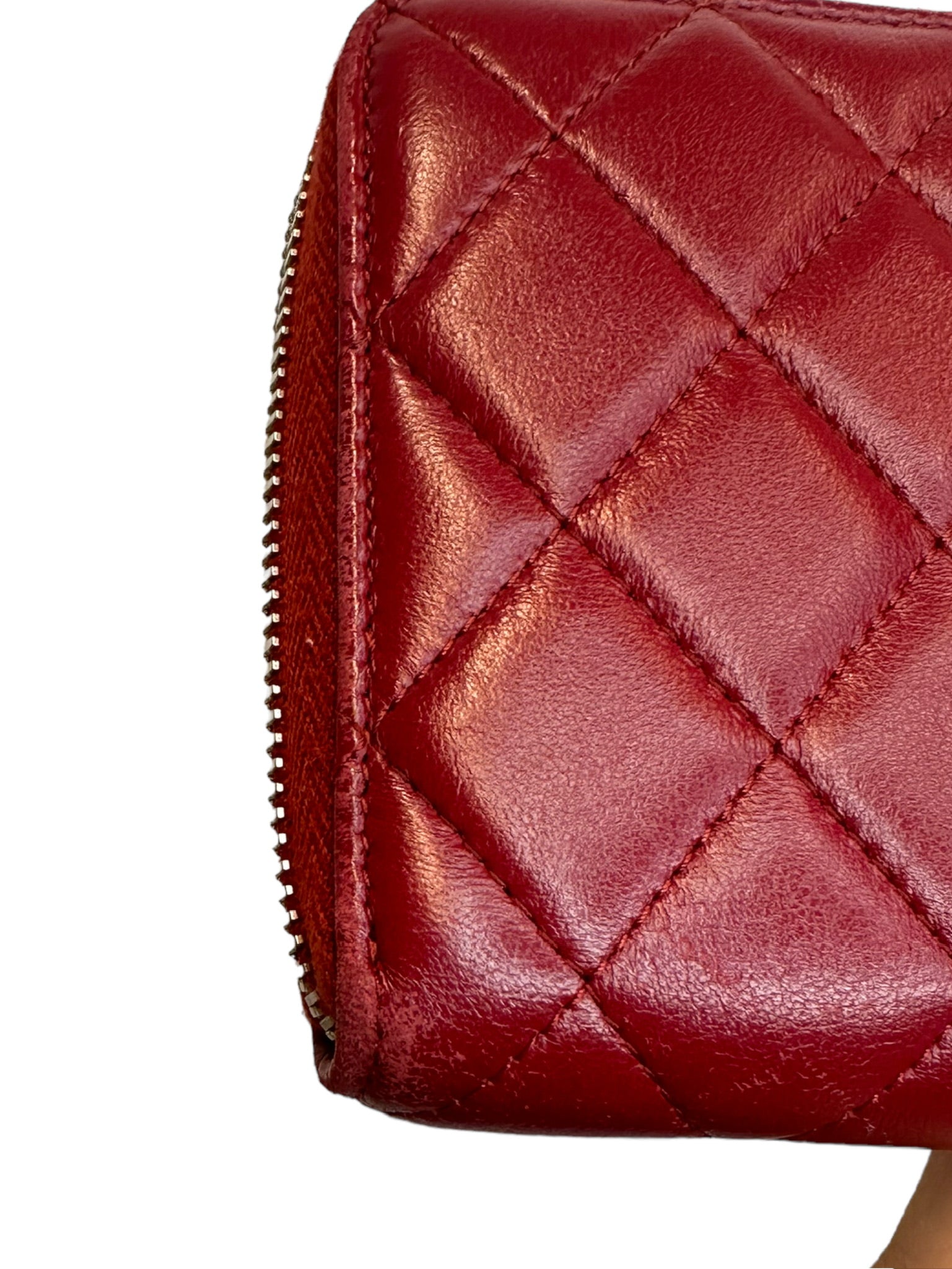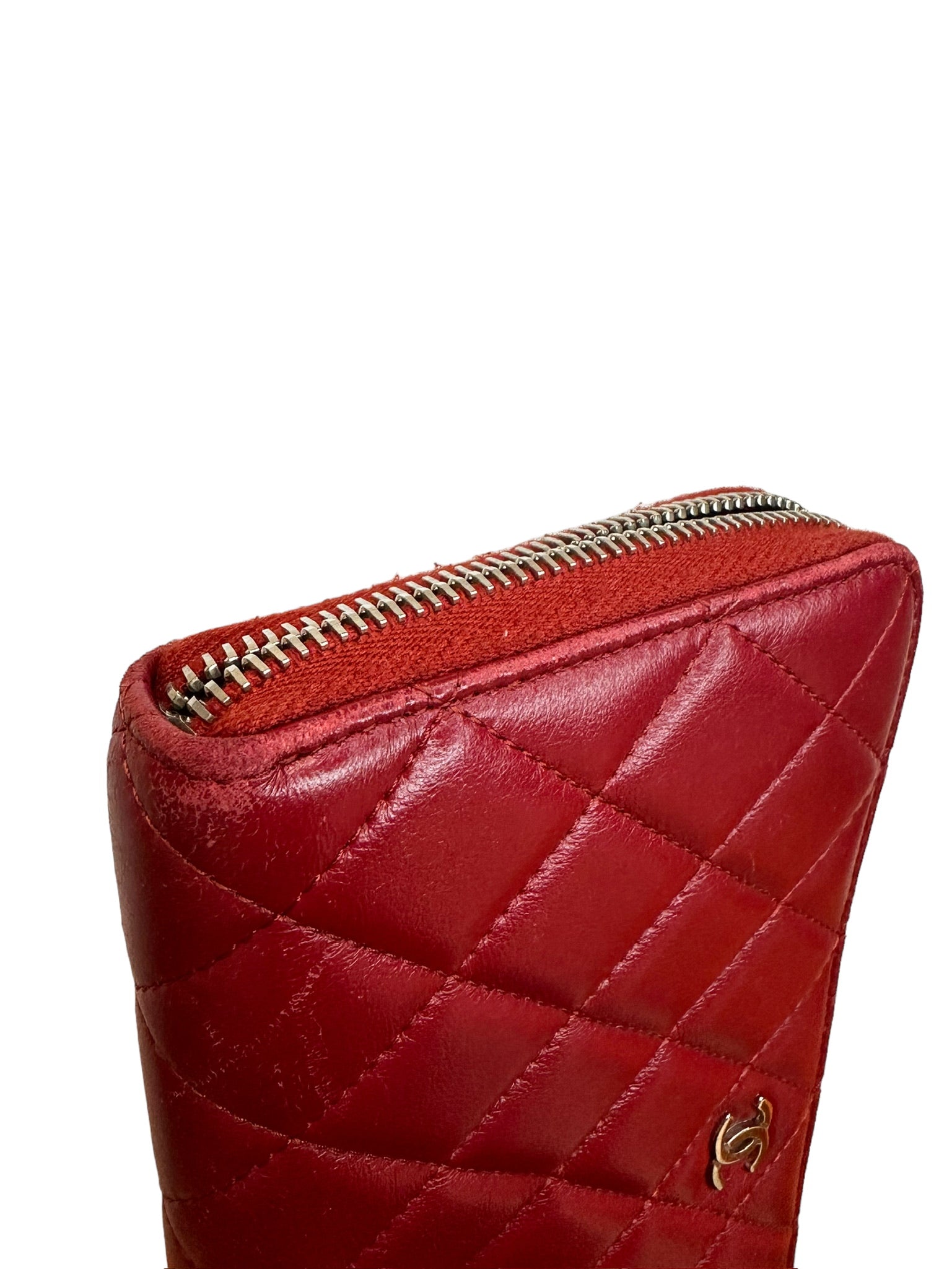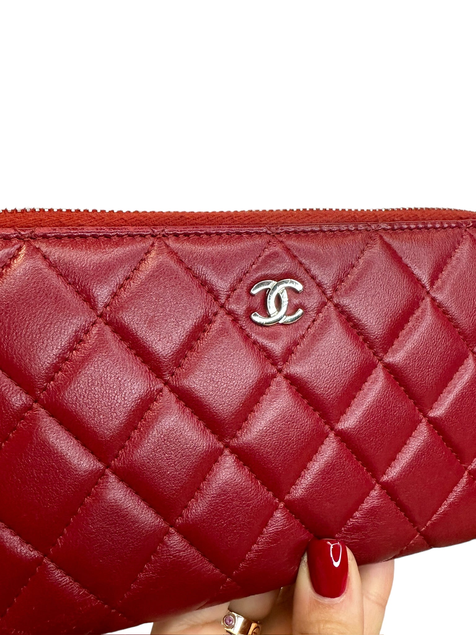 Presentamos la cartera organizadora grande con cremallera y acolchado de caviar de CHANEL en rojo. Esta elegante cartera, hecha de piel de caviar acolchada con rombos y adornada con un pequeño logotipo CC de Chanel en dorado claro, cuenta con un interior de piel burdeos dividido con amplias ranuras para tarjetas, bolsillos de parche y un compartimento con cremallera. Manténgase organizado con estilo con esta creación práctica y elegante de Chanel.