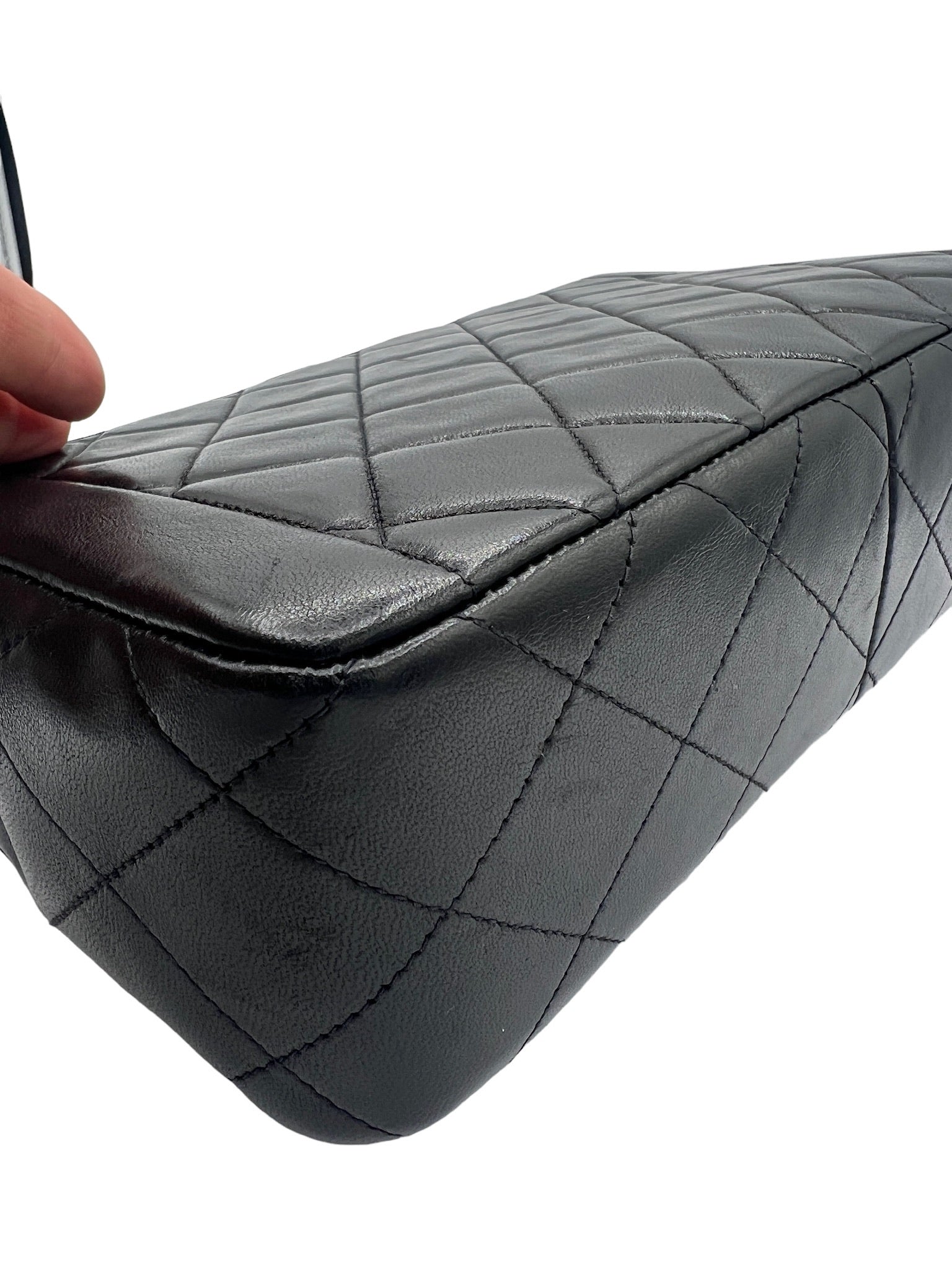 - Condición: Este bolso de hombro CHANEL usado está en buenas condiciones tanto en términos de su función como de su apariencia de acuerdo con su tipo de descripción de condición Bueno. *Detalles: El artículo está clasificado como en "Buenas" condiciones. En el exterior, hay pequeños rasguños, marcas de cadena, ligeras marcas de suciedad, ligera decoloración y una ligera pérdida de forma, con un roce evidente en las esquinas de la parte inferior pero sin rasgaduras, y un ligero roce en las esquinas de la correa y la abertura principal. En el interior, hay pequeños rasguños, muchos rasguños superficiales, ligeras marcas de suciedad y adherencia de moho, con descascarillado de la capa de metal observado en el bolsillo. Además, hay un olor a moho.