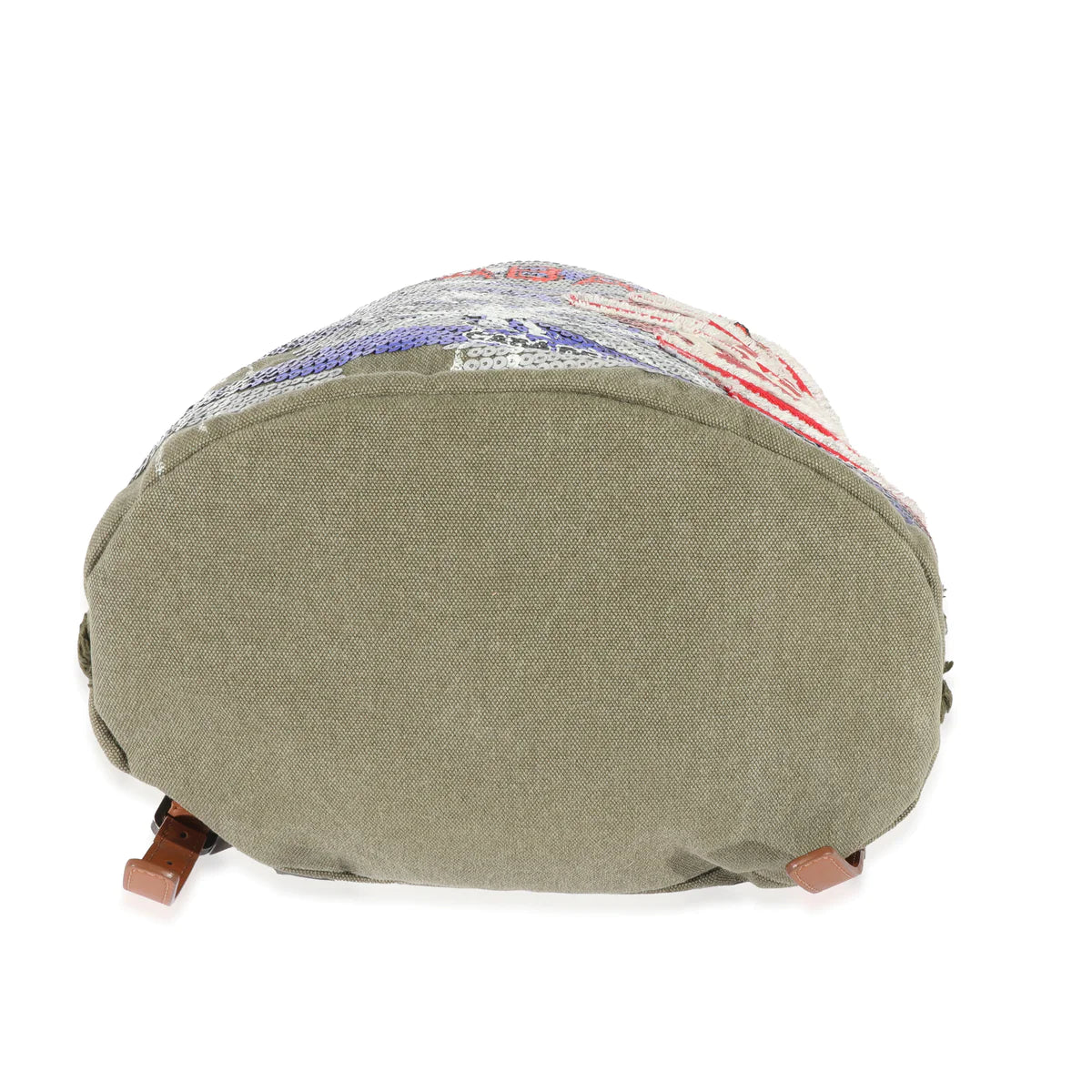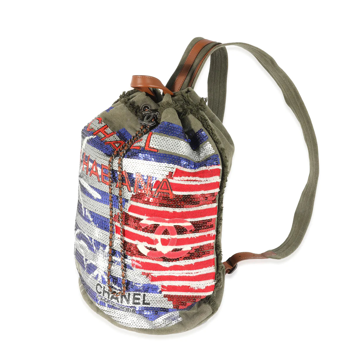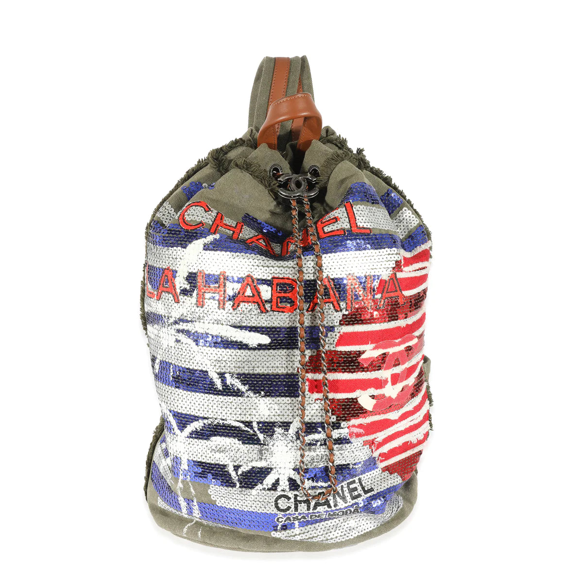 CHANEL - Mochila Cuba La Habana de lona con lentejuelas verdes