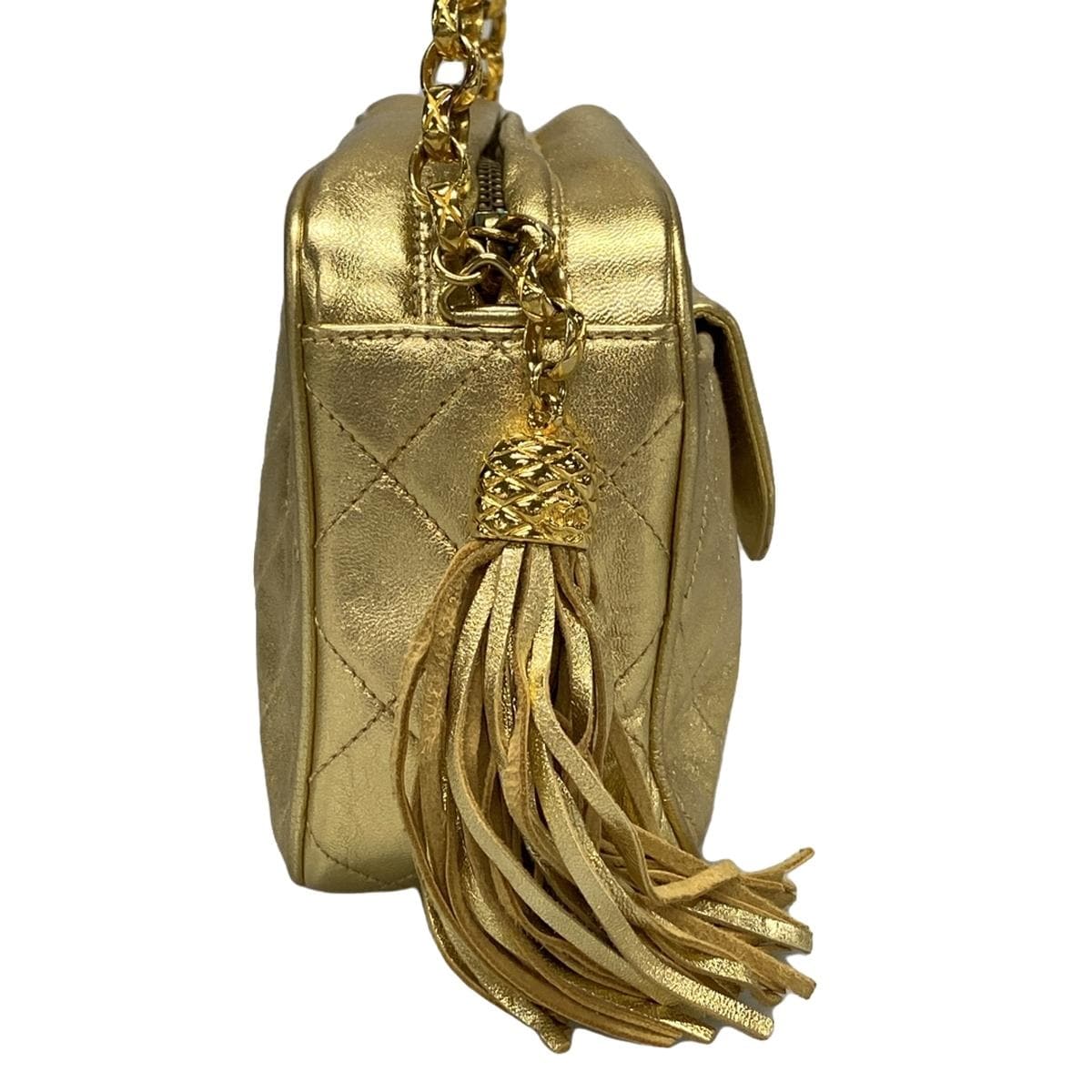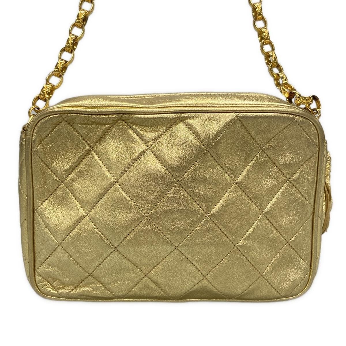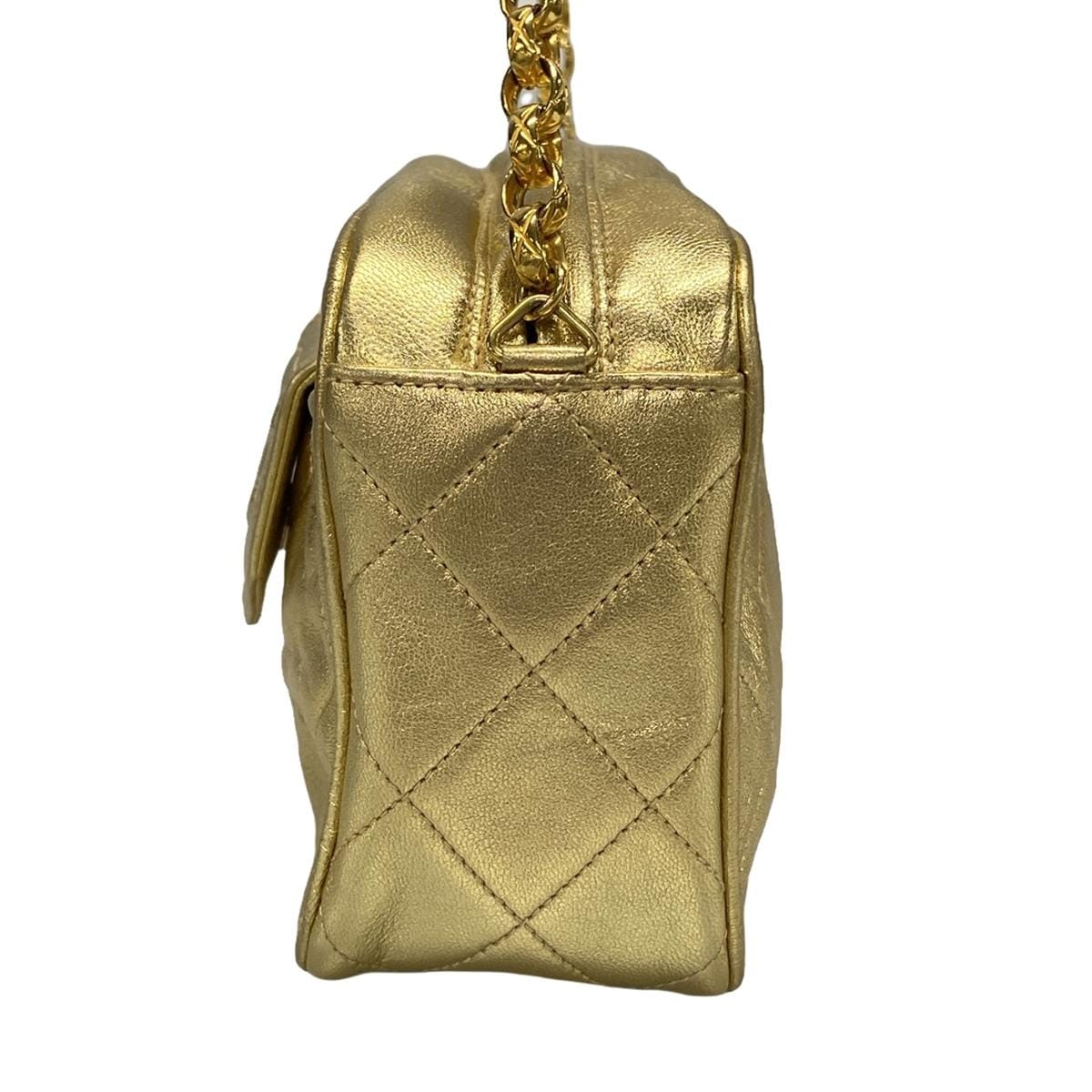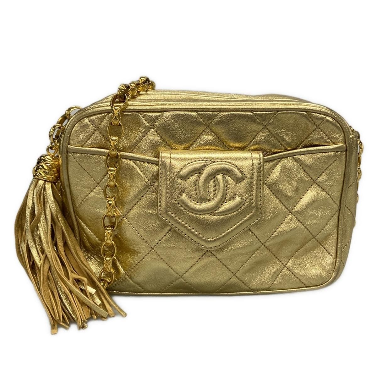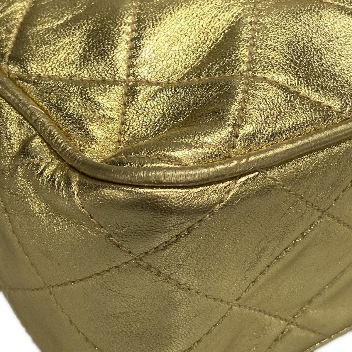 Bolso de hombro CC Mini Matelasse dorado de piel de cordero USADO