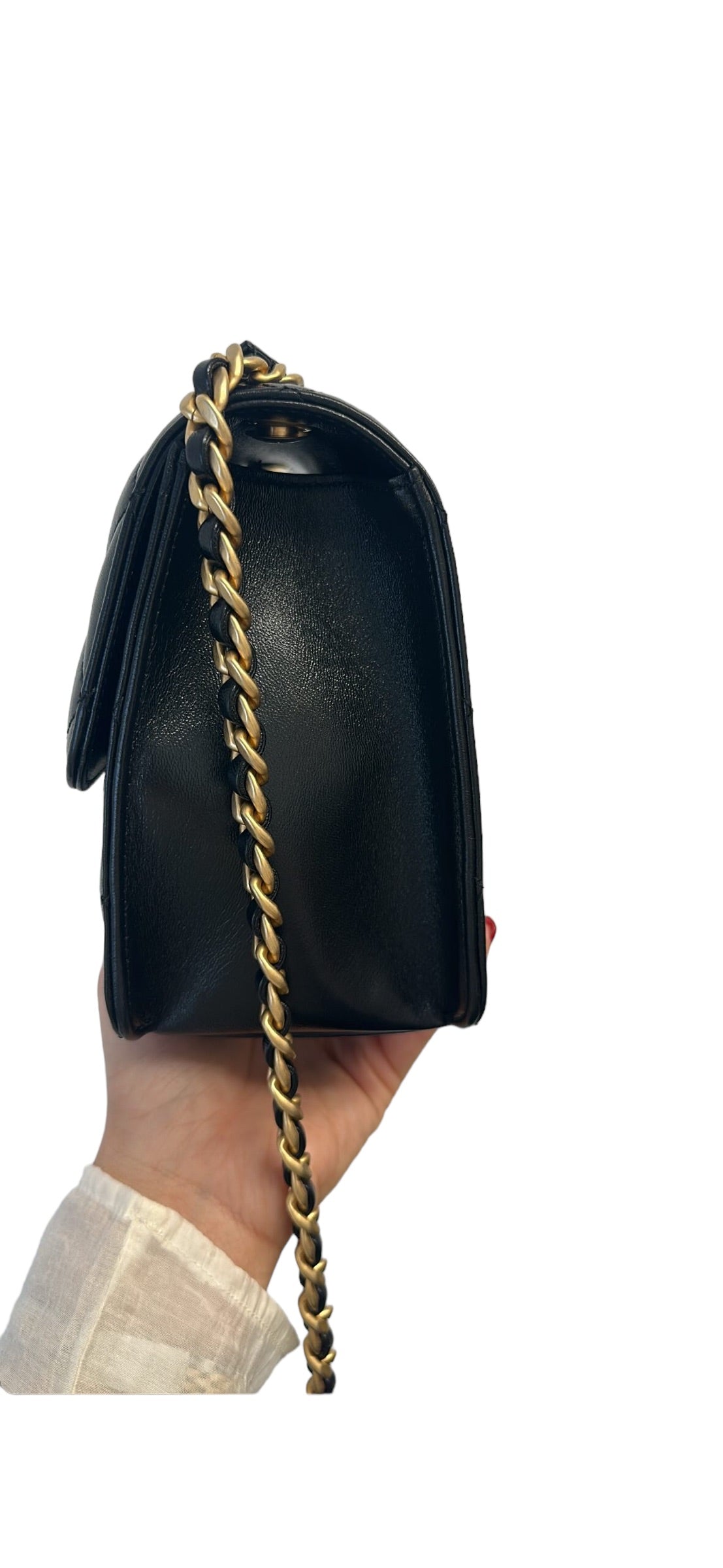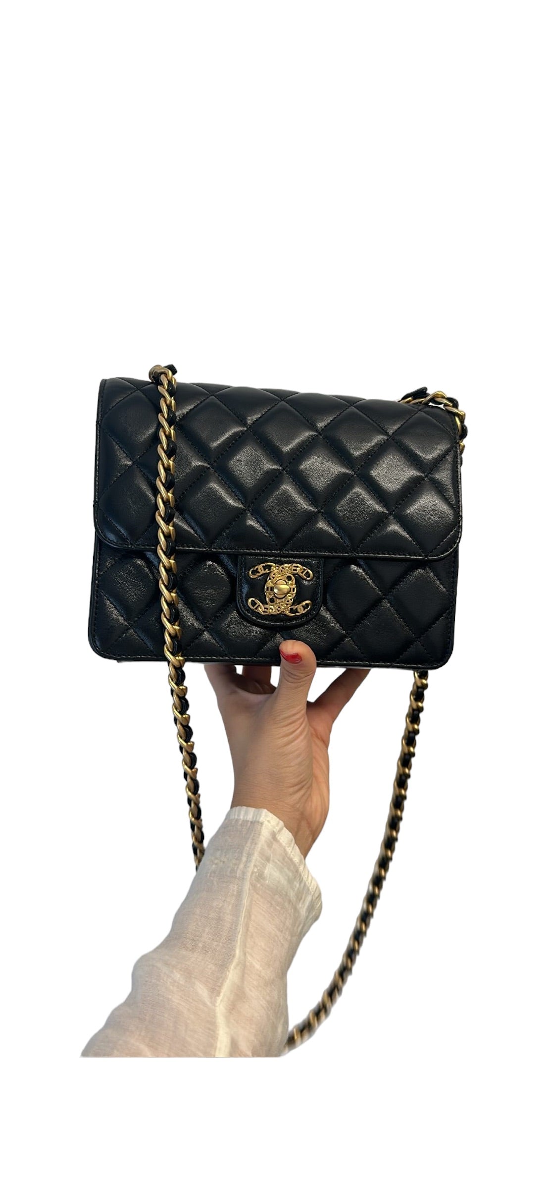CHANEL - Bolso mini con solapa y acolchado de piel de cordero brillante