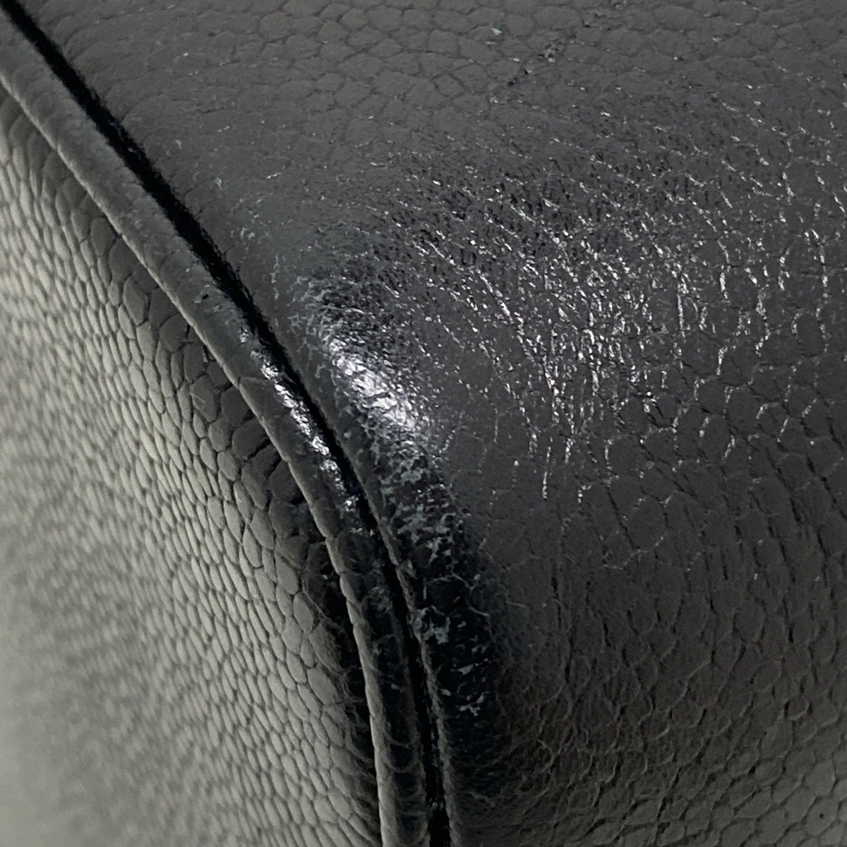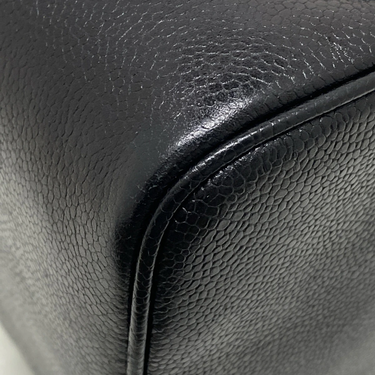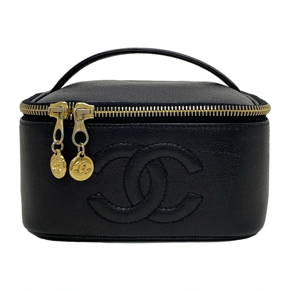 Descubra el lujoso bolso Vanity Bag de CHANEL en elegante piel de caviar negra. Este bolso portátil cuenta con un espacioso compartimento interior y un exterior duradero con mínimas señales de uso. Perfecto para llevar sus artículos esenciales con estilo y sofisticación. Eleve su colección de accesorios con esta icónica pieza. Medidas Alto: 3,54 pulgadas (9 cm) Ancho: 6,69 pulgadas (17 cm) Profundidad: 6,3 pulgadas