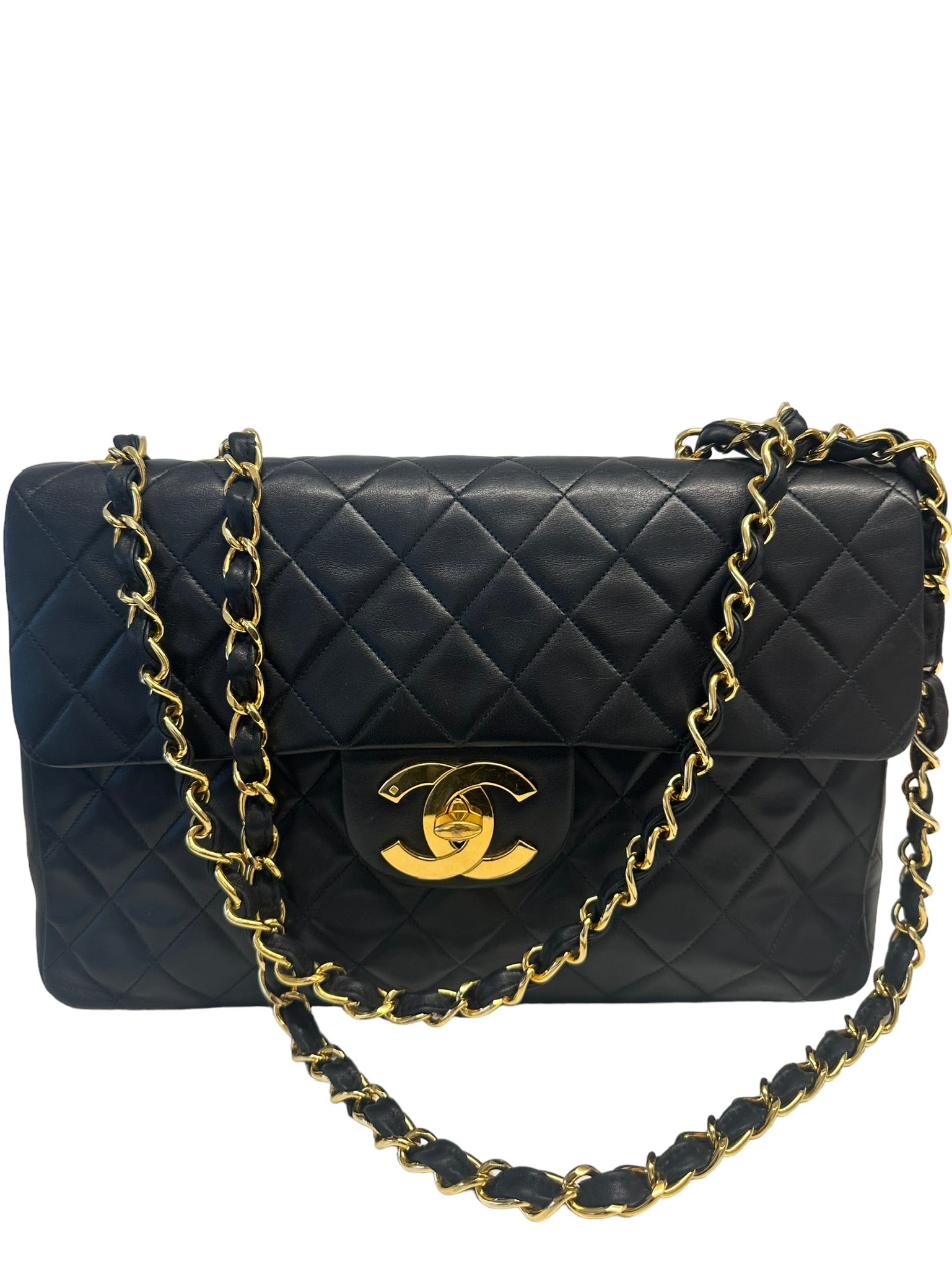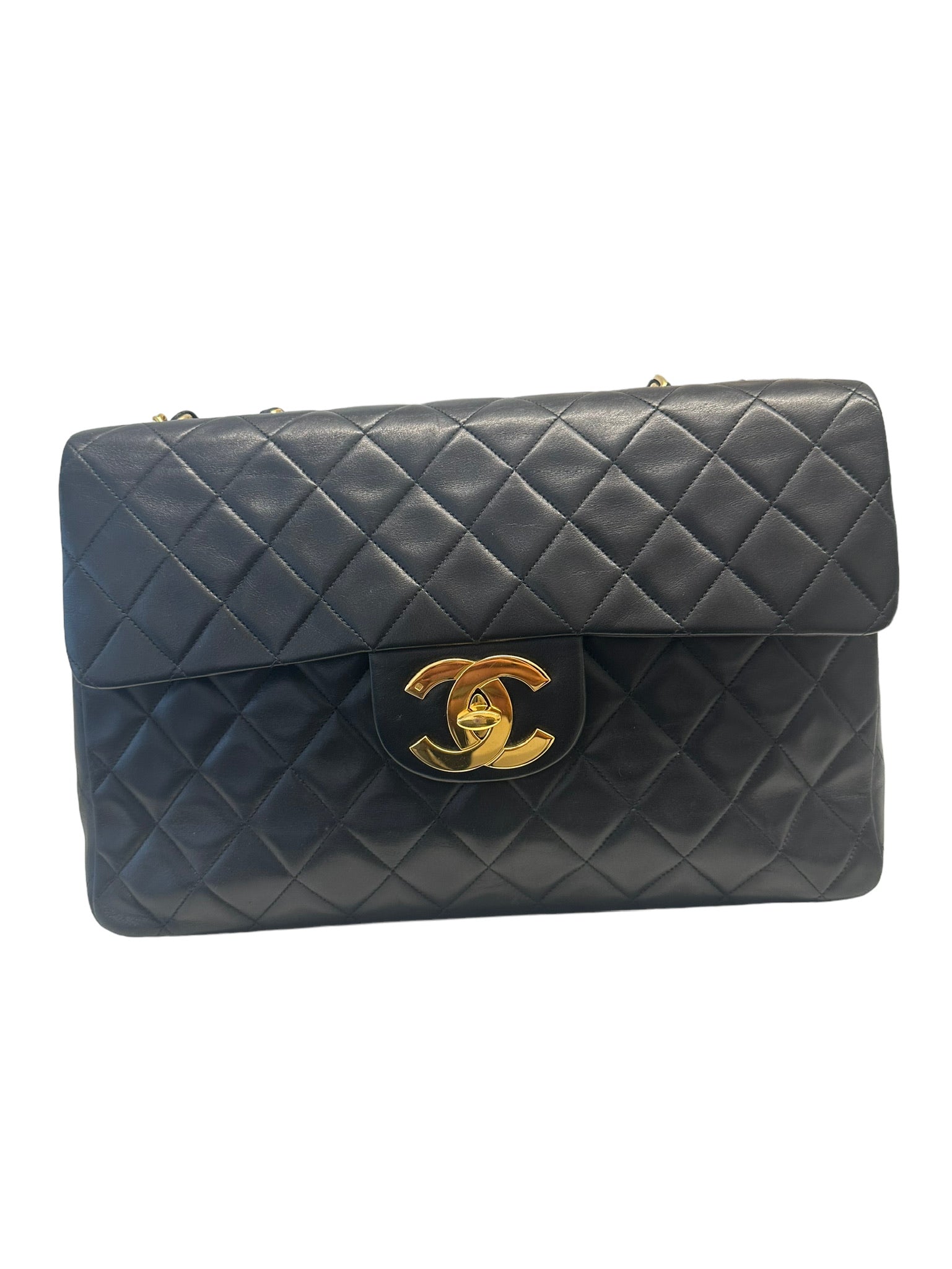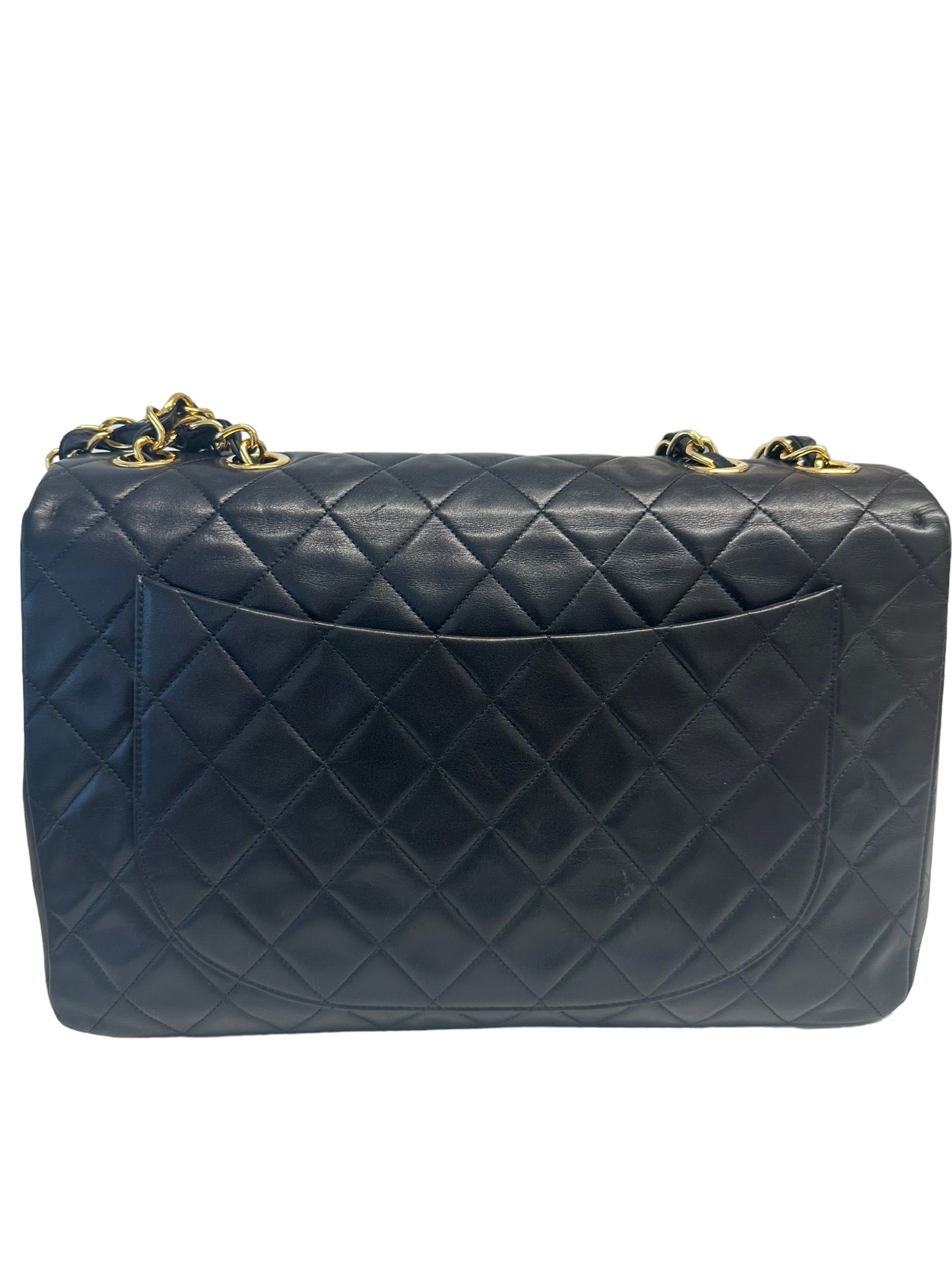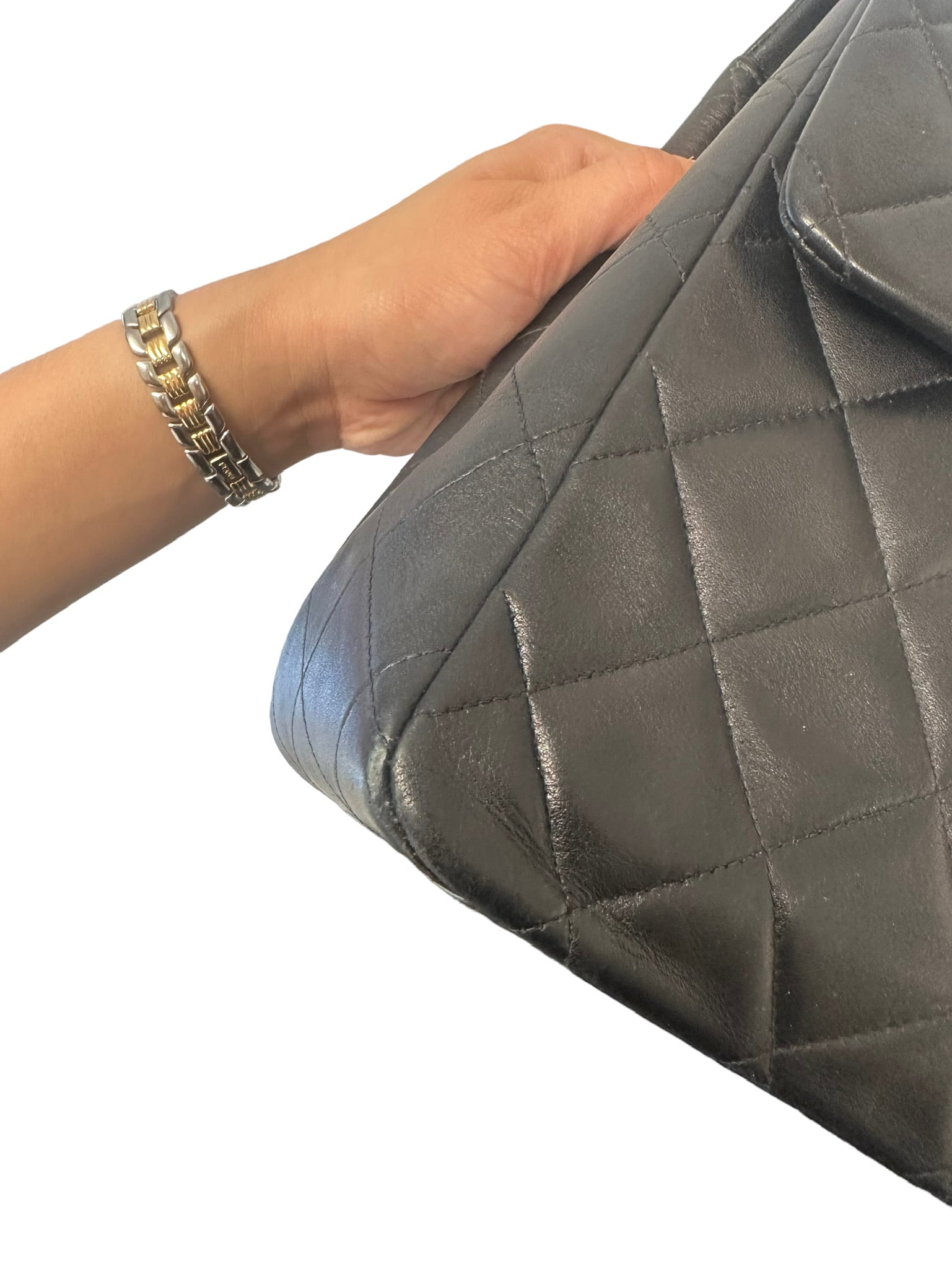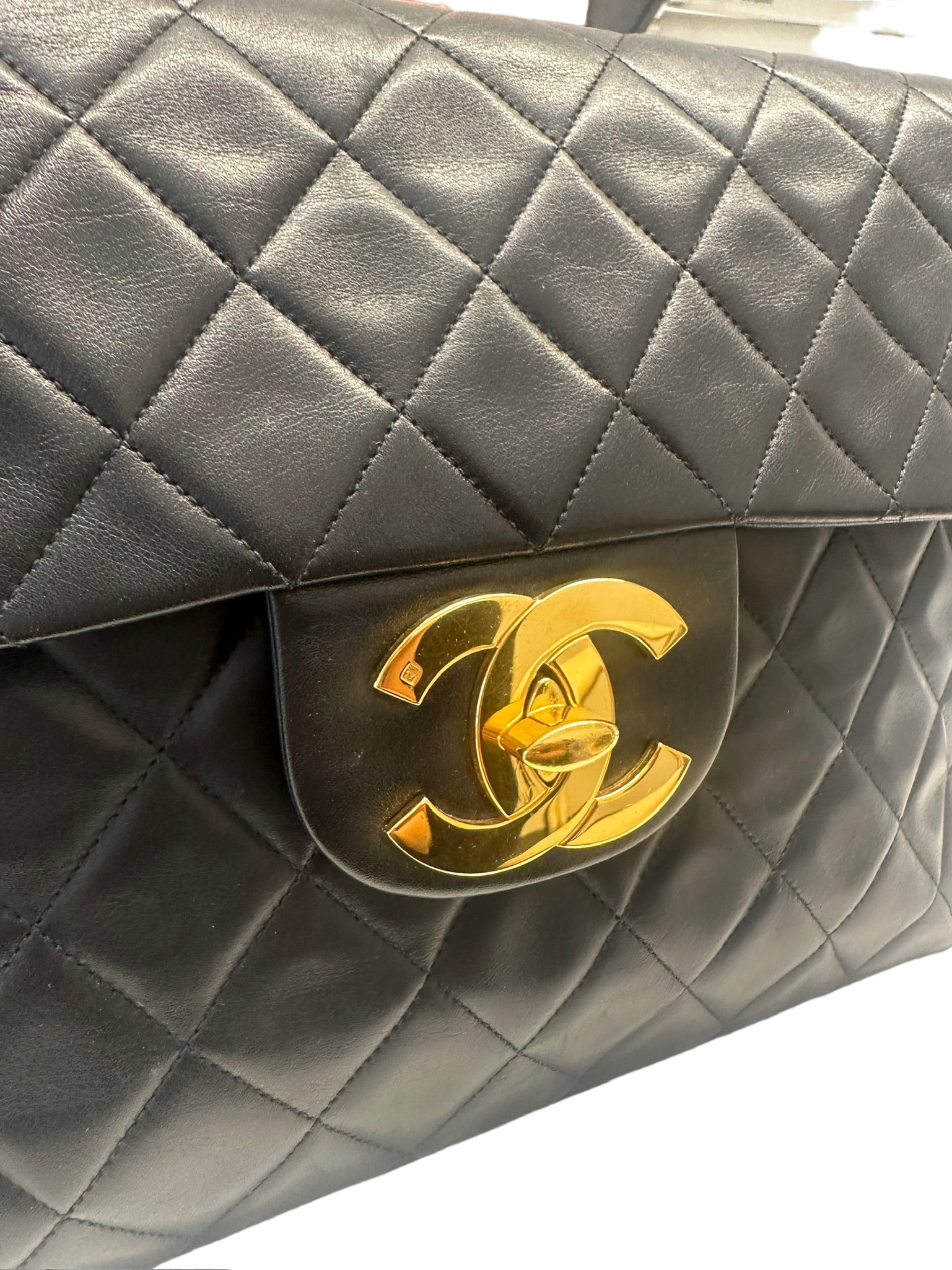 CHANEL - Bolso vintage Jumbo XL con solapa de piel de cordero negra de 24 quilates