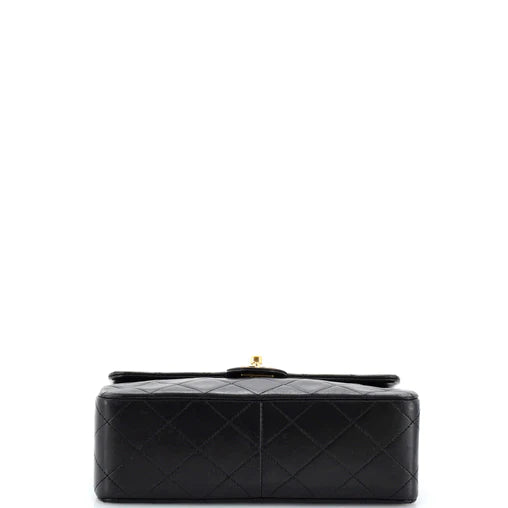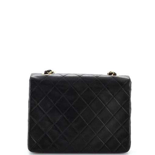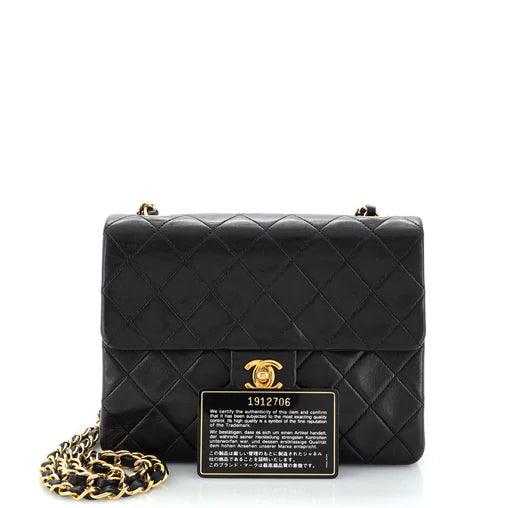 CHANEL - Bolso de mano clásico cuadrado vintage con solapa de piel de cordero acolchada pequeño