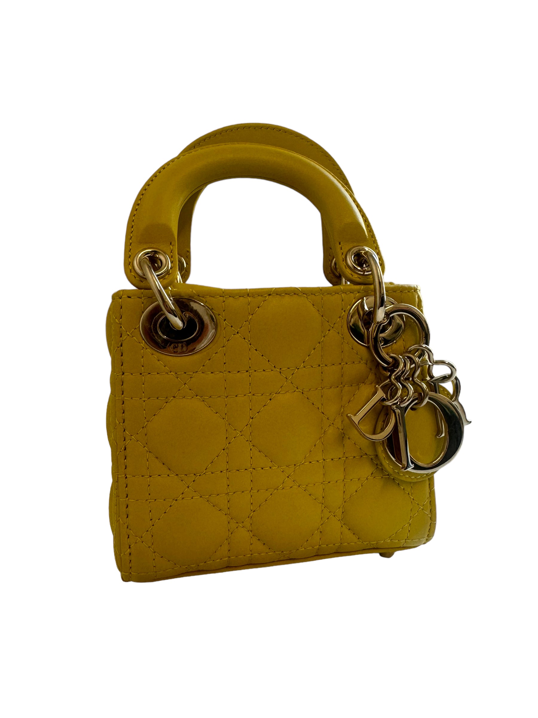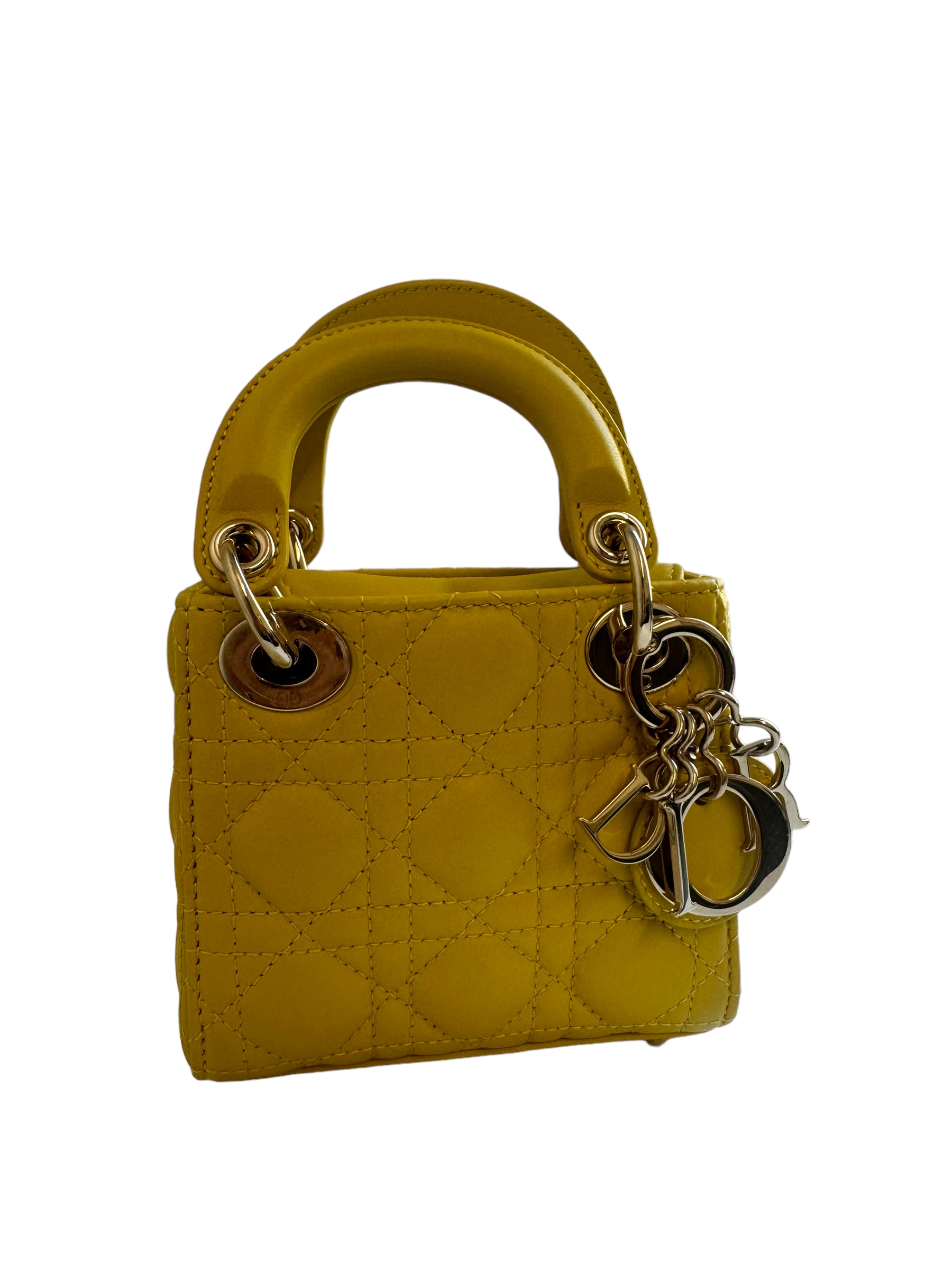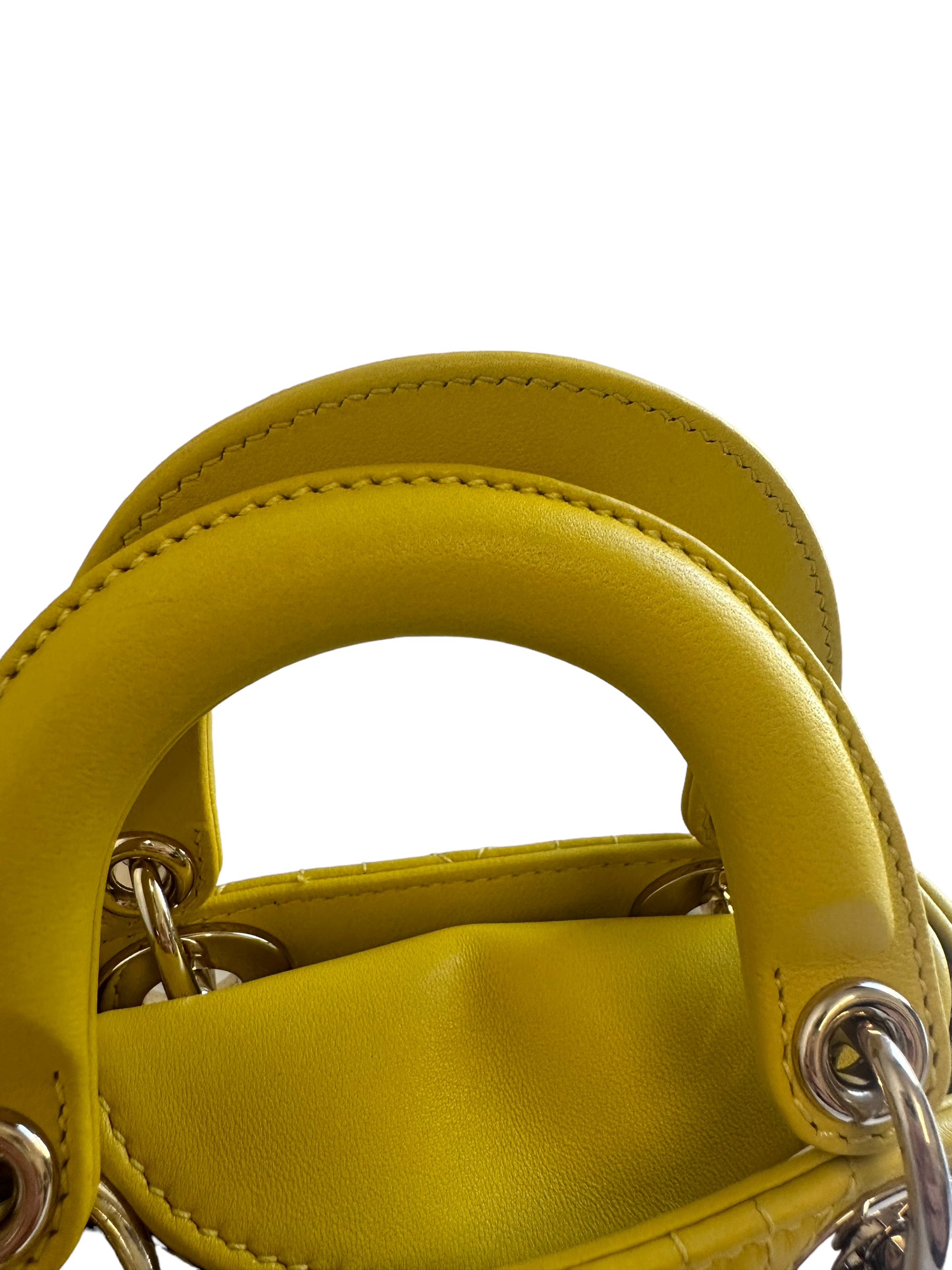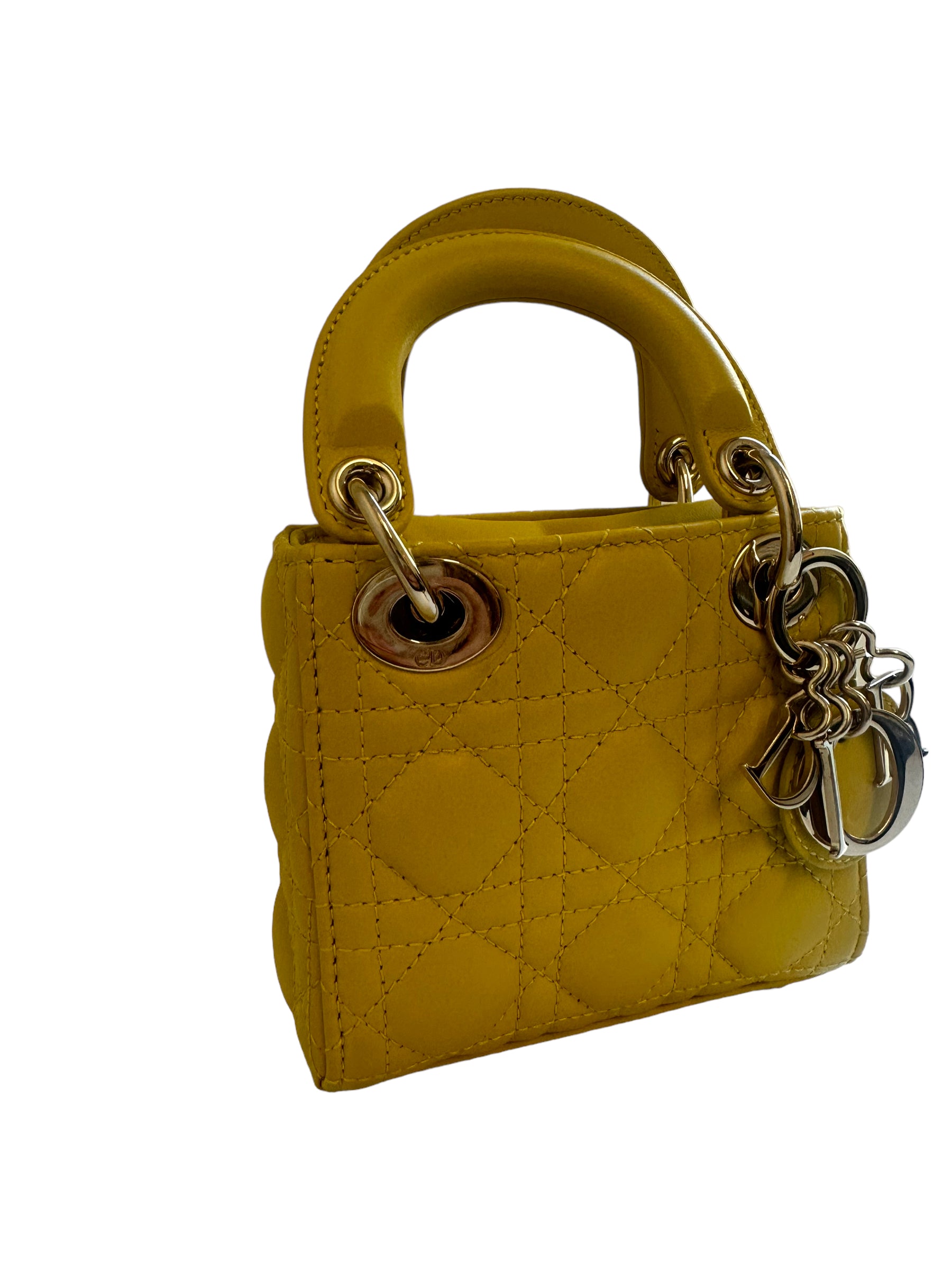Micro Lady Dior de piel de cordero amarilla de Christian Dior