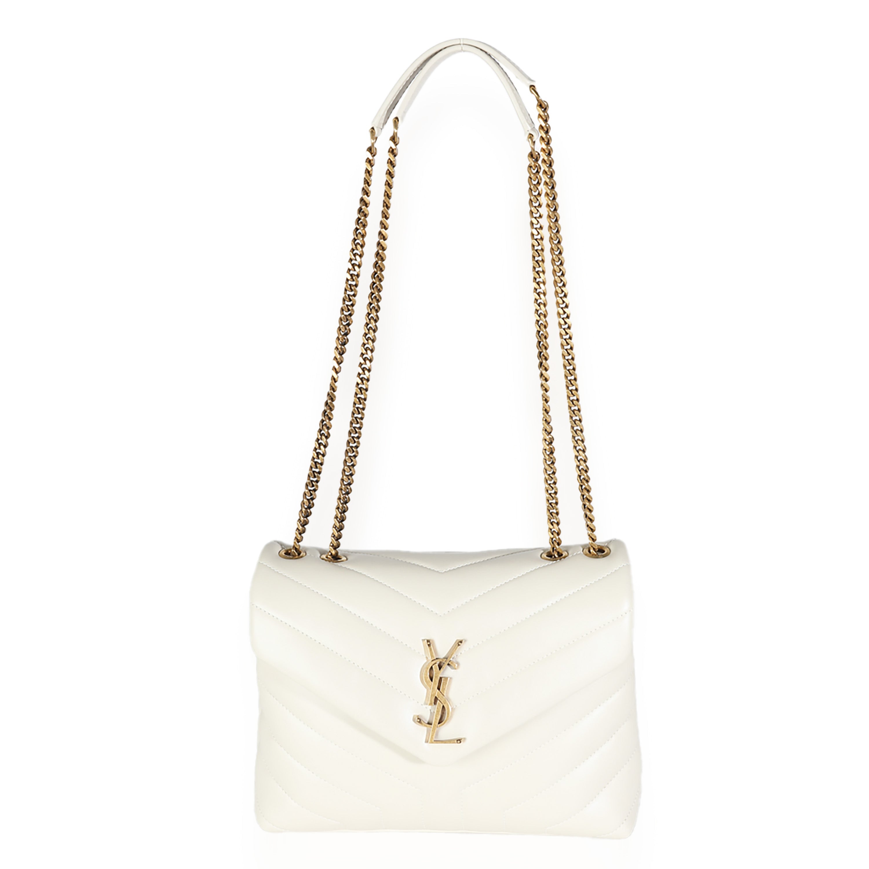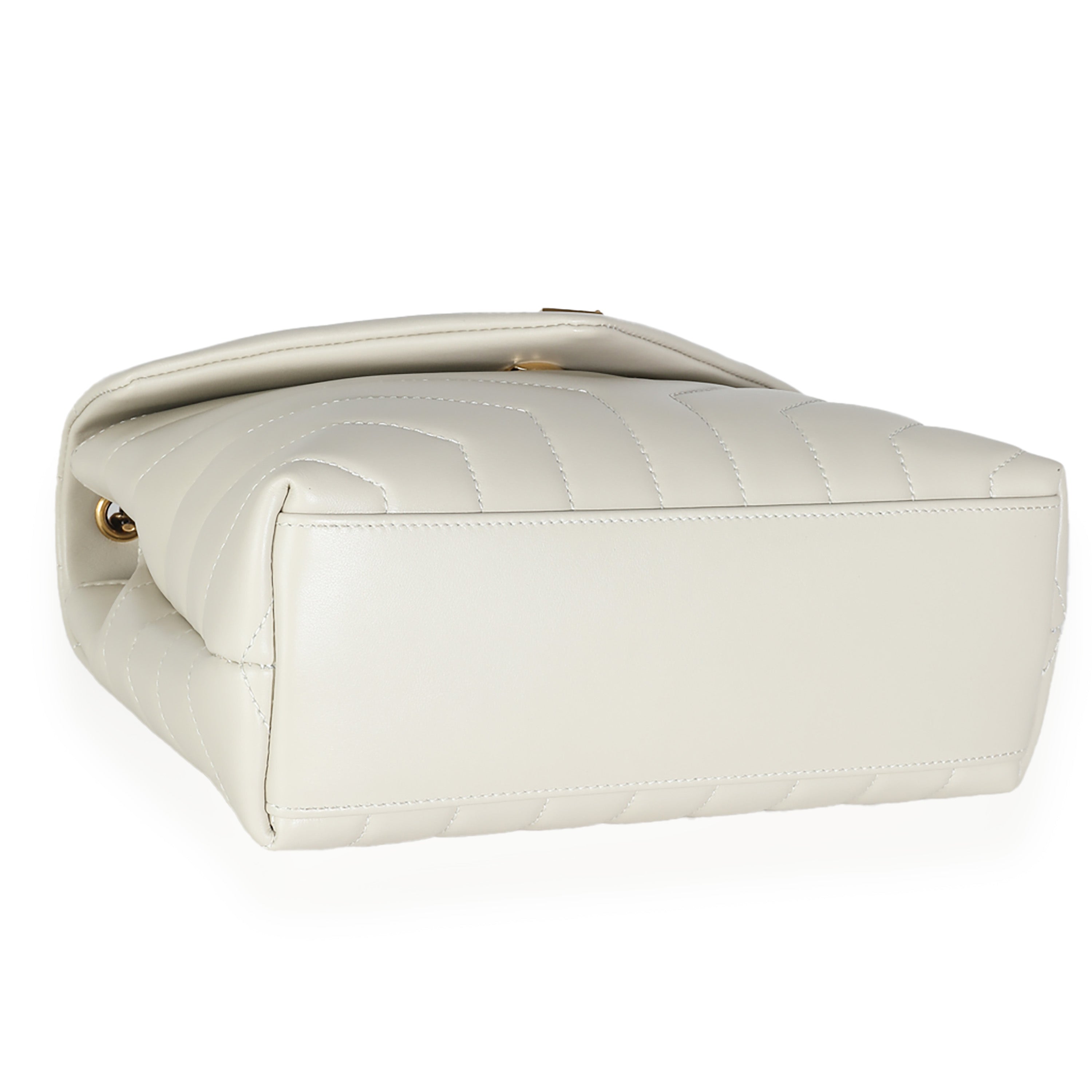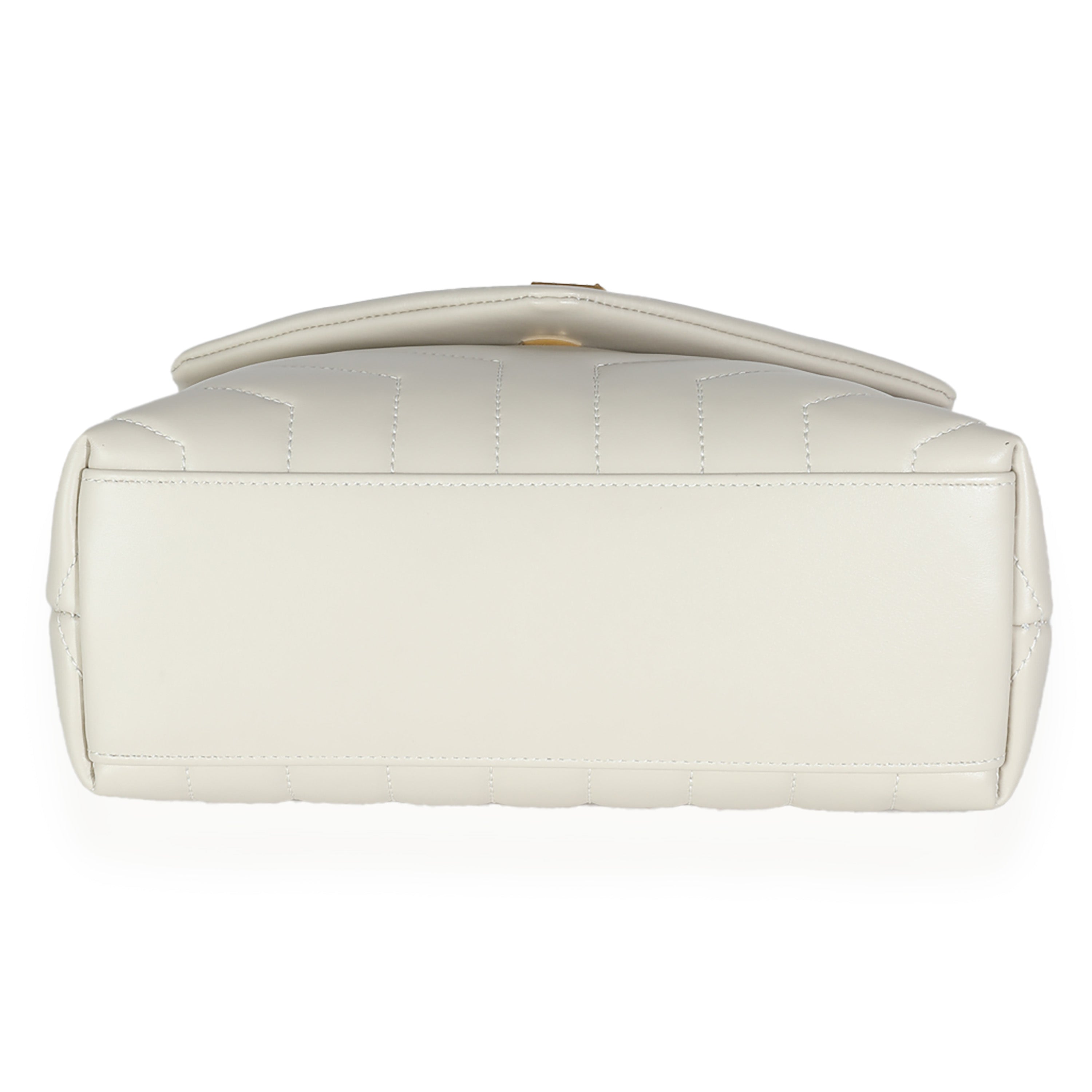 SAINT LAURENT - Bolso Loulou pequeño con monograma acolchado en Y de piel de becerro suave color crema