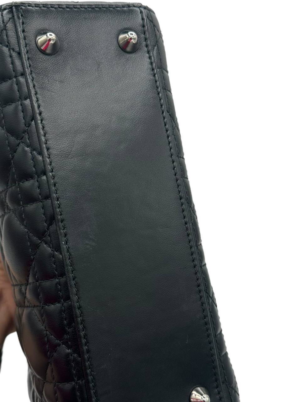 - Color negro elegante: el exterior de cuero negro le da a este Lady Dior un aspecto elegante que combina bien con cualquier atuendo.