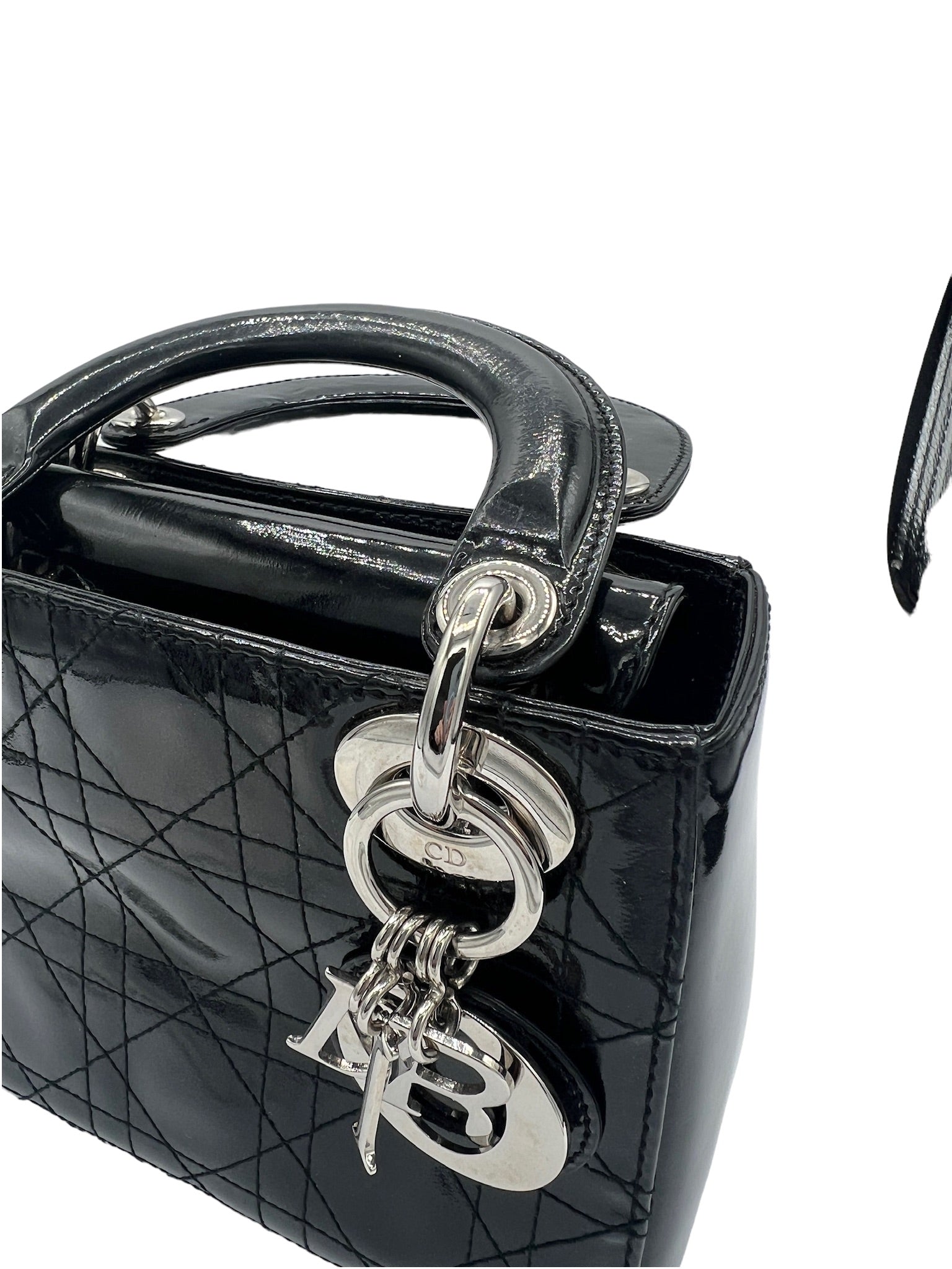 - Accesorios incluidos: Al comprar este bolso de hombro Lady Dior, se entrega con su caja y funda guardapolvo originales. Además, tiene una correa adicional para que puedas llevarlo colgado del hombro o cruzado.