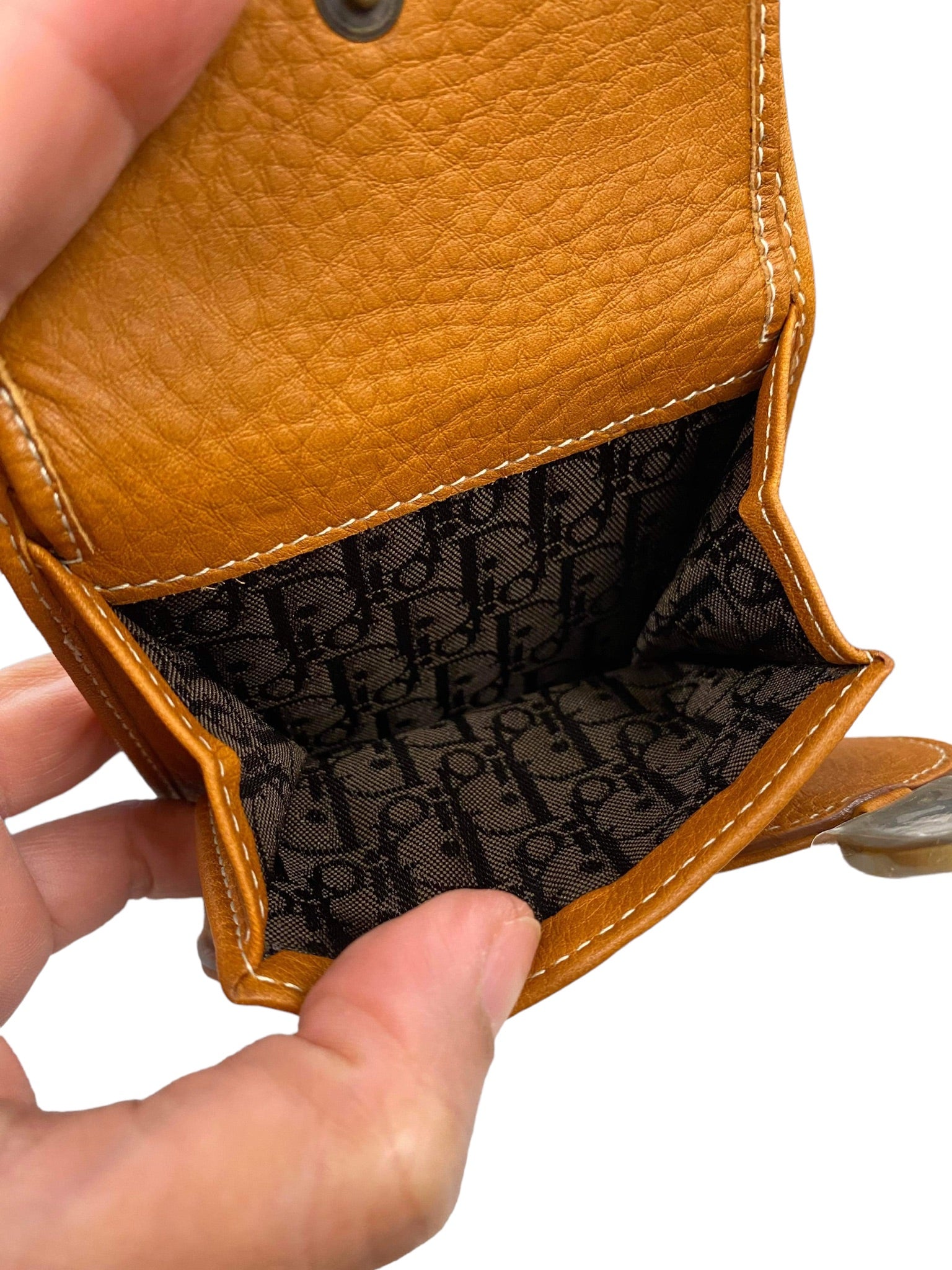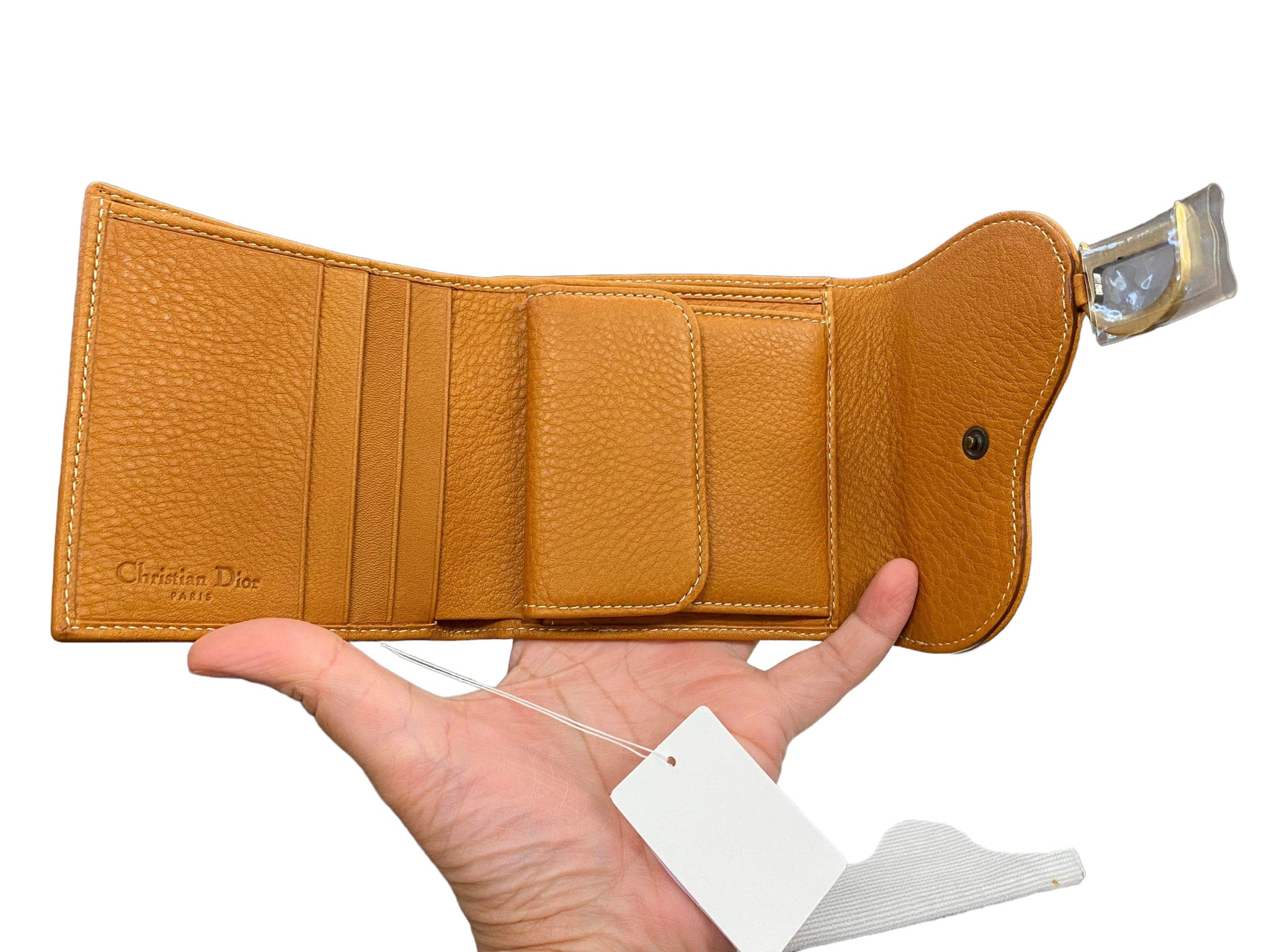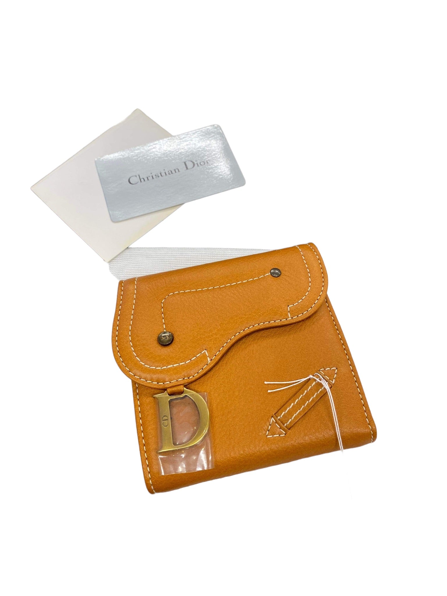 ¡Agrega un poco de estilo a tu guardarropa con esta billetera DIOR - Calfskin Saddle usada en marrón claro!