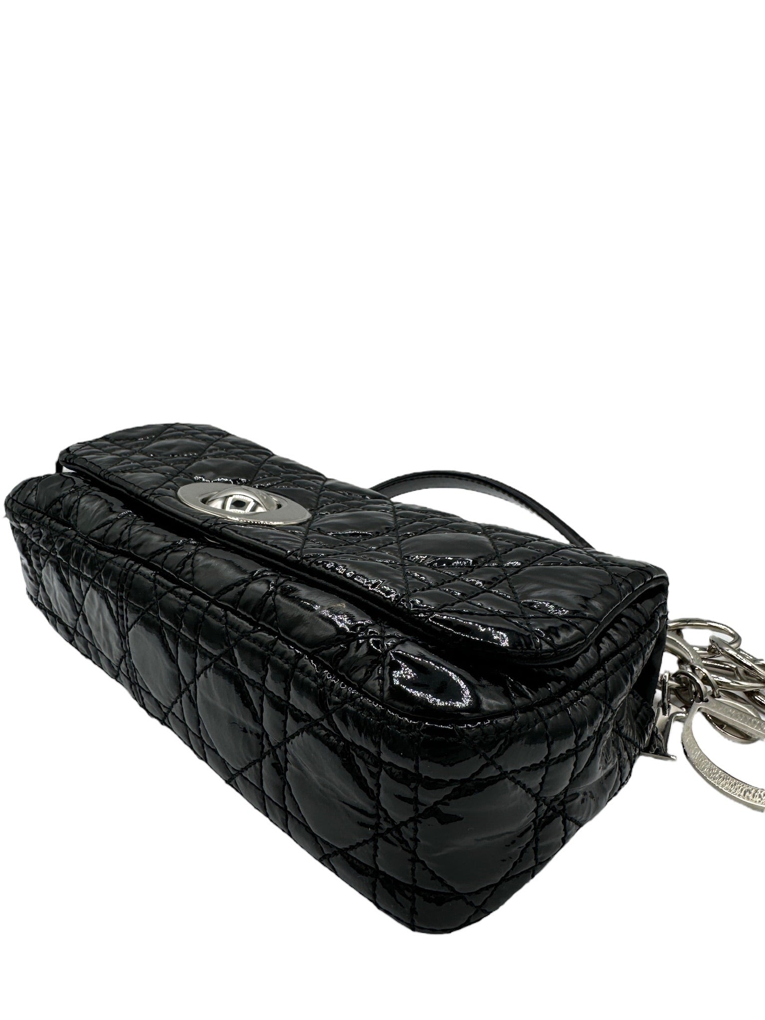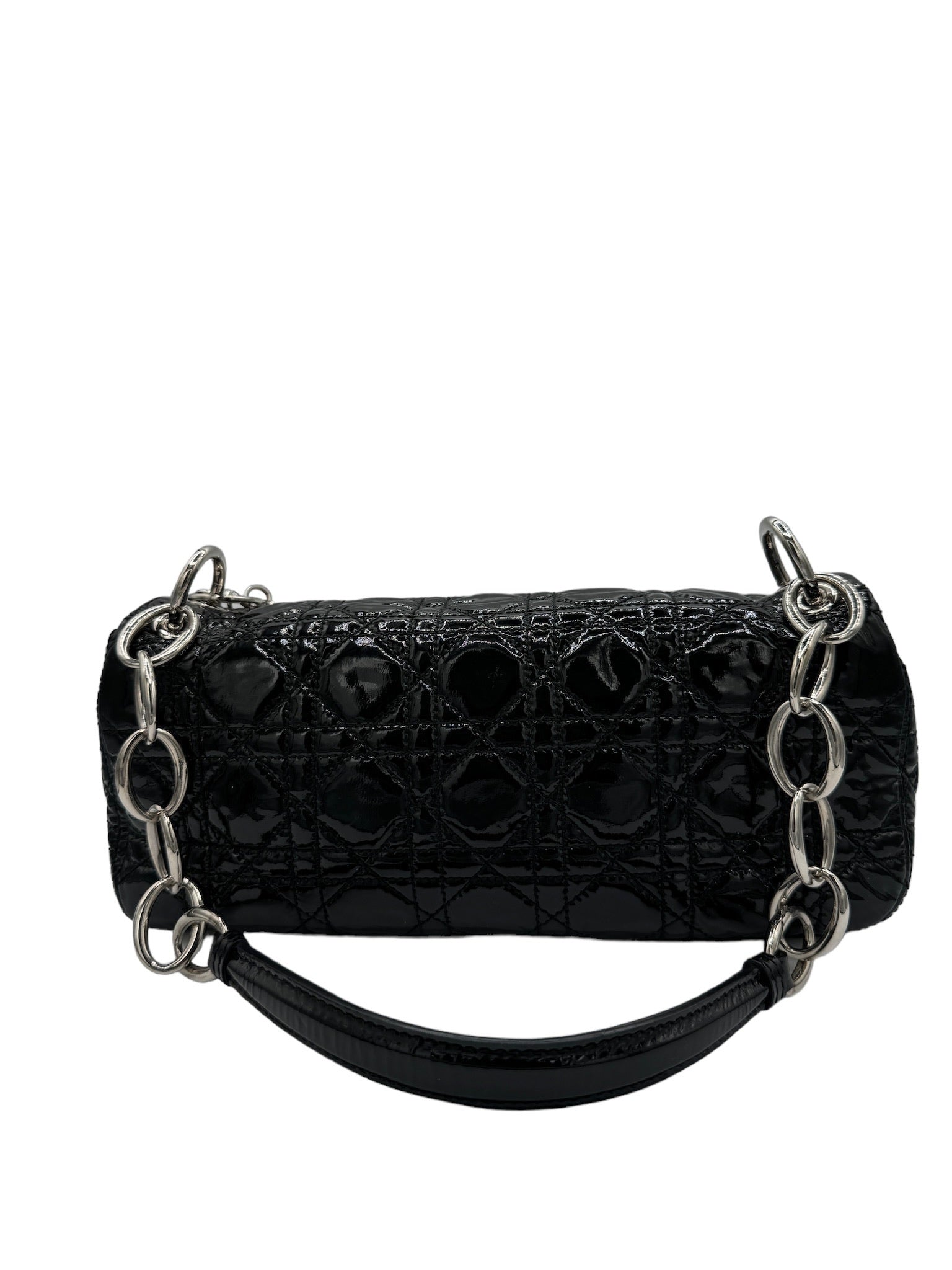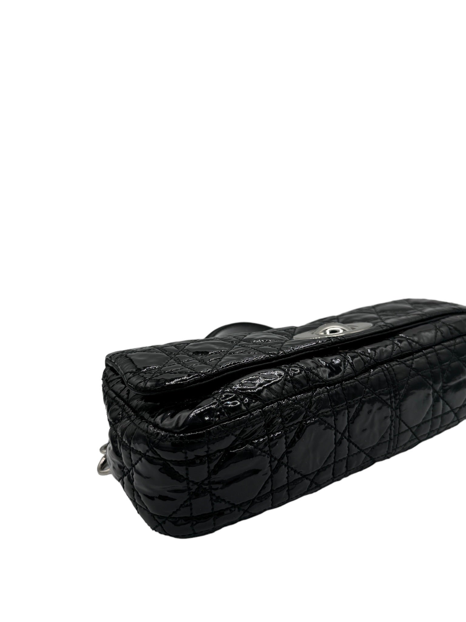 DIOR - Bolso de hombro de charol negro con puntada Cannage