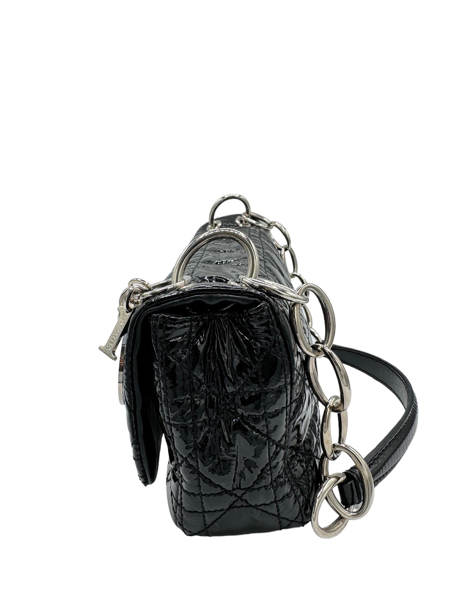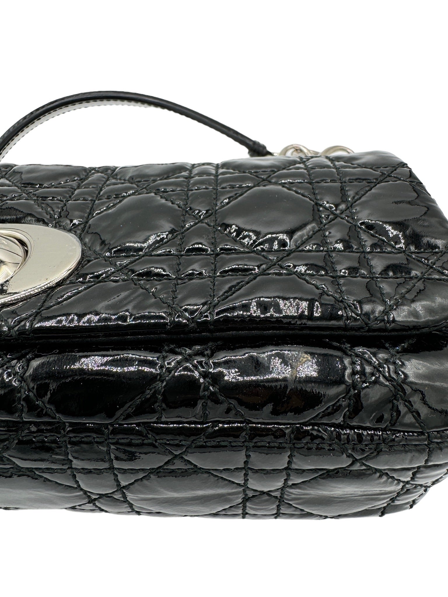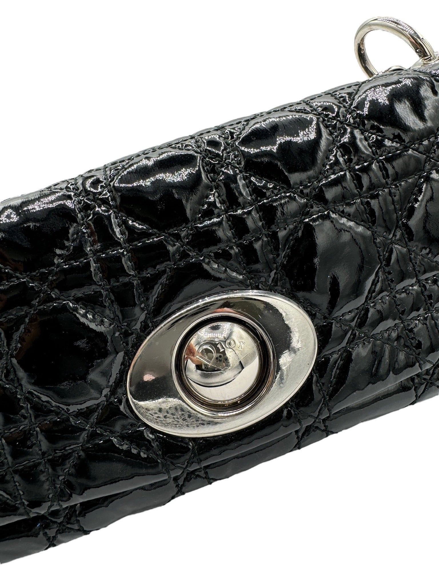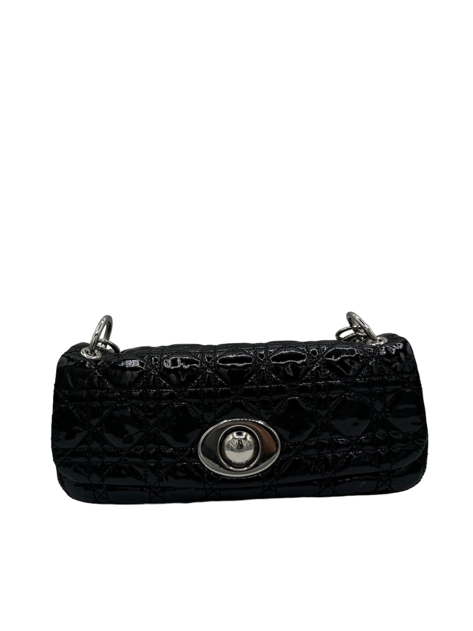 DIOR - Bolso de hombro de charol negro con puntada Cannage