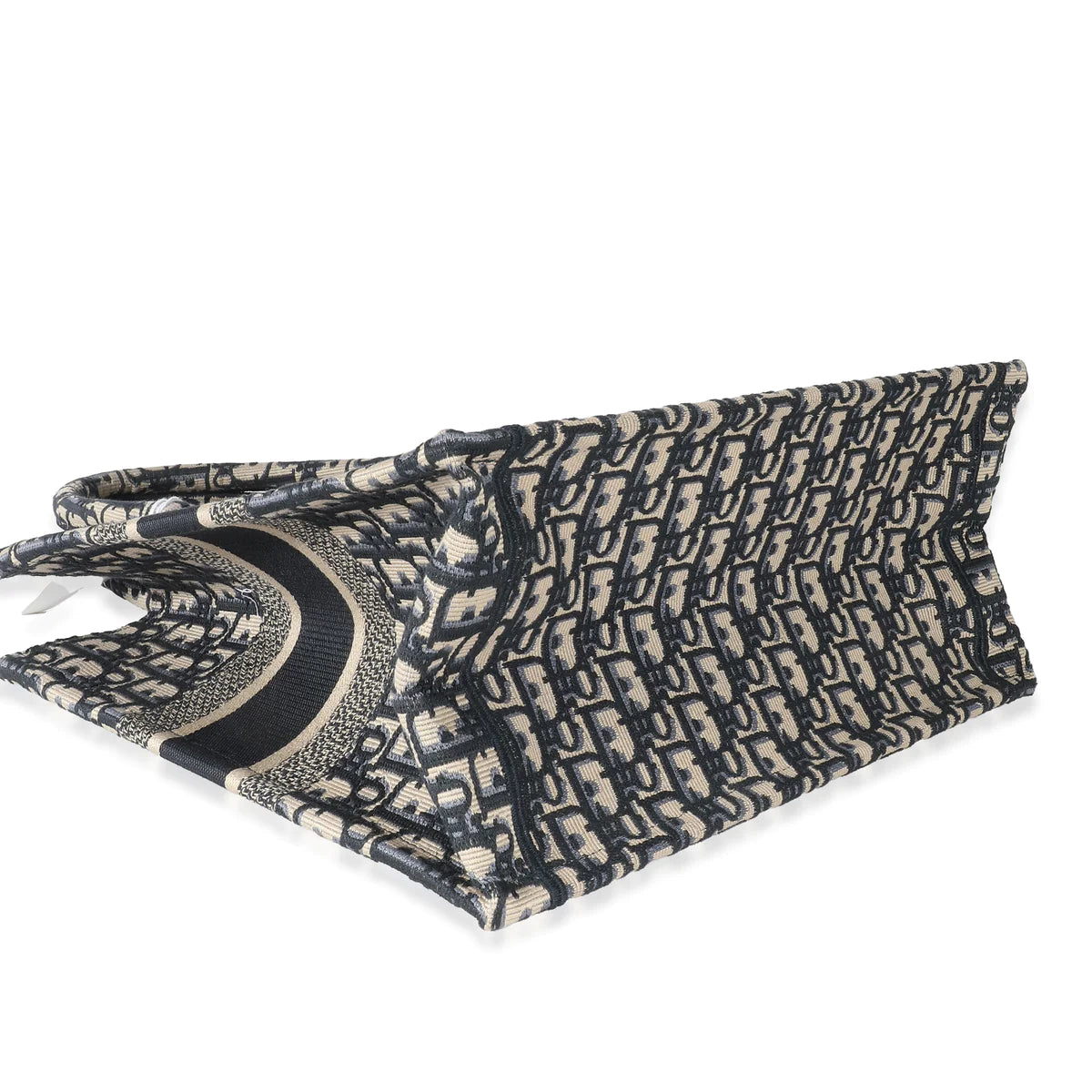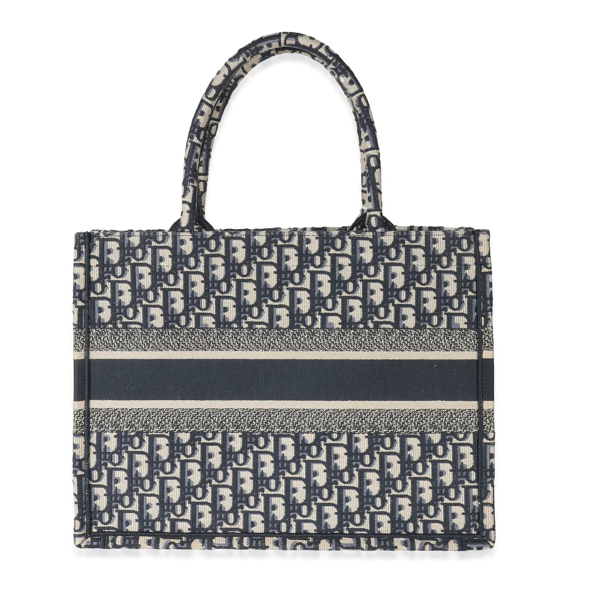 DIOR - Bolso tote mediano con diseño de libro oblicuo en azul crudo