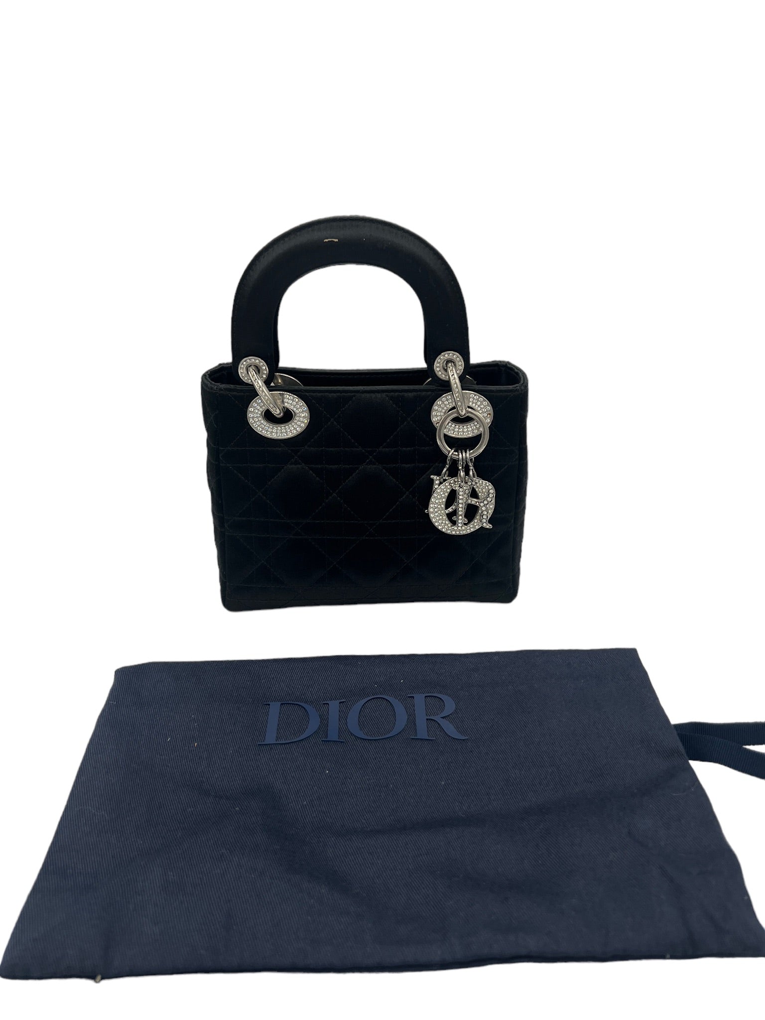 DIOR - Mini Lady Dior con cristales de satén negro