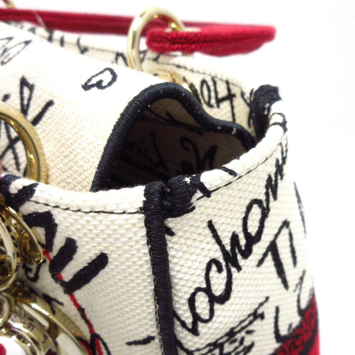 DIOR - Bolso de mano Lady Dior Medium Jacquard Crema Rojo Negro