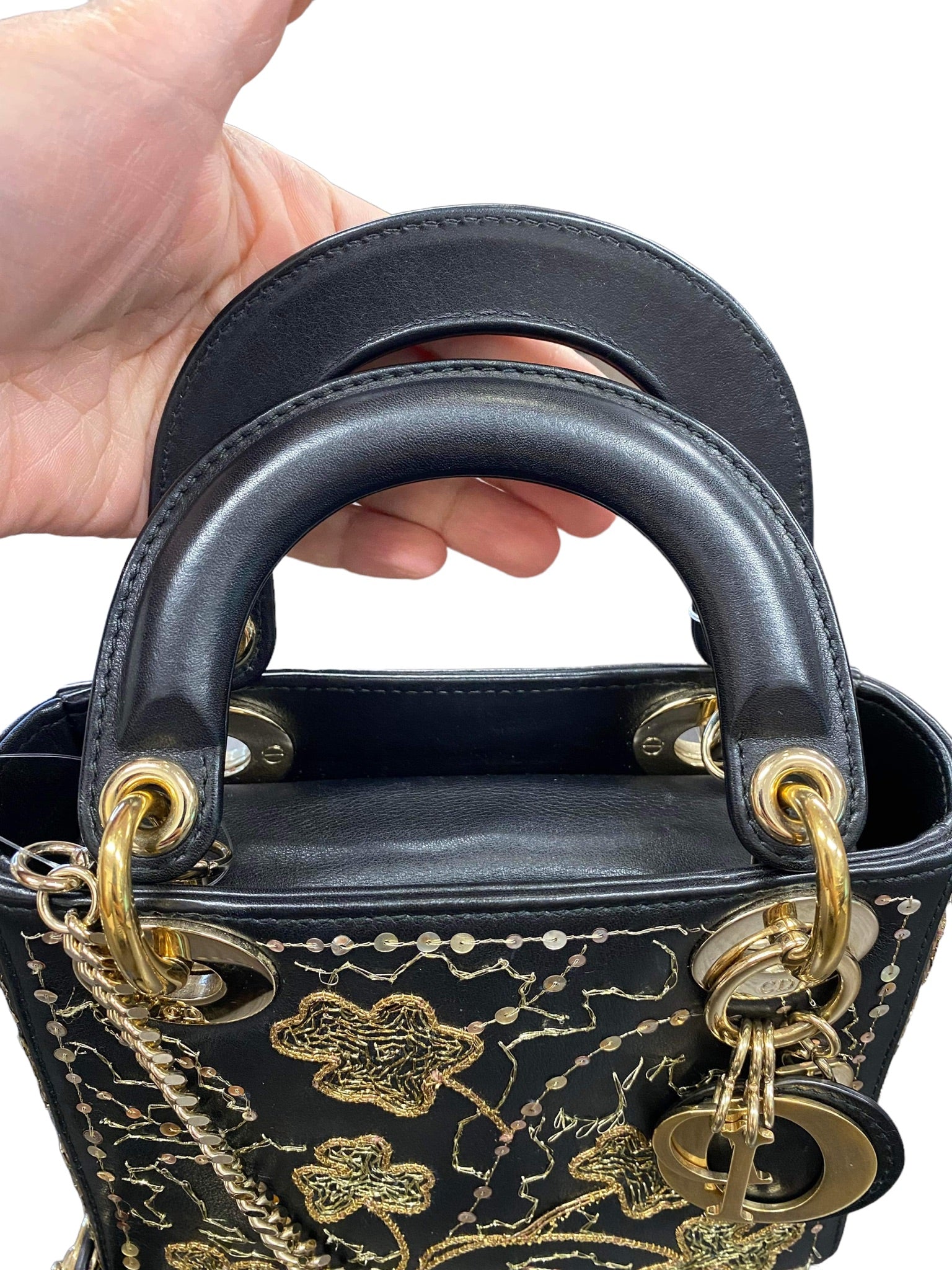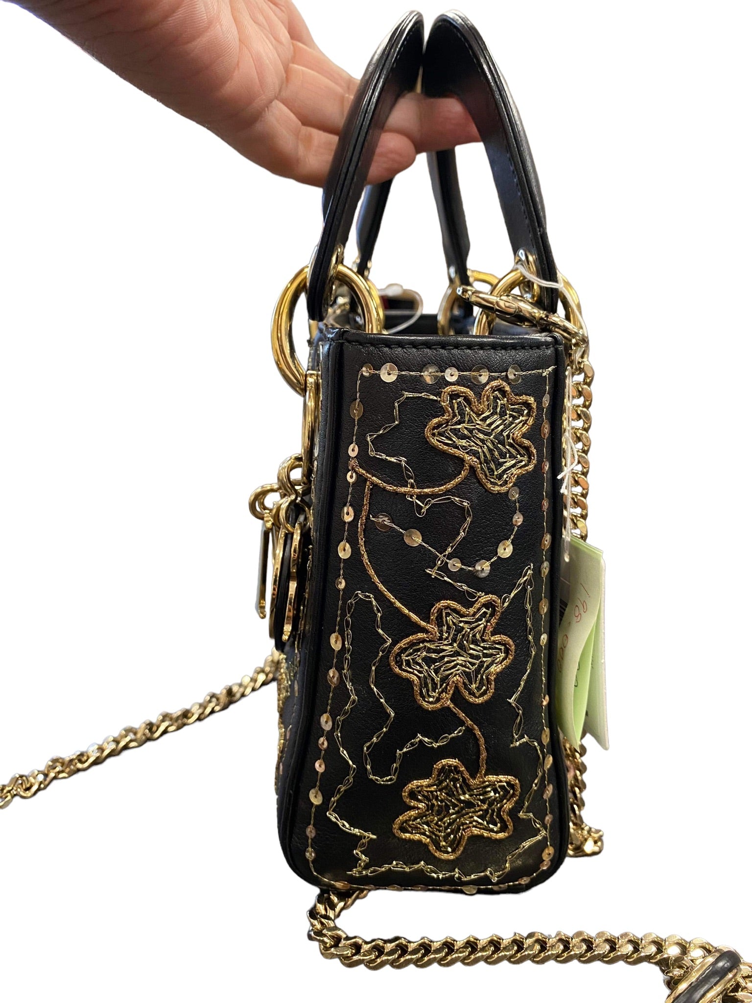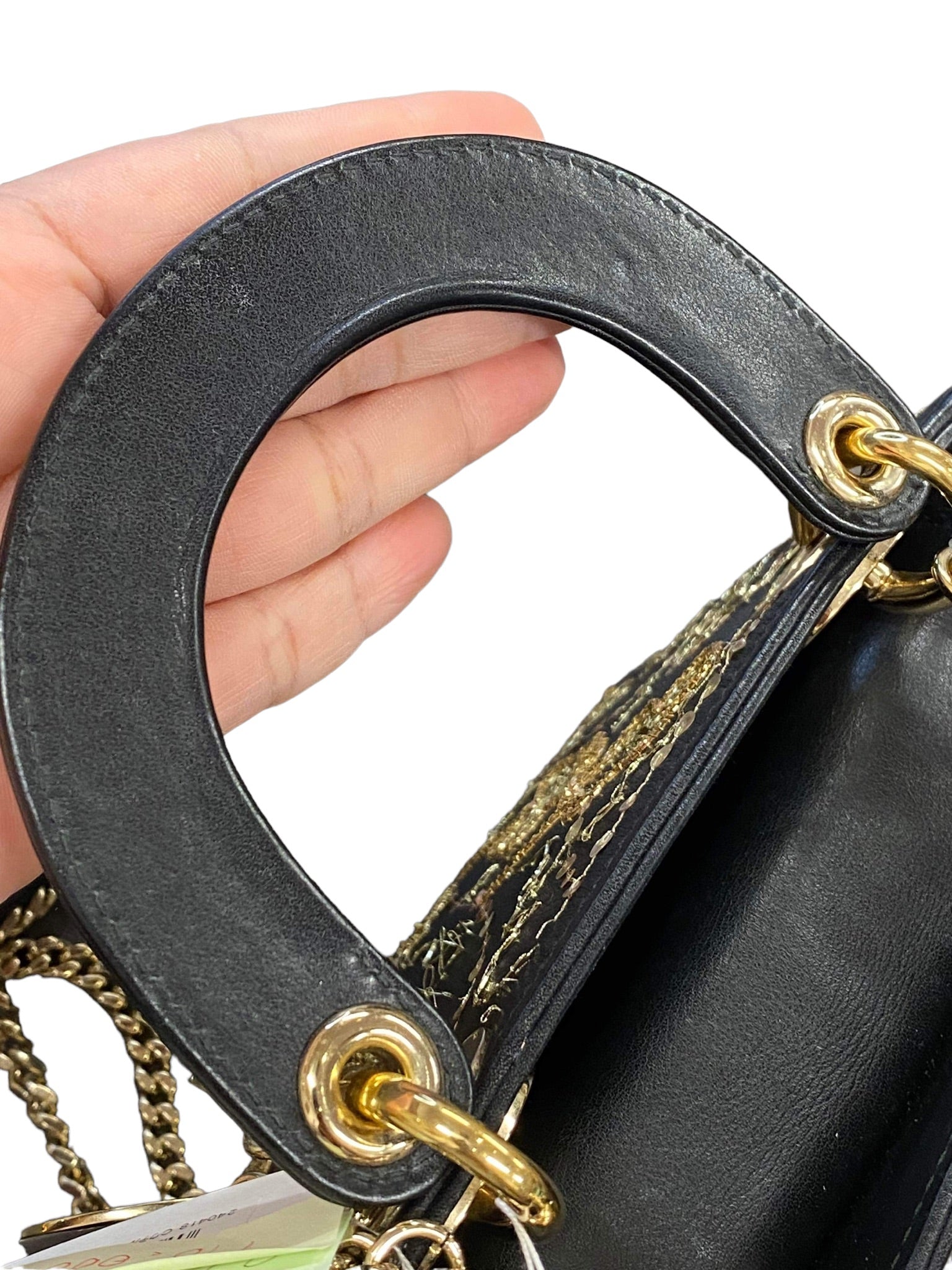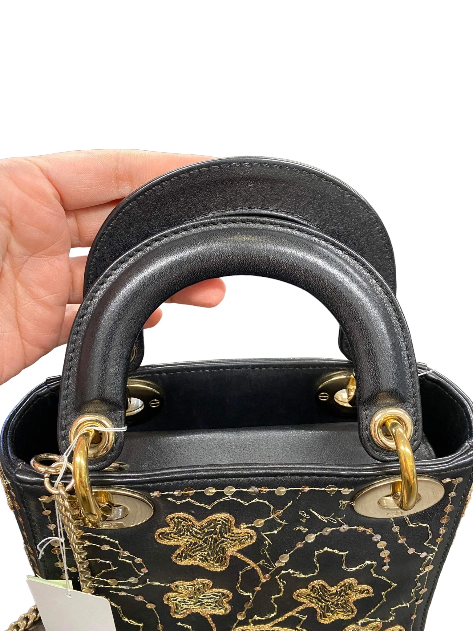 Este bolso DIOR Mini Lady Dior está elaborado con elegancia con flores bordadas y detalles en tono dorado. El delicado bordado le aporta un toque de feminidad, lo que lo convierte en la pieza perfecta para cualquier ocasión. Su tamaño más pequeño permite llevarlo cómodamente y con estilo.