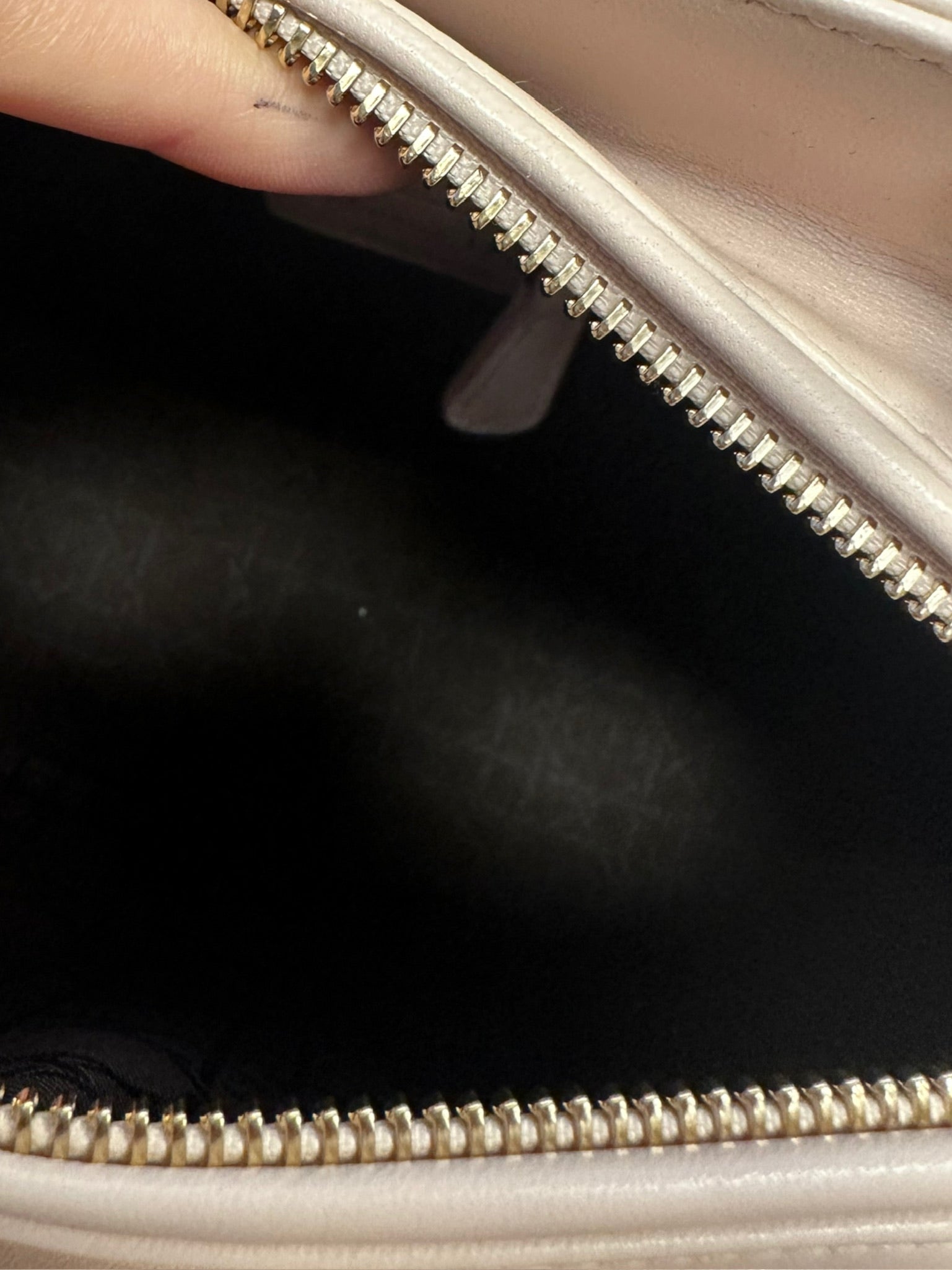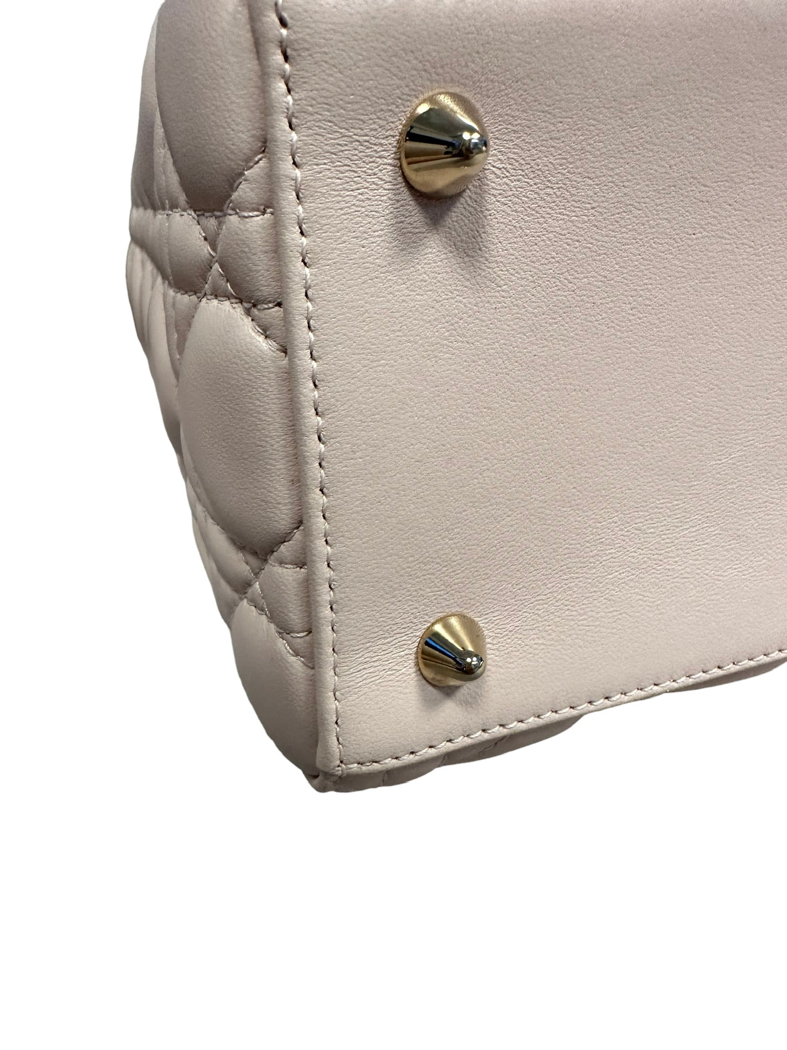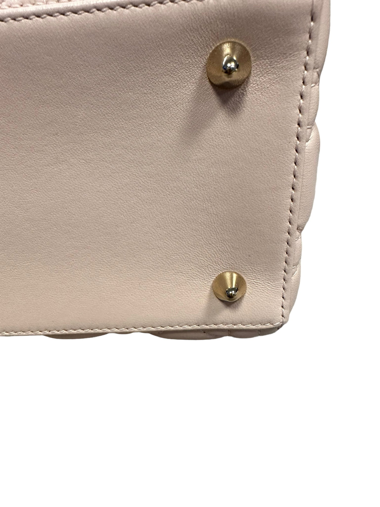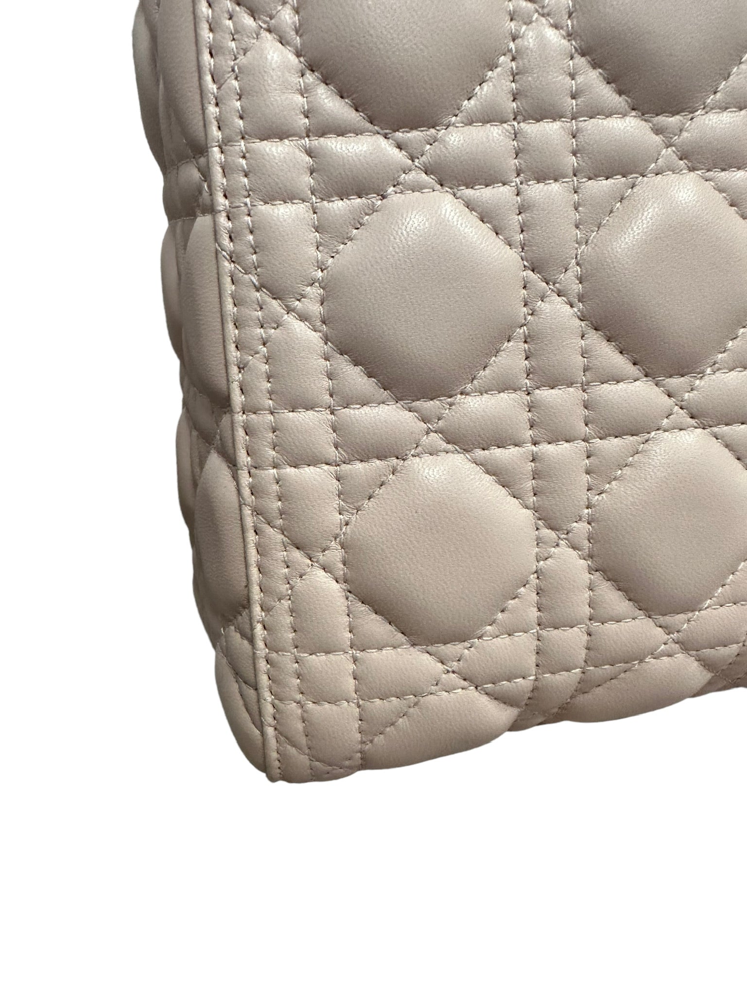 El DIOR Powder Pink Lambskin Cannage Medium Lady Dior, elaborado por expertos con piel de cordero suave, presenta elegantes herrajes plateados y está listo para realzar cualquier atuendo. Experimente el lujo y el estilo con este bolso atemporal.