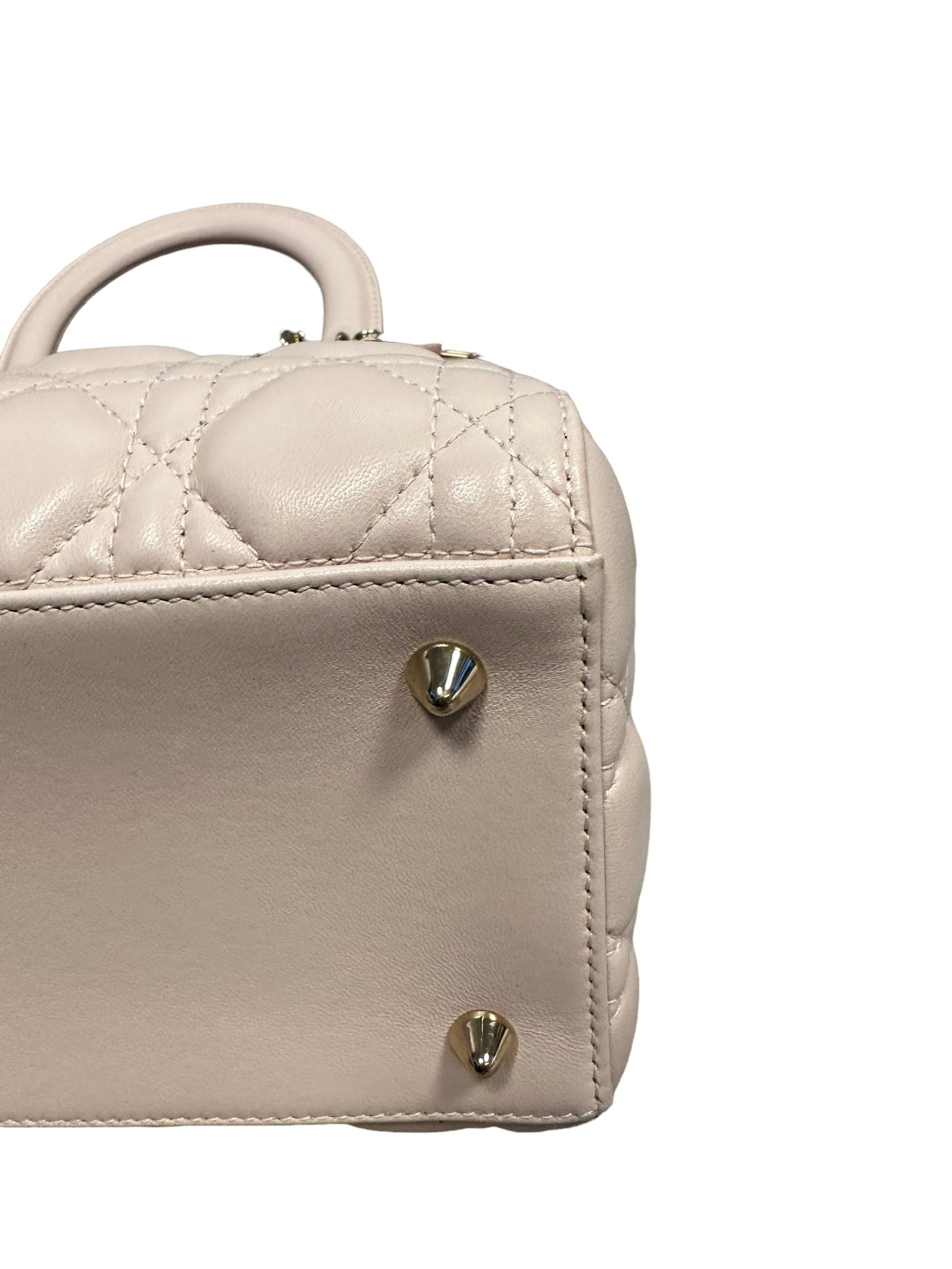DIOR - Bolso de mano mediano Lady Dior de piel de cordero color rosa empolvado