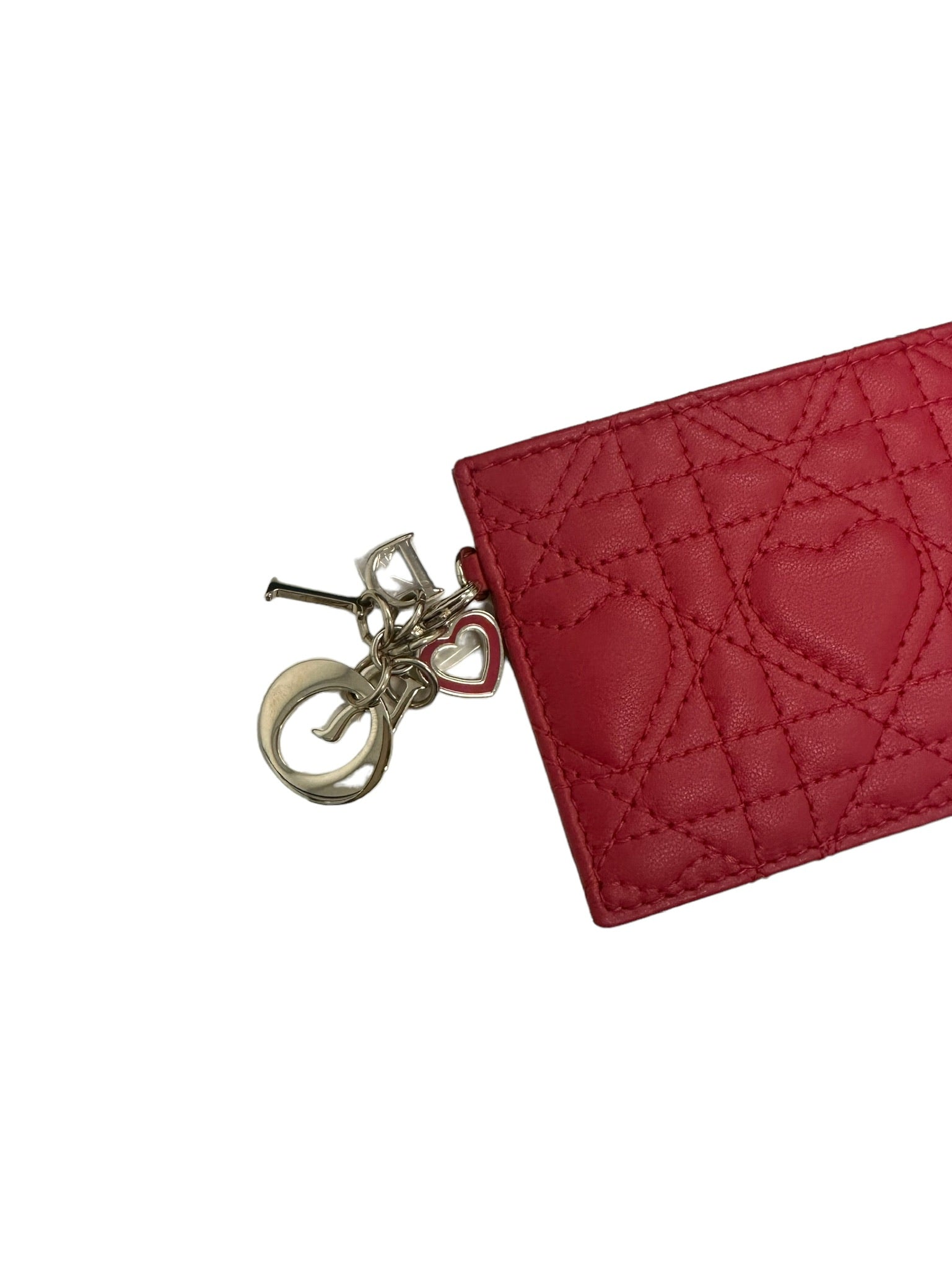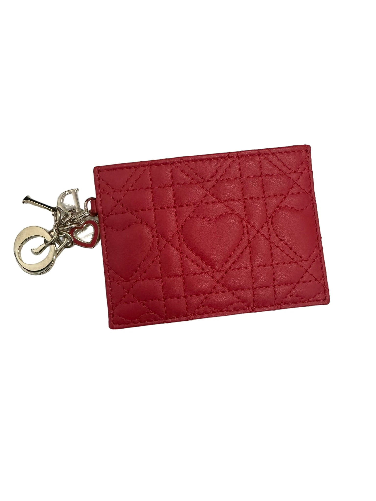 El tarjetero DIOR Lady Dior, elaborado por expertos con lujosa piel de cordero roja, está rematado con elegantes herrajes plateados. Mantenga sus tarjetas organizadas y seguras con estilo con este elegante accesorio.