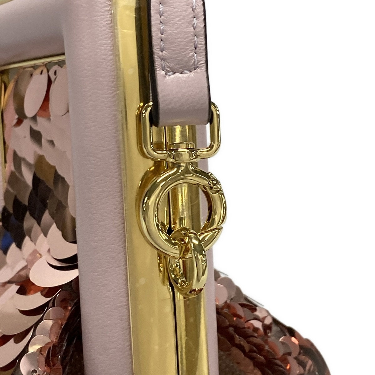 Mejora tu look con este exclusivo bolso de hombro FENDI que irradia encanto con sus detalles de lentejuelas rosas.