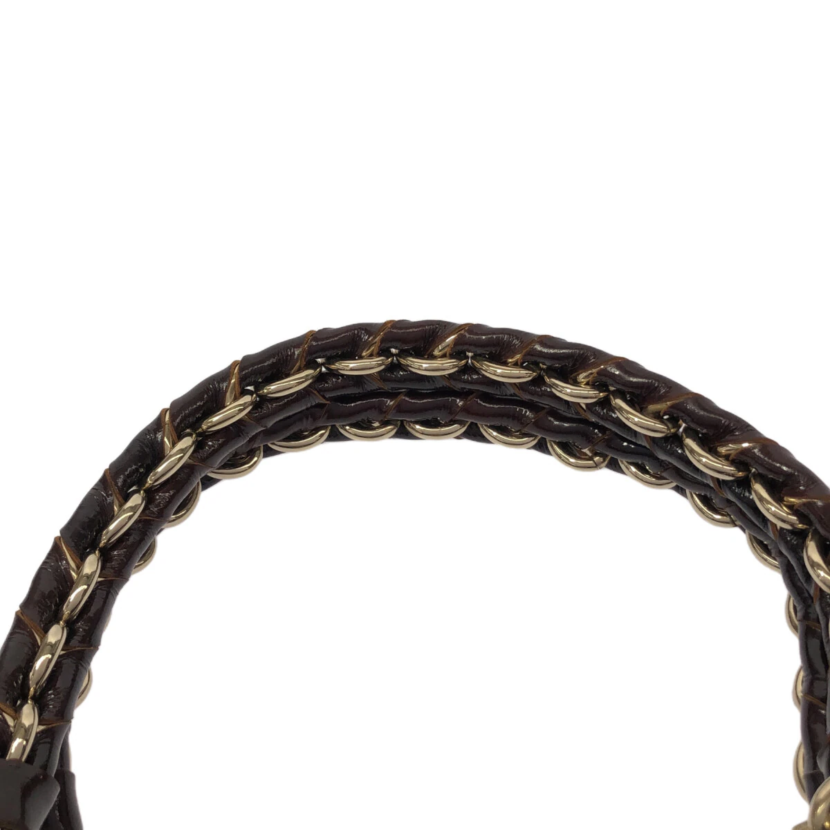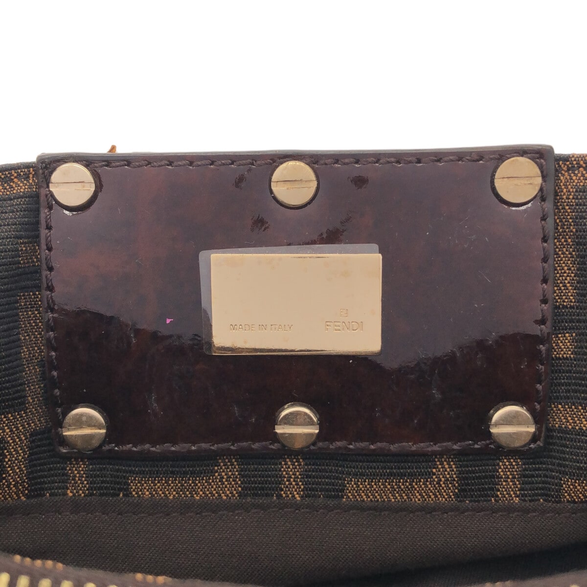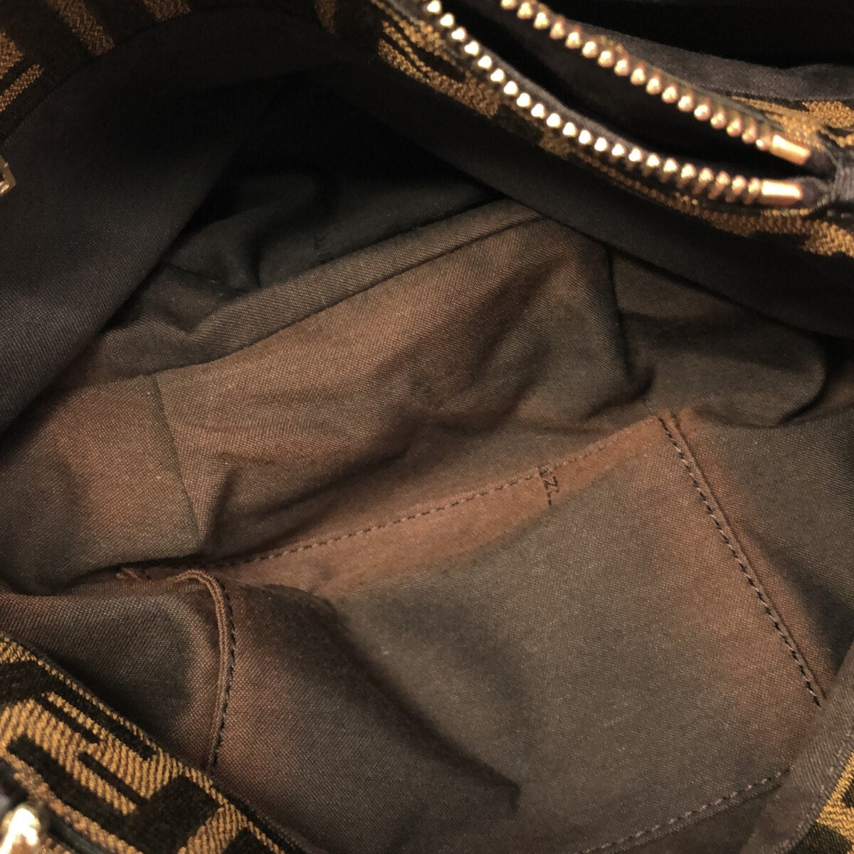 El bolso tote Mia Zucca de FENDI es el accesorio perfecto para cualquier fashionista que quiera marcar tendencia. Este elegante bolso, confeccionado con lujoso charol jacquard, presenta pequeños arañazos y ligeras marcas de suciedad que le aportan carácter y singularidad. Sin embargo, no te dejes engañar por su aspecto elegante, ya que también ofrece durabilidad con su revestimiento metálico descascarillado y ligeros roces en la parte inferior y las asas.