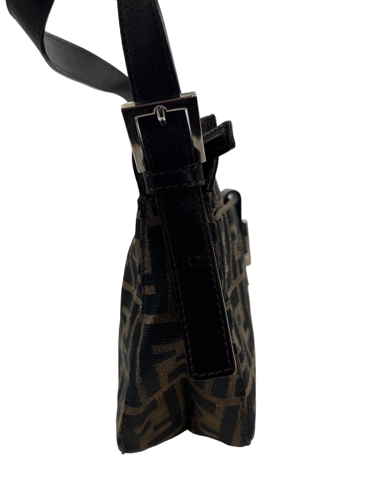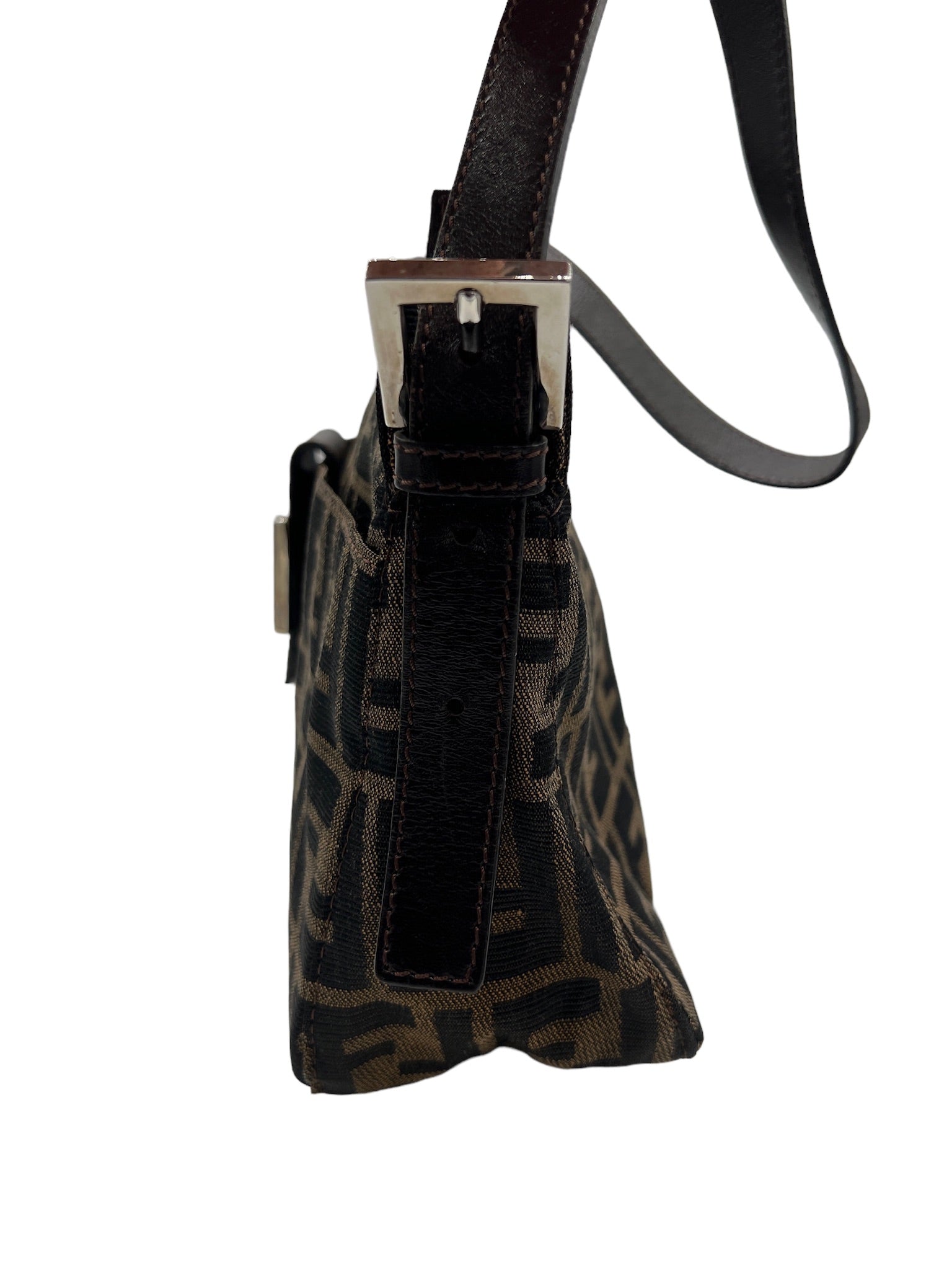 Este bolso de hombro Zucca de nailon de FENDI usado es un artículo imprescindible para cualquier amante de la moda. Con una silueta elegante y colores versátiles en beige, negro y marrón oscuro, este bolso es perfecto para cualquier ocasión.