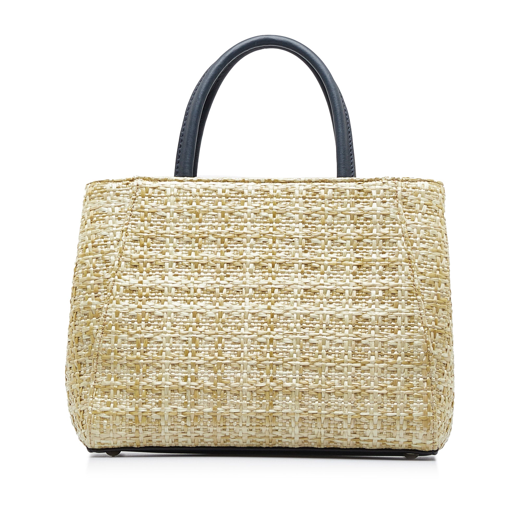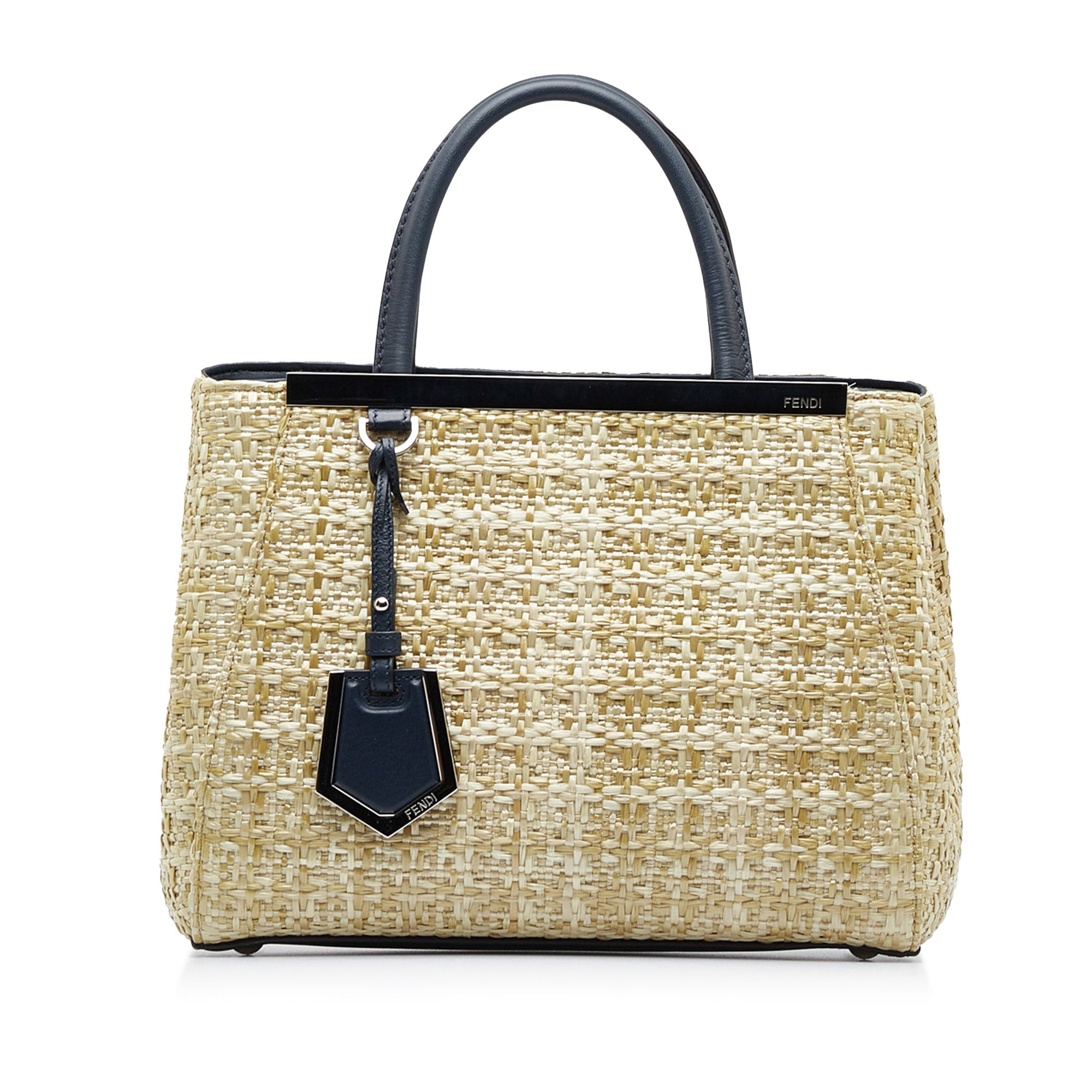 Lleve un estilo sofisticado con el bolso de mano FENDI Petit 2Jours de segunda mano. Este bolso con asa superior, confeccionado con un cuerpo de rafia tejida y asas de cuero enrolladas, irradia elegancia.