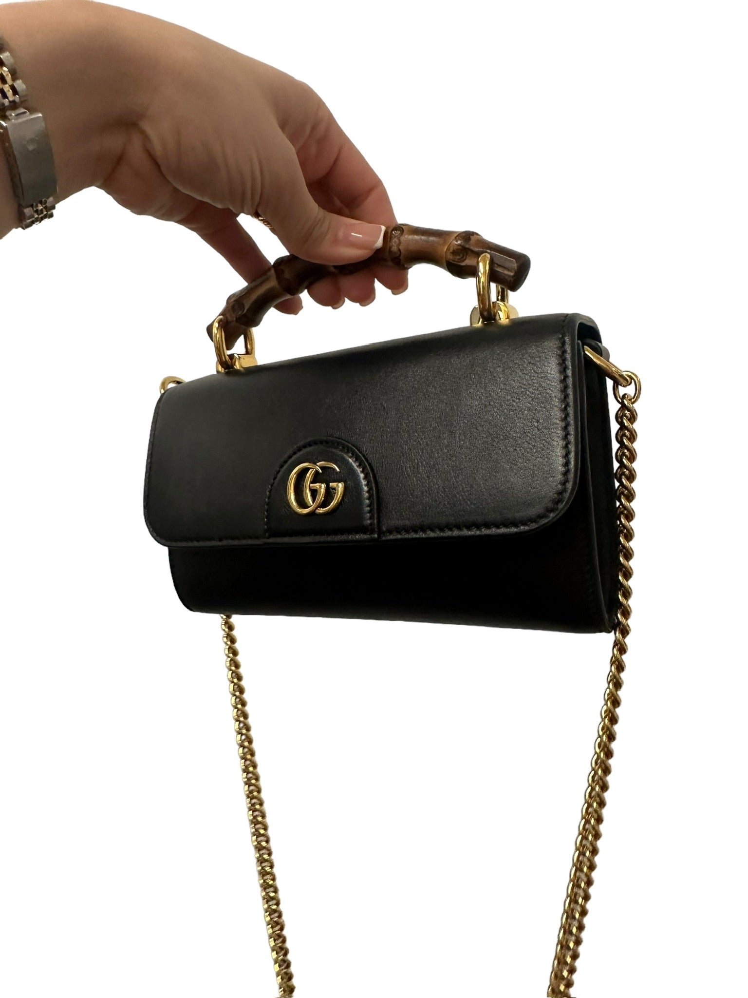 GUCCI - Minibolso de mano Diana de piel de becerro negra de bambú