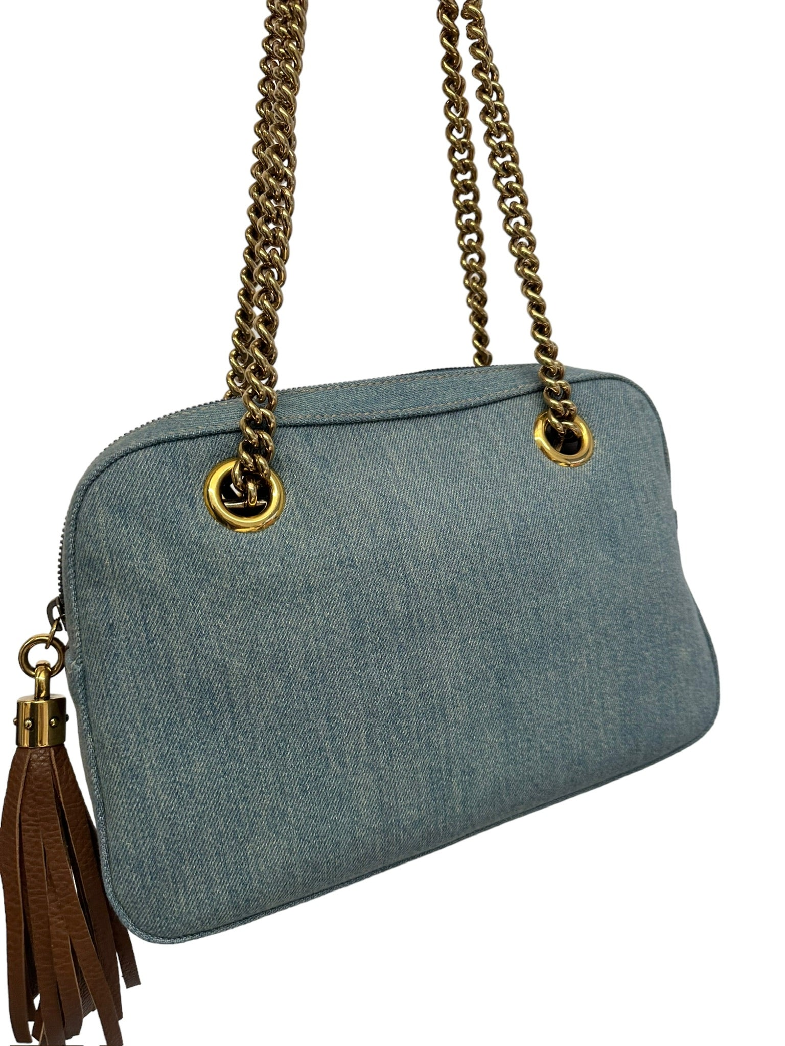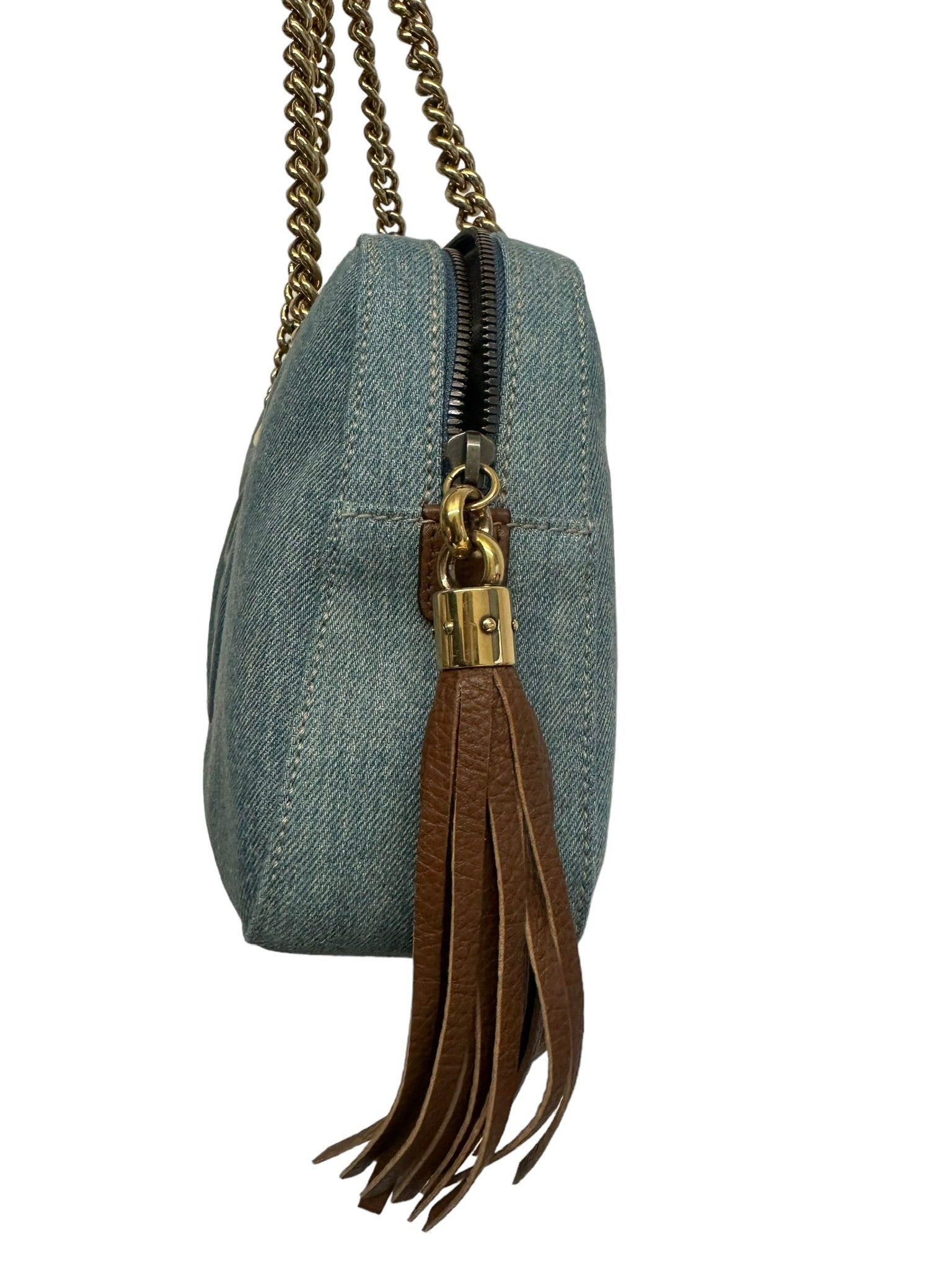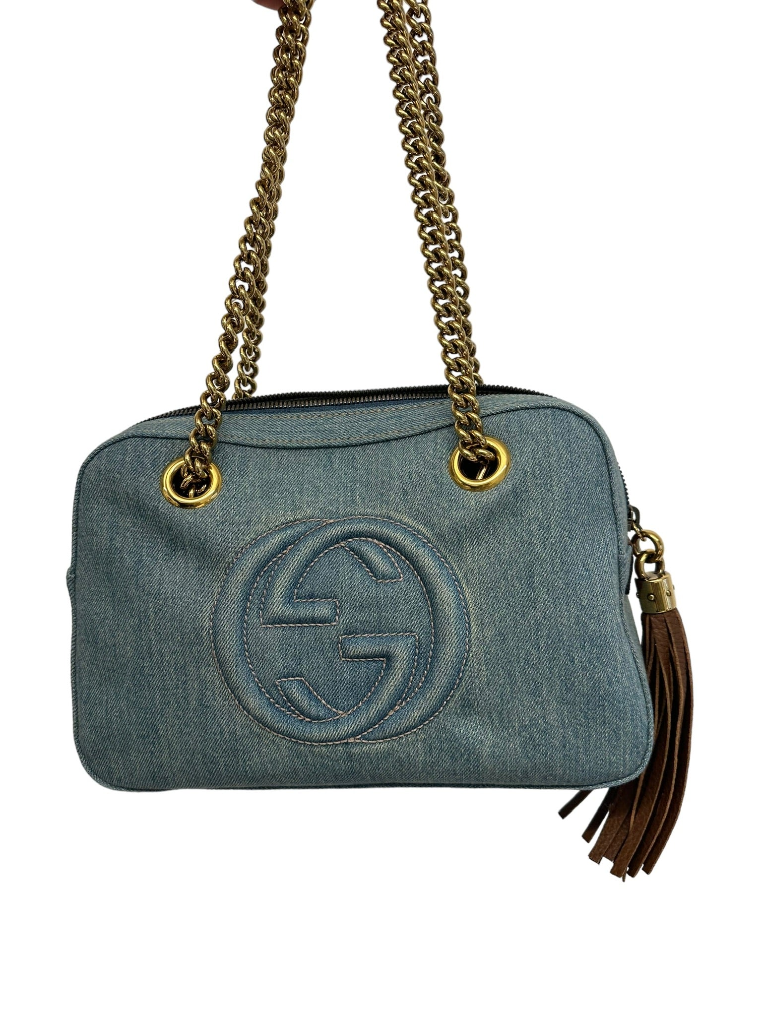 GUCCI - Bolso Bowler Soho Chain pequeño de mezclilla azul