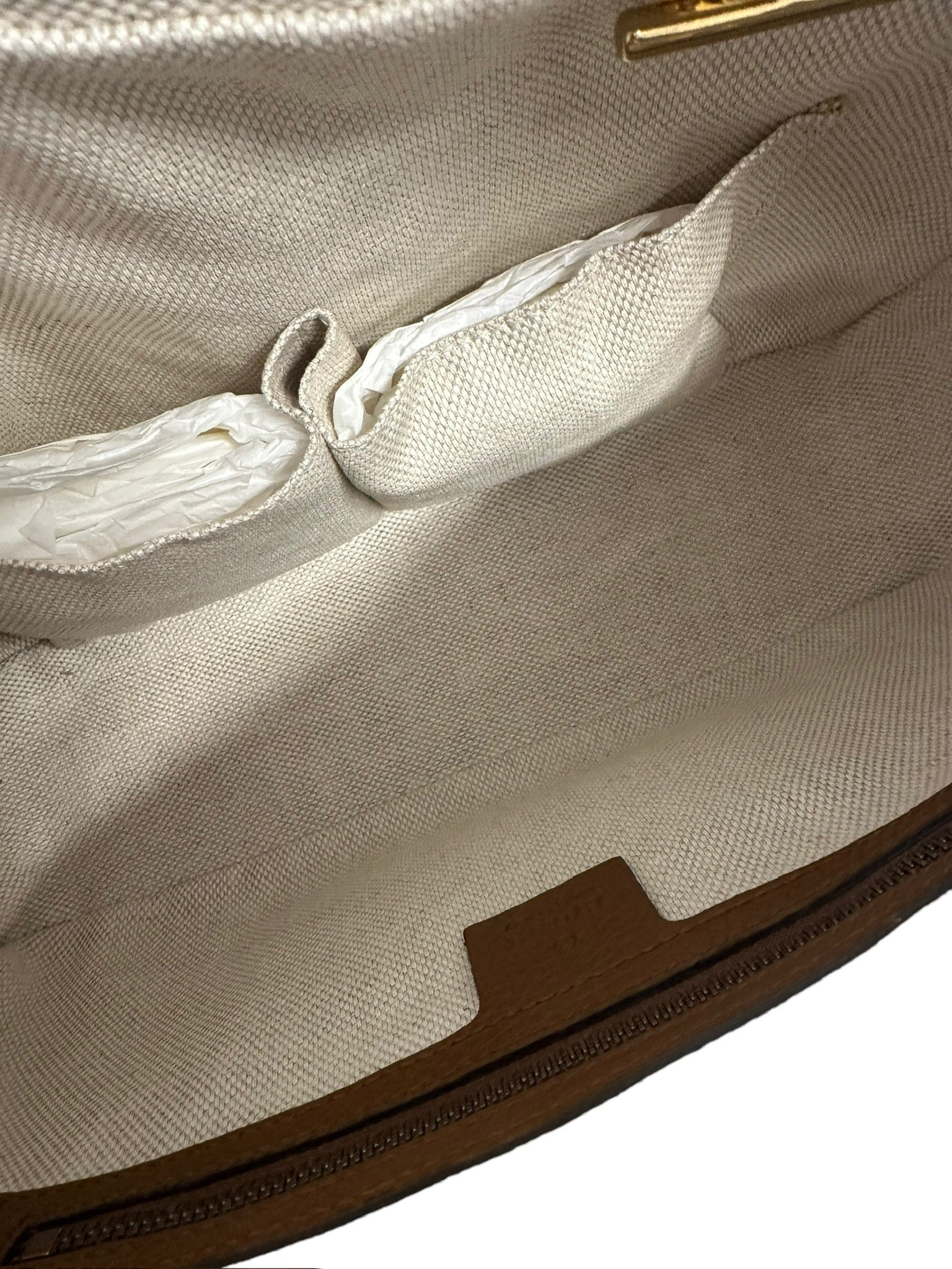 Este bolso GUCCI cuenta con herrajes dorados que le aportan funcionalidad y estilo. Los lujosos herrajes dorados realzan el aspecto general del bolso y añaden un toque de elegancia a cualquier atuendo. Los herrajes dorados de larga duración hacen de este bolso una inversión que vale la pena para cualquier persona a la moda.