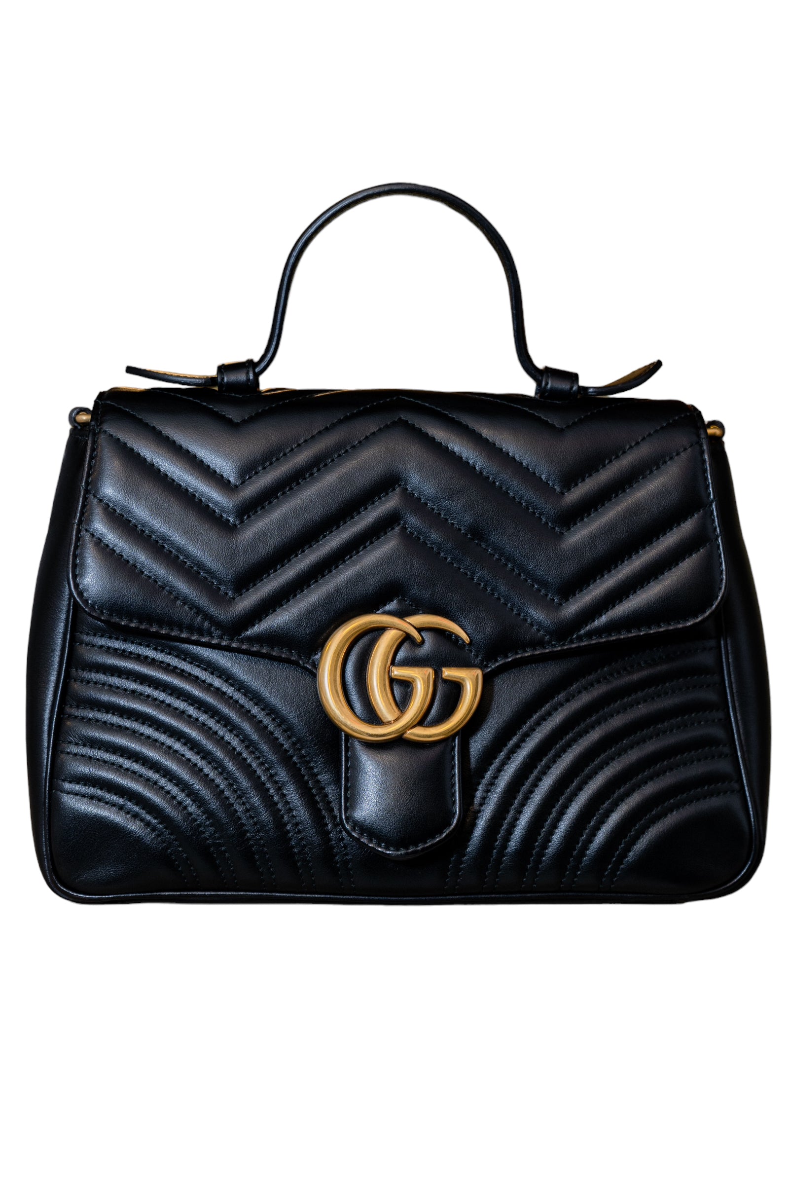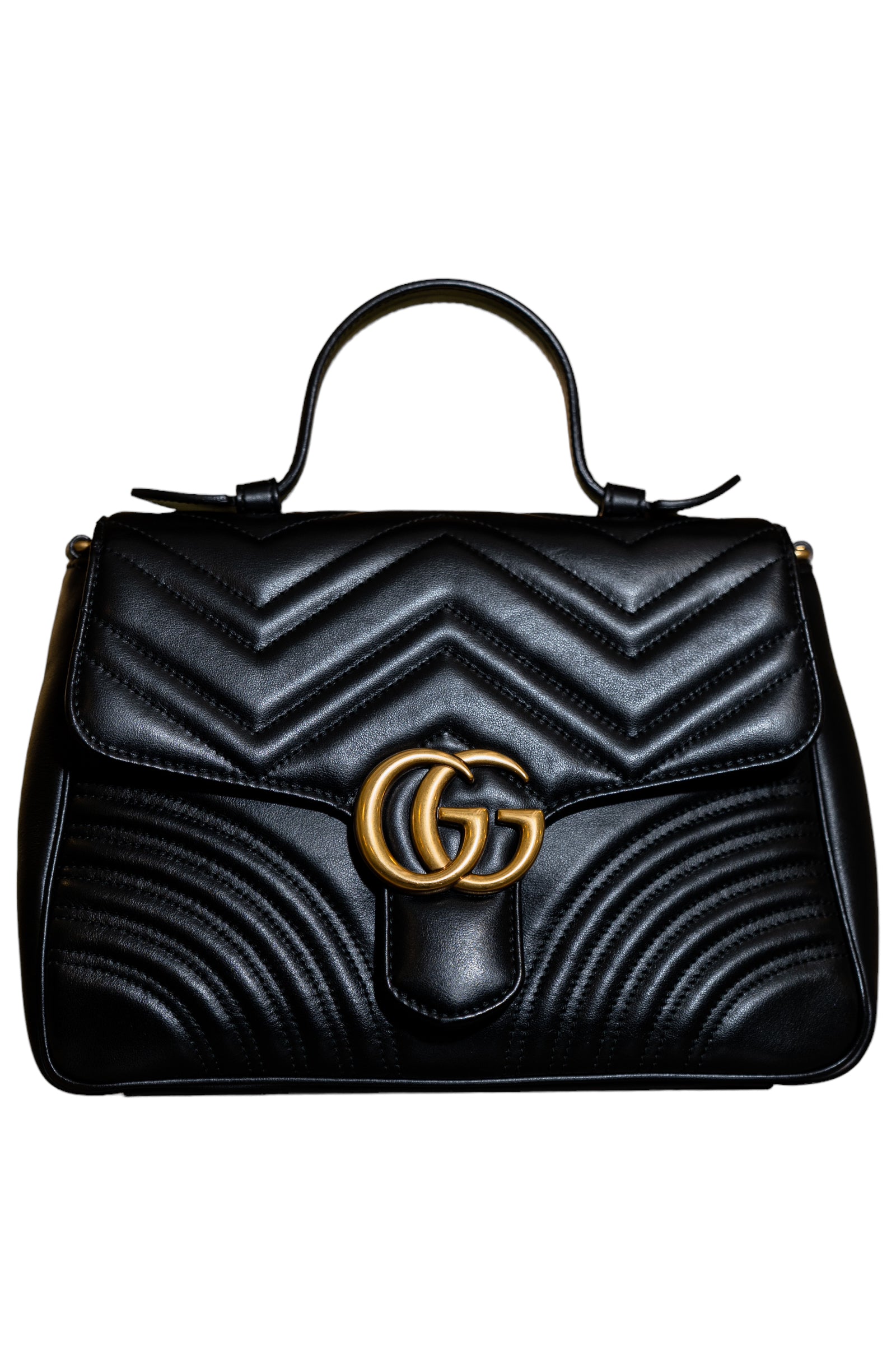 GUCCI - Bolso de hombro mediano con asa superior GG Marmont Matelasse de piel de becerro negro