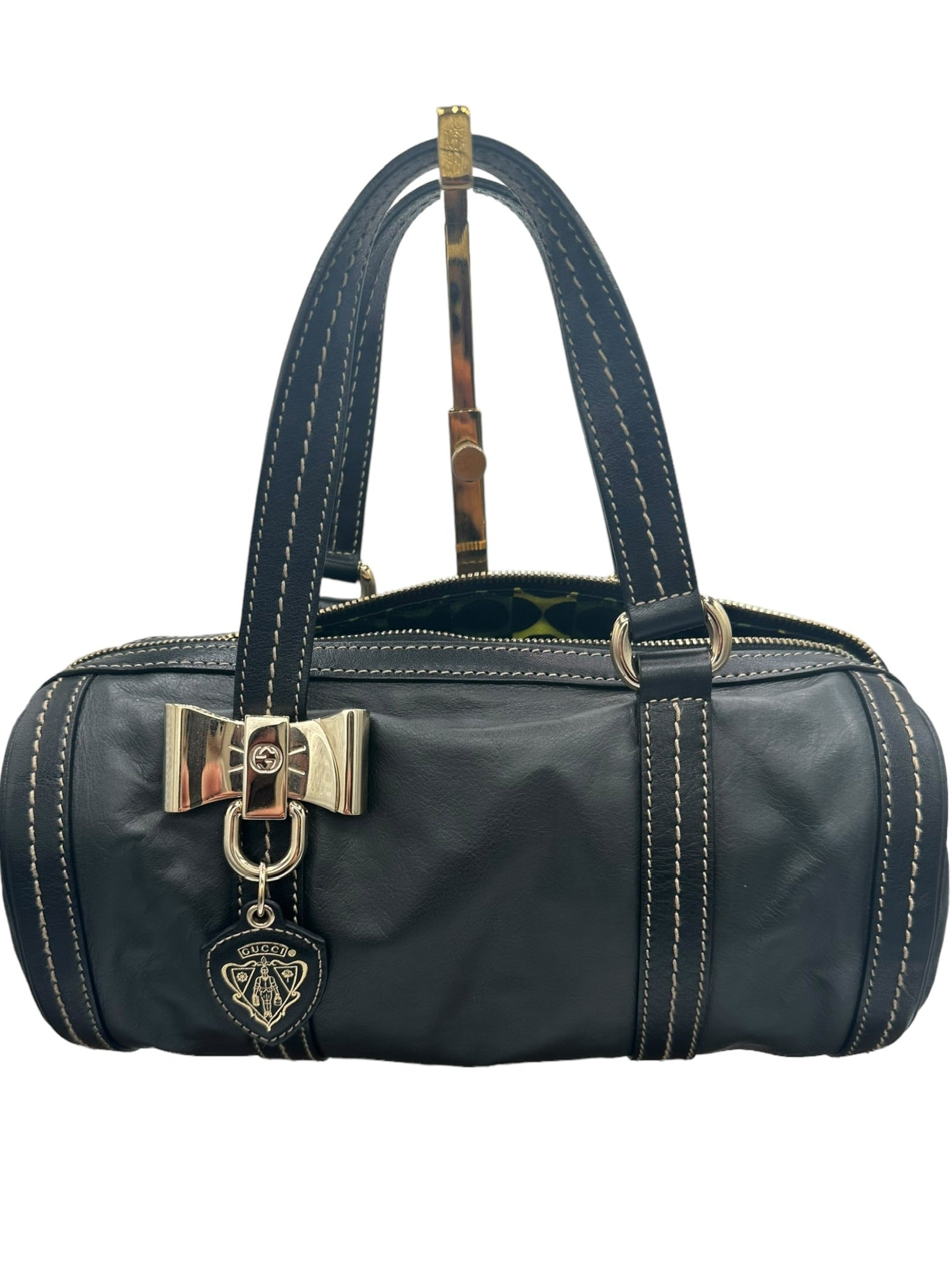 Este bolso Boston Gucci Duchessa usado es el complemento perfecto para tu colección. Este bolso de hombro, confeccionado con cuero negro y herrajes dorados, es elegante y versátil.