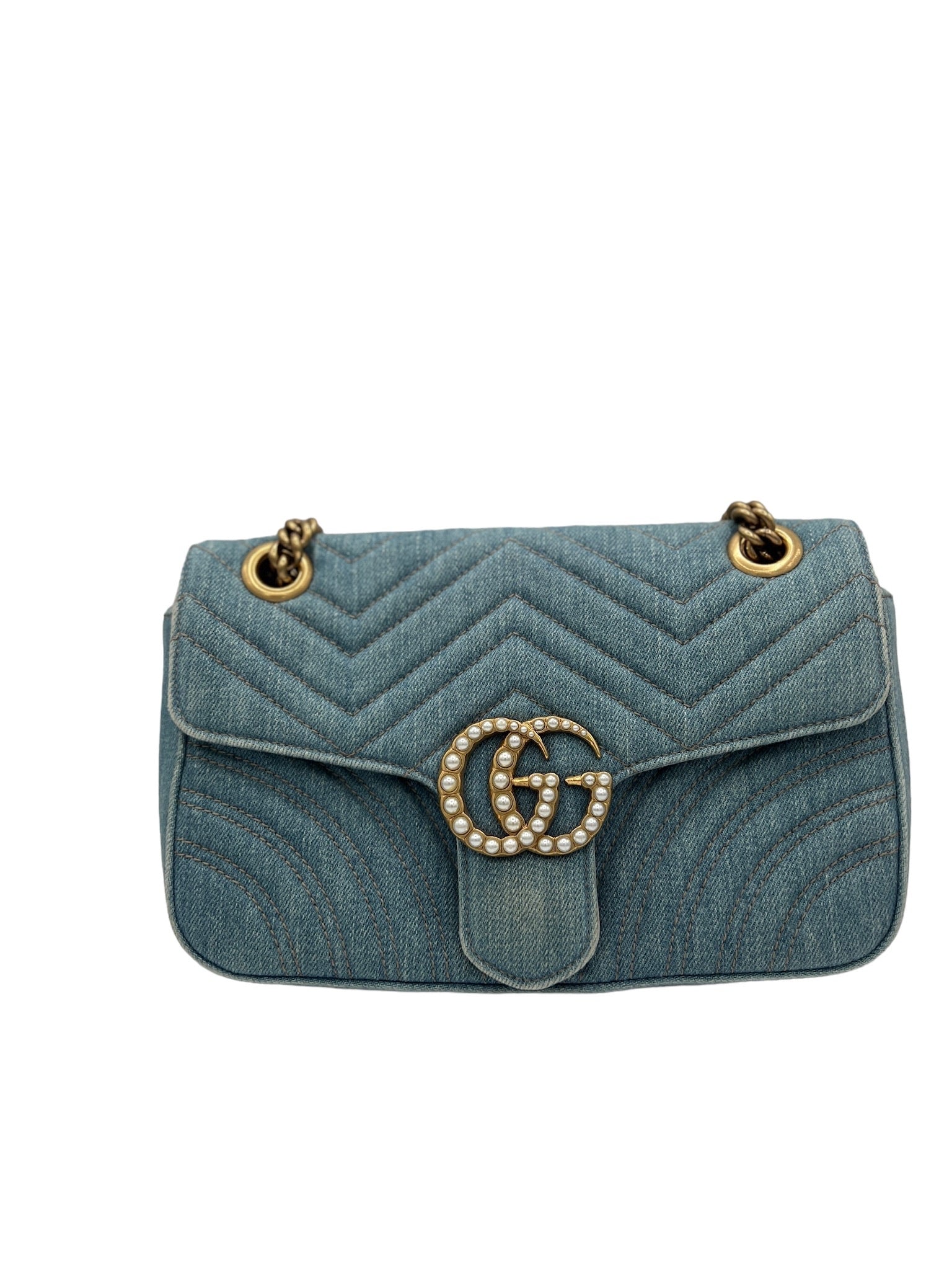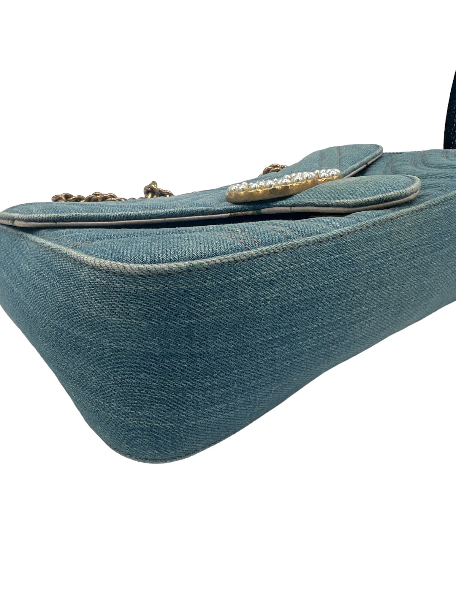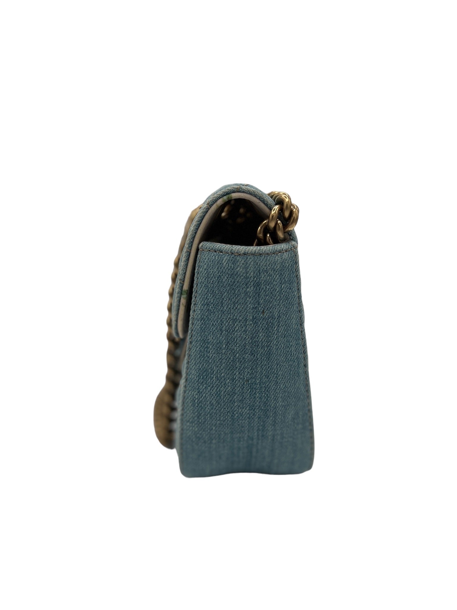 GUCCI - Bolso de hombro de mezclilla azul claro GG Marmont