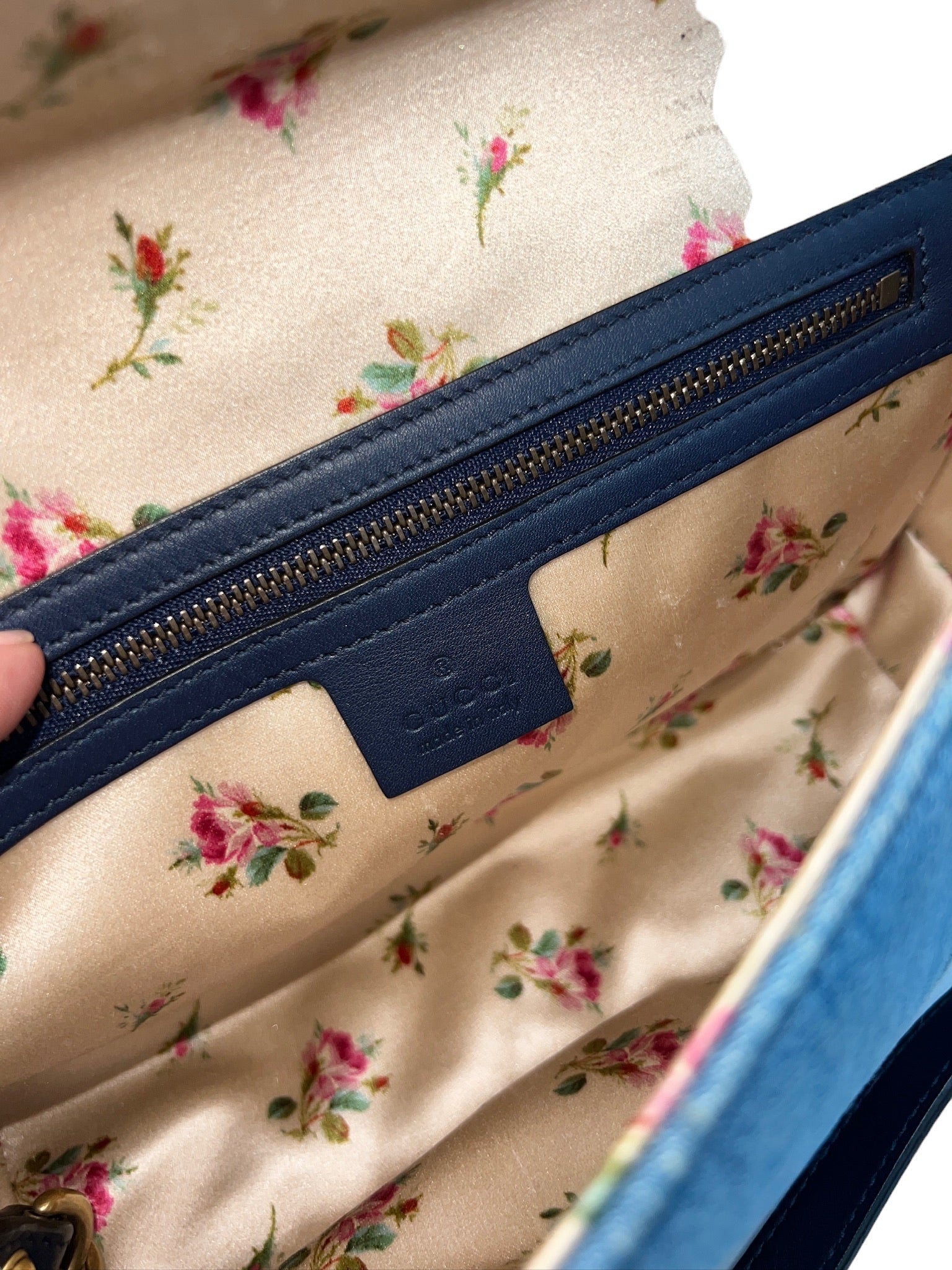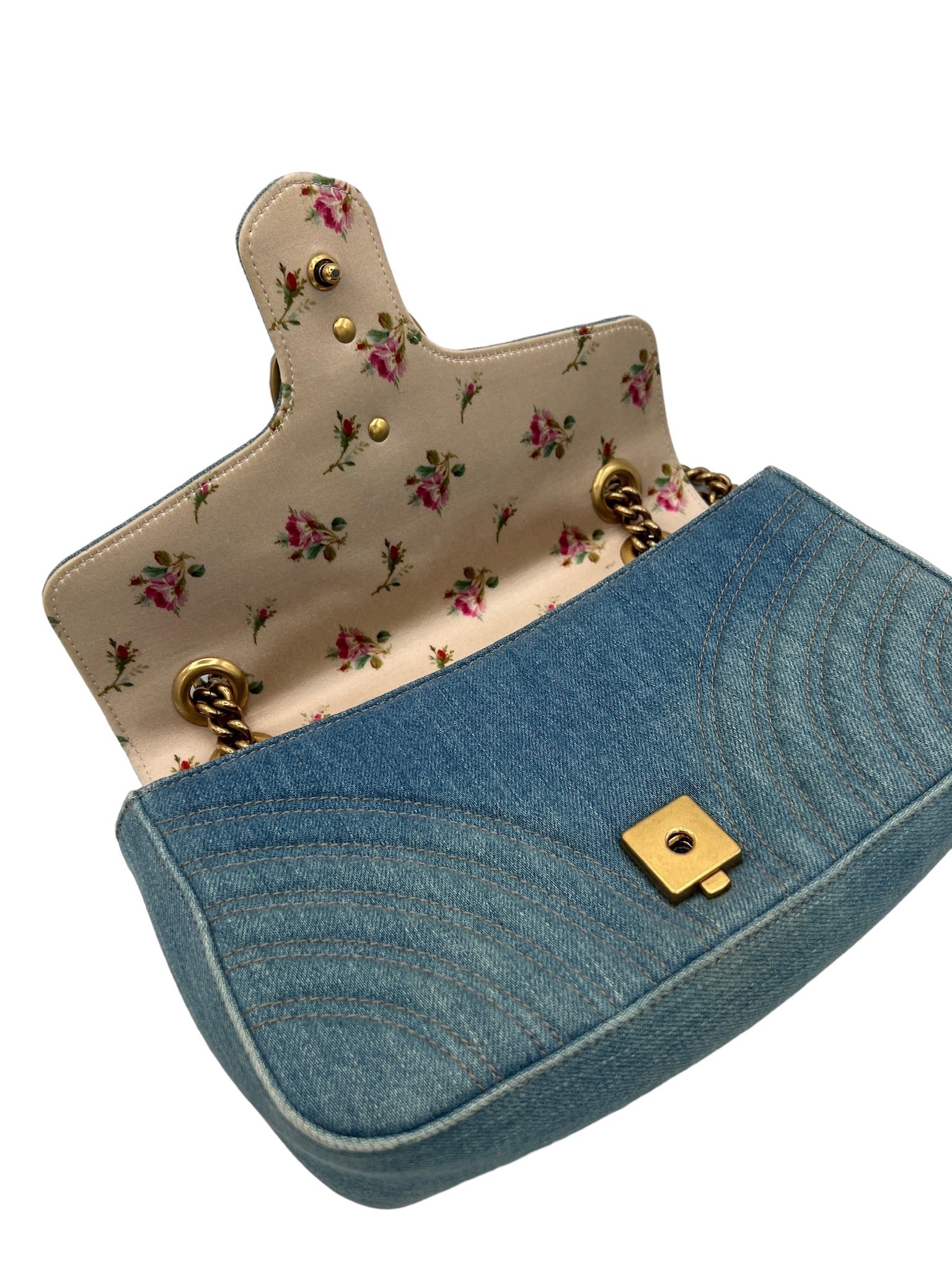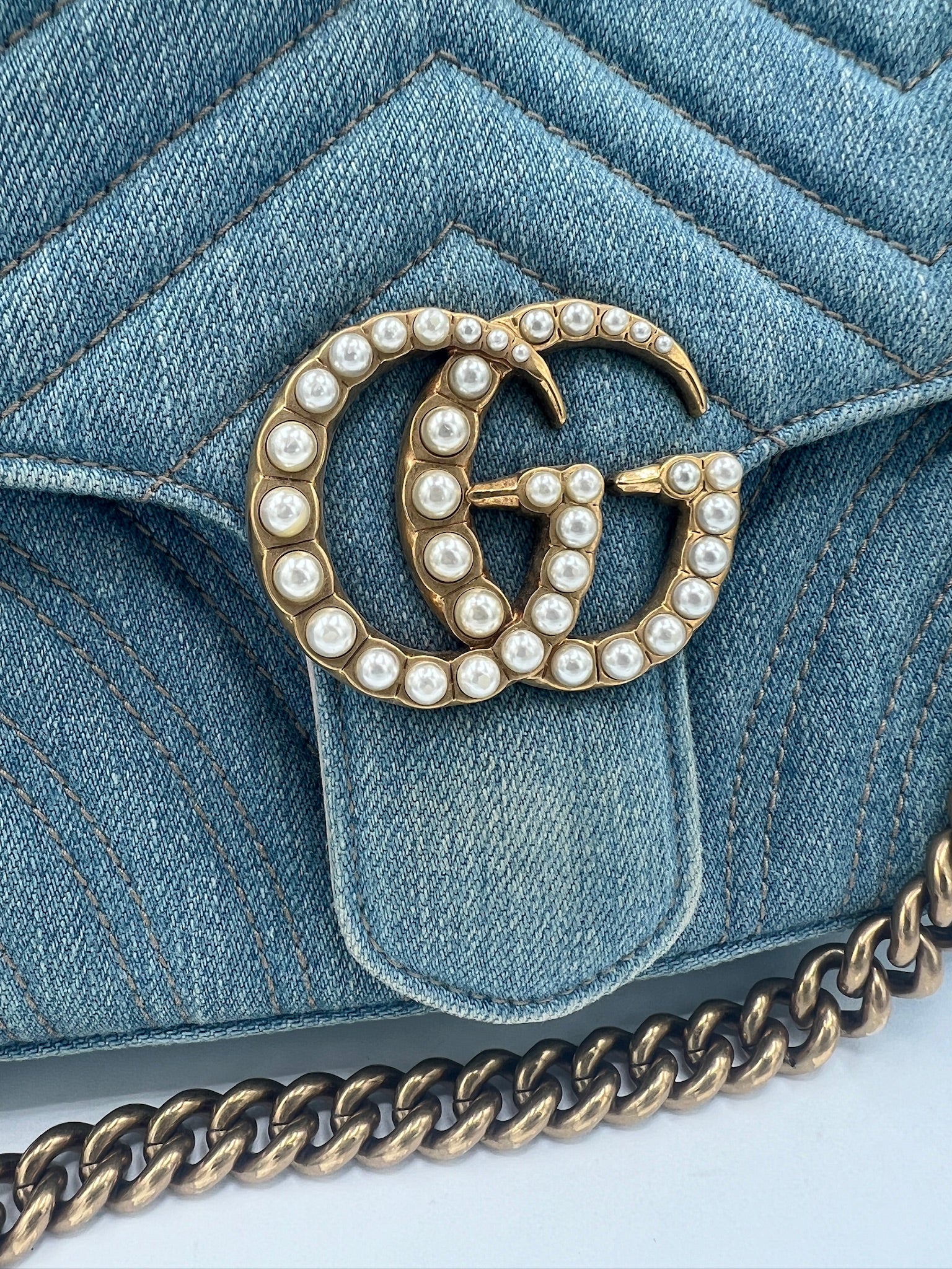 GUCCI - Bolso de hombro de mezclilla azul claro GG Marmont