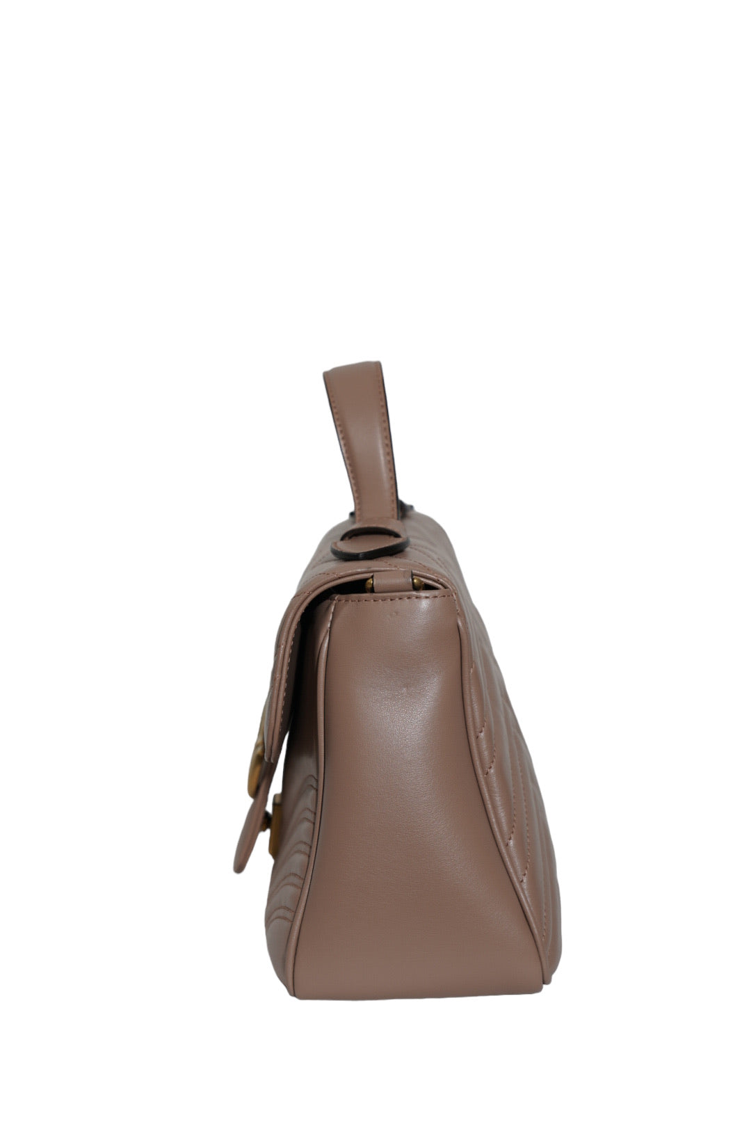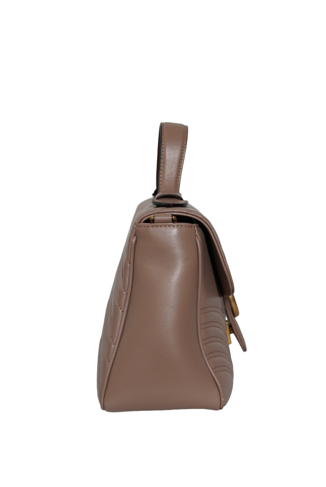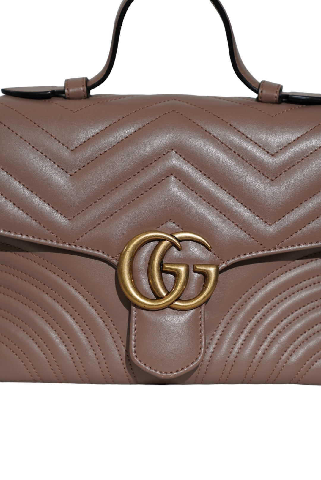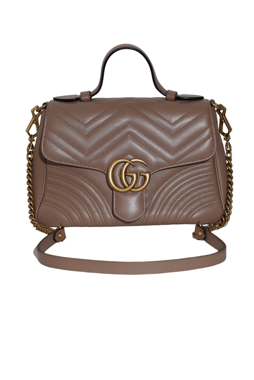 Este bolso con asa superior GG Marmont de GUCCI es una opción elegante para llevar tus objetos esenciales. Con una correa extraíble y detalles dorados, este atractivo bolso garantiza que tus pertenencias estén protegidas con sofisticación.