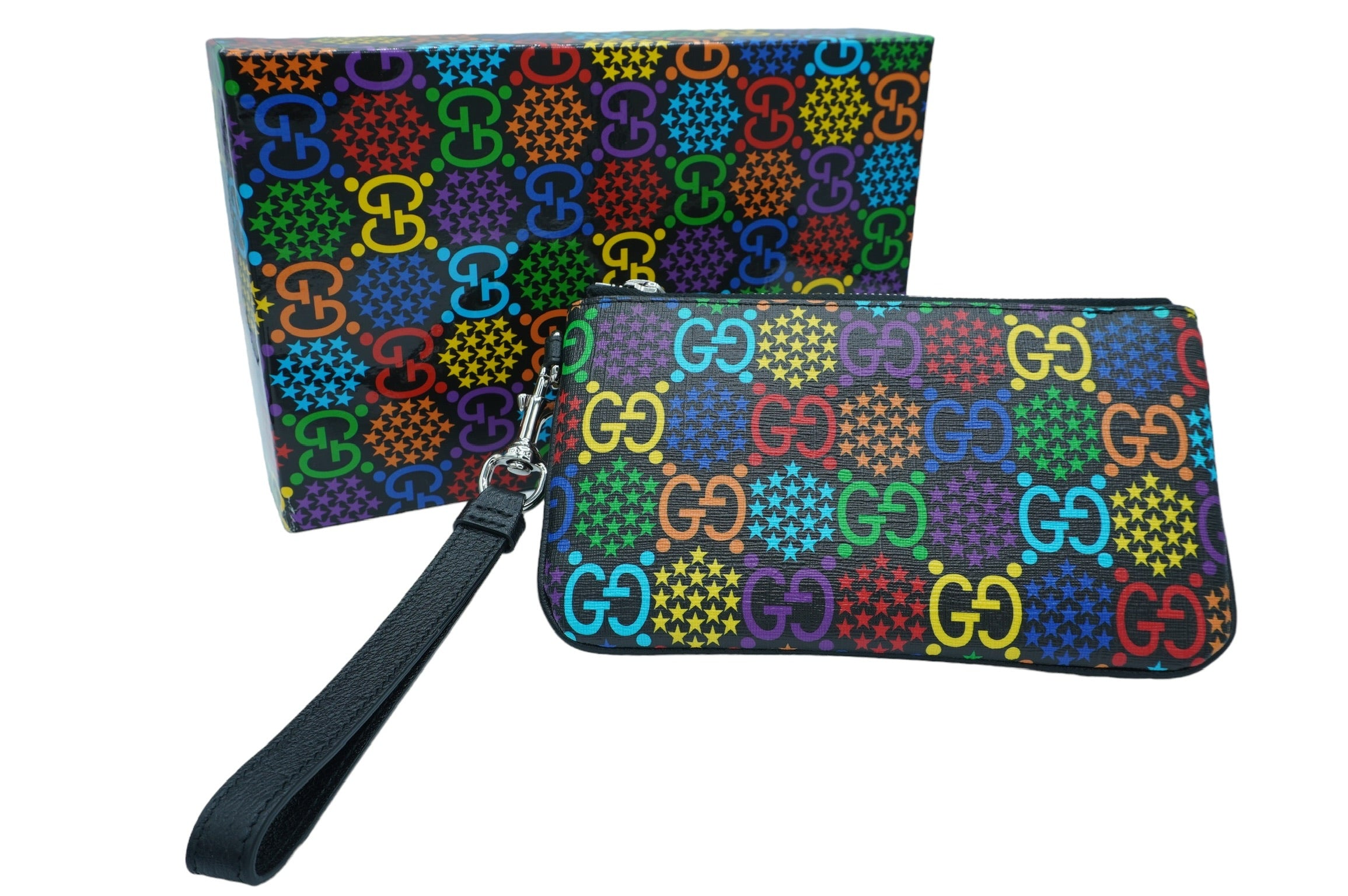 Experimente el lujo y el estilo con el bolso de mano GUCCI GG Psychedelic Multicolor. Fabricado con PVC y cuero de alta calidad, viene con una caja, una funda protectora y una correa para la muñeca. El espacioso interior cuenta con 2 bolsillos abiertos para una fácil organización. Con unas medidas de 12 cm de alto y 20 cm de ancho, este bolso es perfecto para todos sus artículos esenciales.