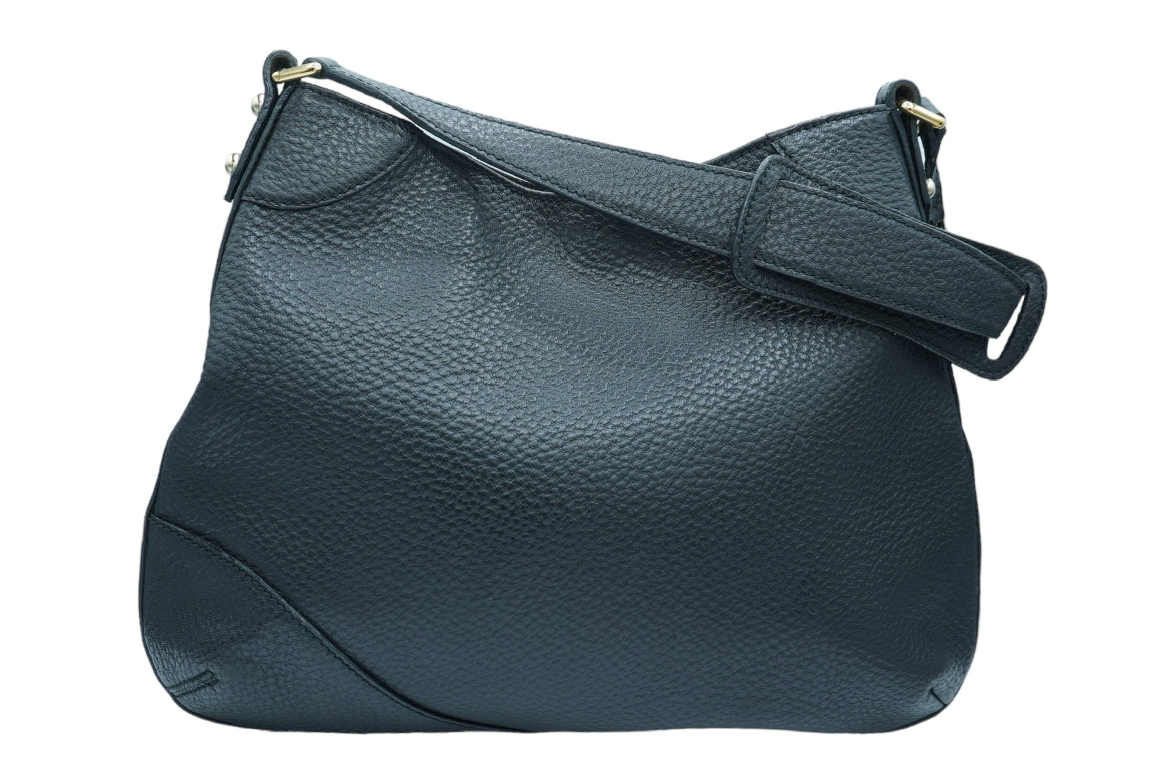 Este bolso de hombro GUCCI Horsebit usado en piel negra es un accesorio elegante para mujer.