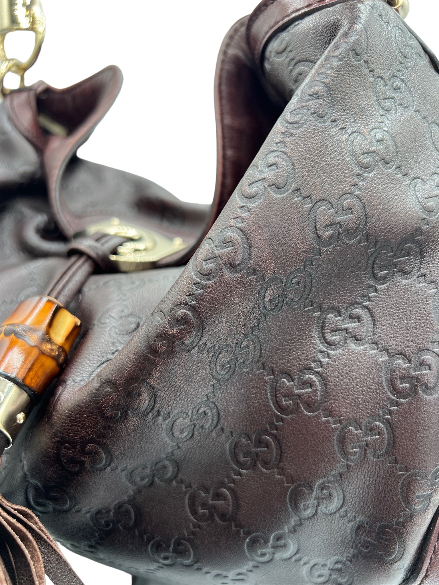 GUCCI - Bolso de hombro marrón oscuro Guccissima Indie
