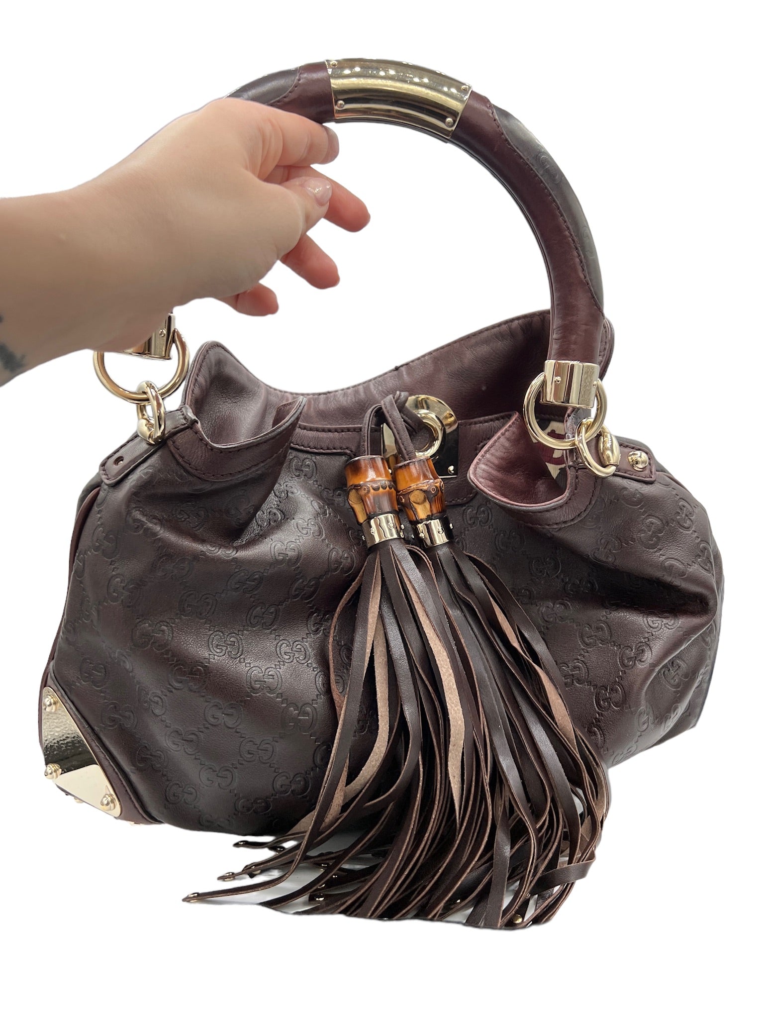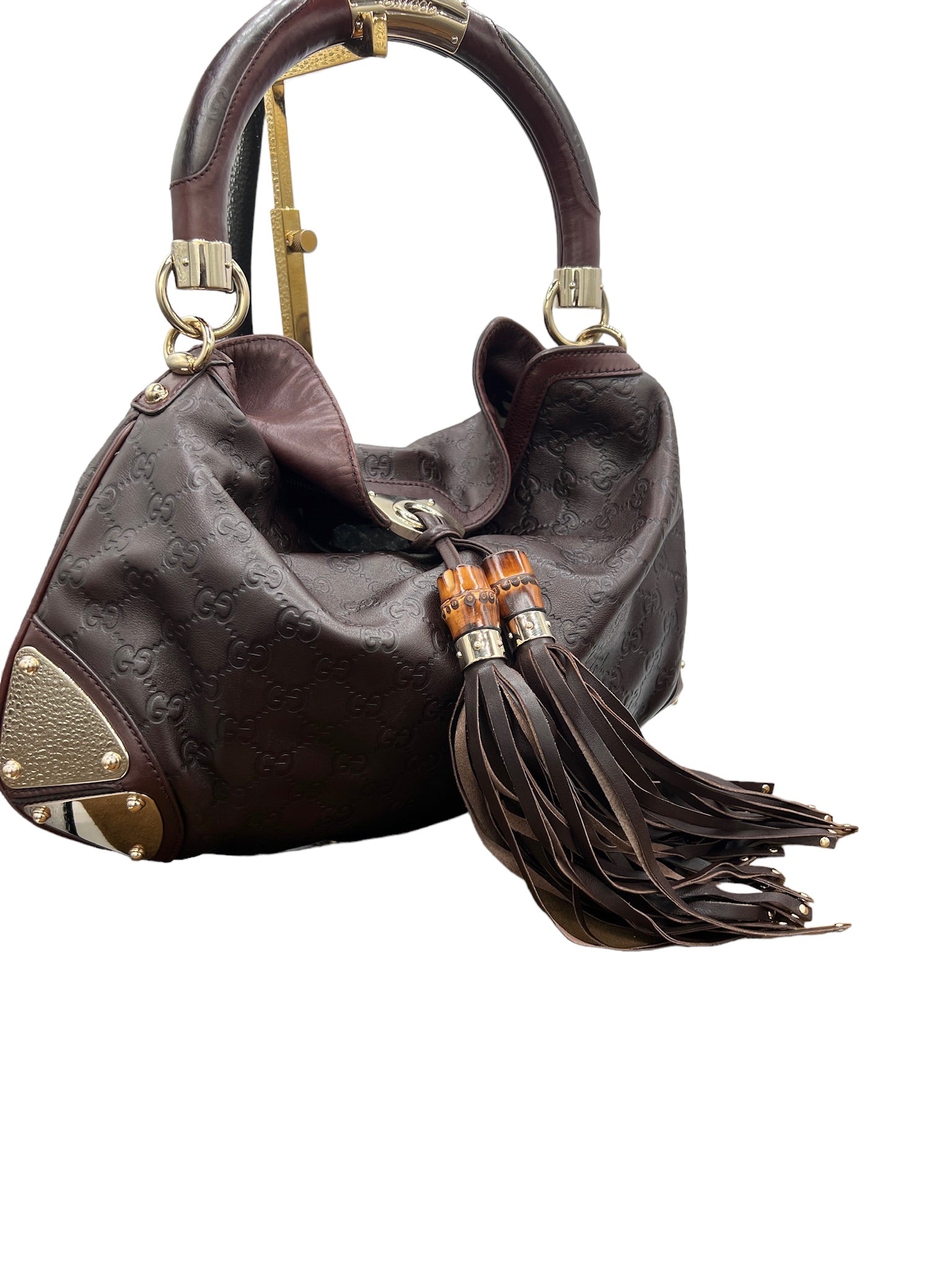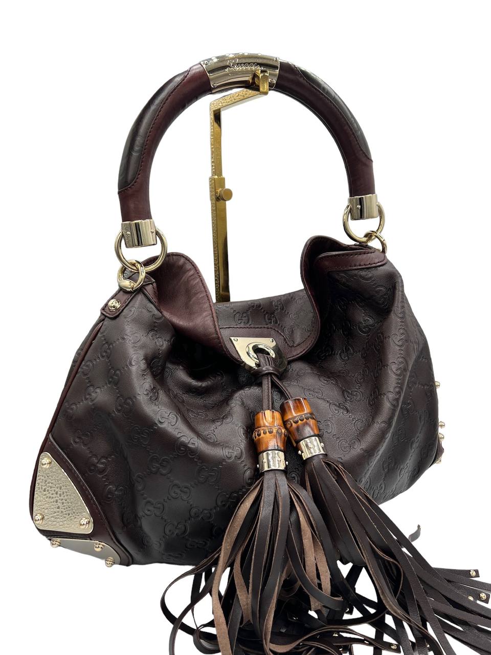 Este bolso de hombro GUCCI Indie de segunda mano en piel marrón oscuro es el accesorio perfecto para cualquier amante de la moda. Con su diseño elegante y sofisticado, este bolso añade un toque de elegancia a cualquier atuendo.