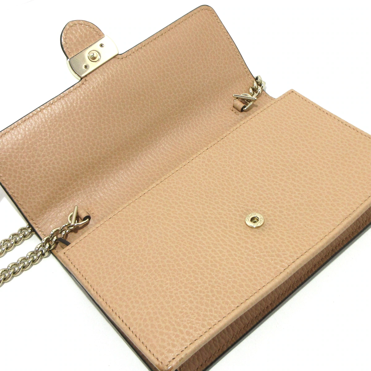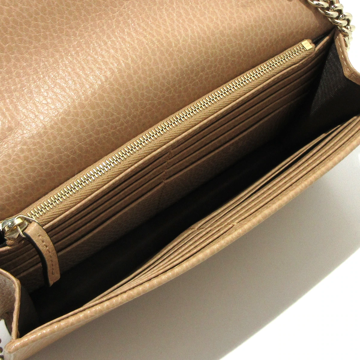 Manténgase elegante y organizado sin esfuerzo con la billetera con cadena GUCCI con G entrelazada. Esta versátil pieza, que mide 12 x 19 x 3,5 cm, cuenta con una correa para el hombro de 60 cm para llevarla fácilmente. Mantenga sus objetos esenciales cerca y con estilo con esta elegante y funcional billetera con cadena.