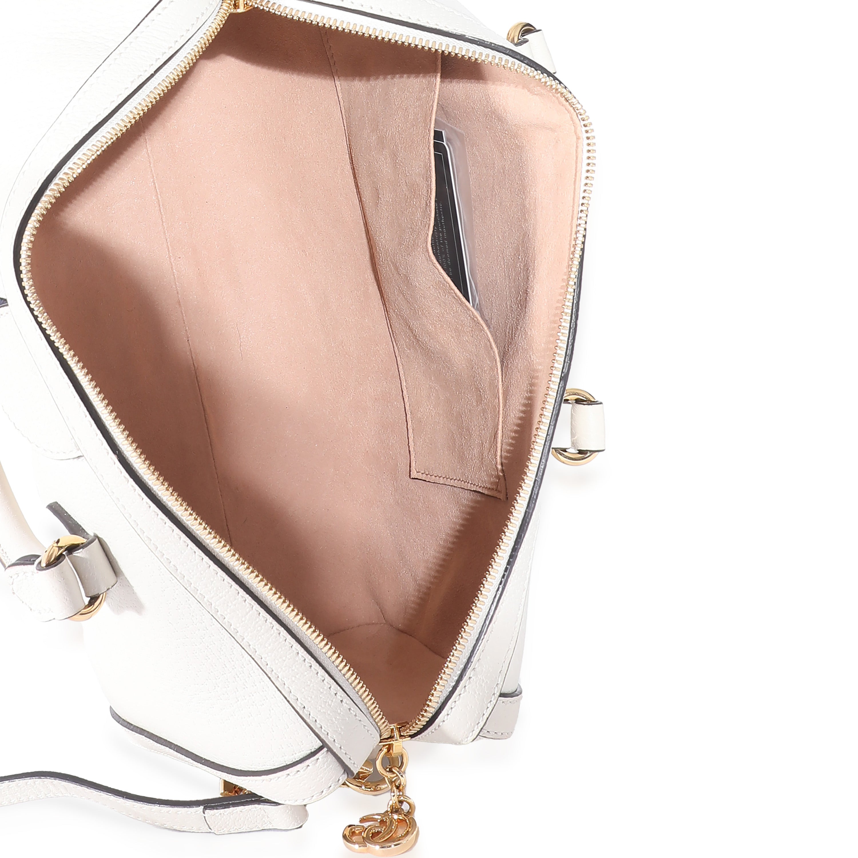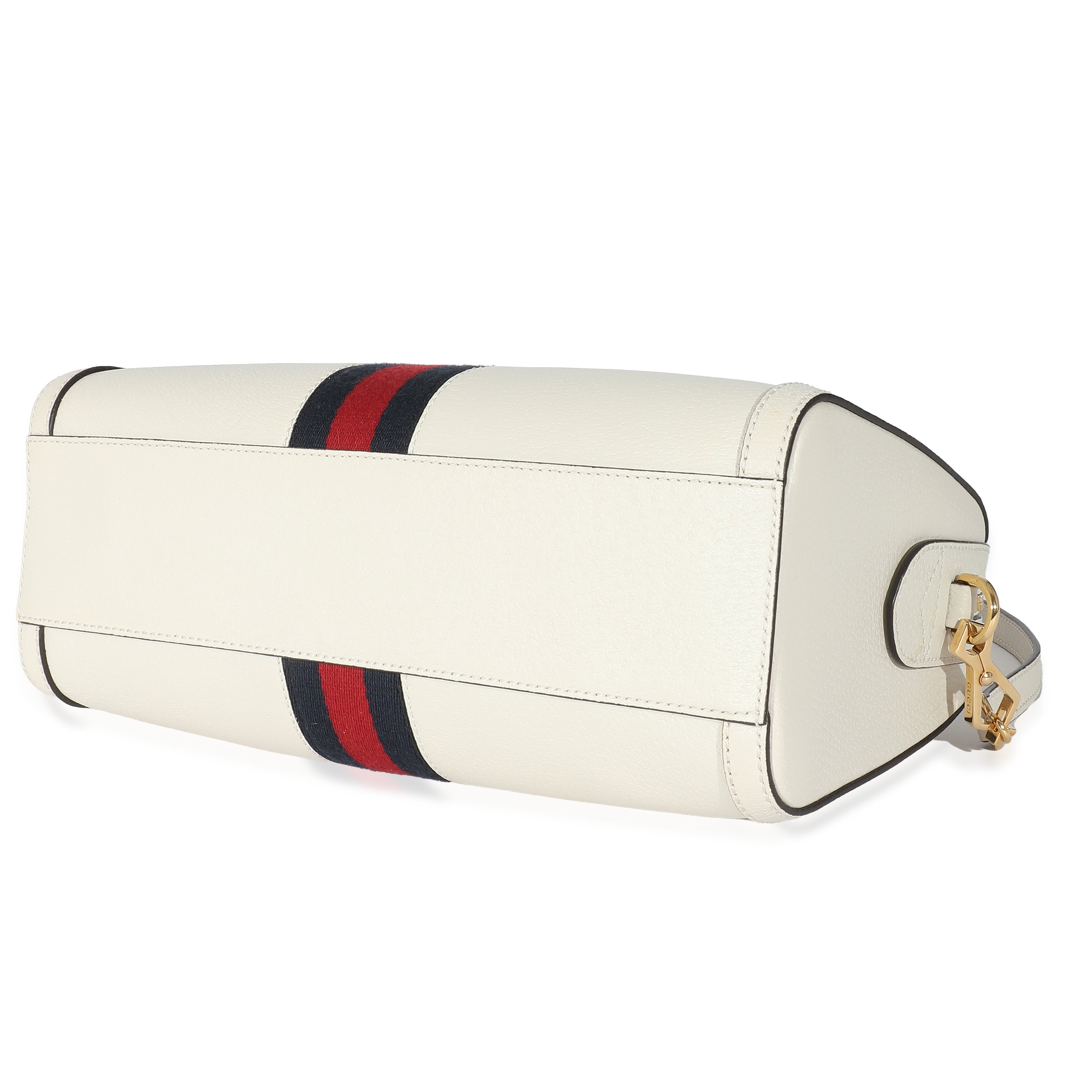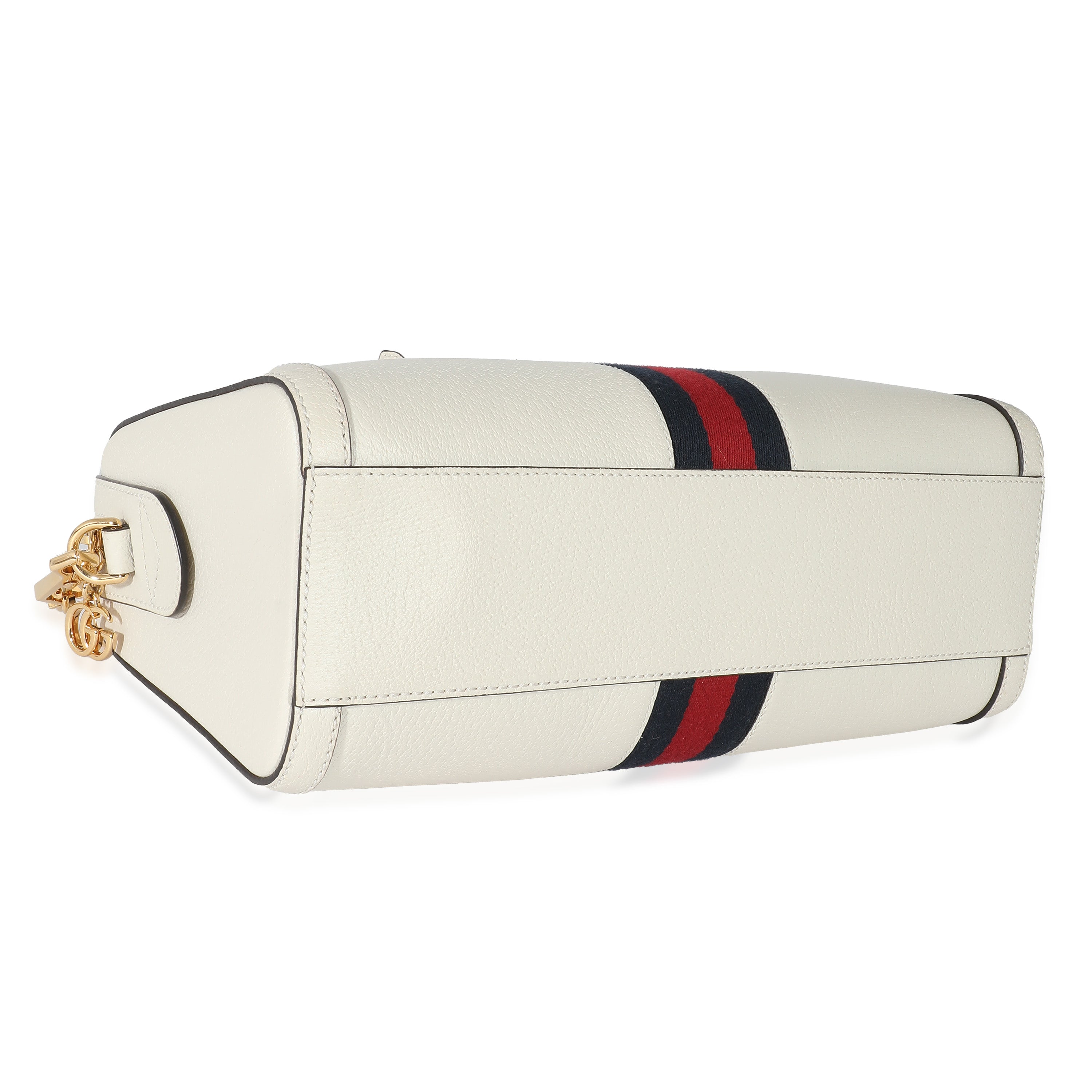 Este bolso Boston mediano Ophidia de piel de becerro texturizada en blanco Mystic de GUCCI está elaborado con cuero italiano genuino. Tiene un tamaño considerable de 32,5 x 16,5 x 13 cm y una longitud de asa de entre 7,5 y 50 cm. Incluye funda guardapolvo, folleto de cuidados y dos correas extraíbles, lo que lo convierte en un accesorio perfecto para viajar o para el uso diario.
