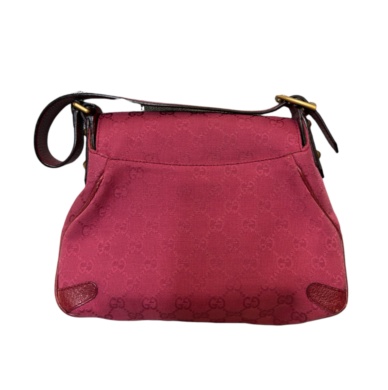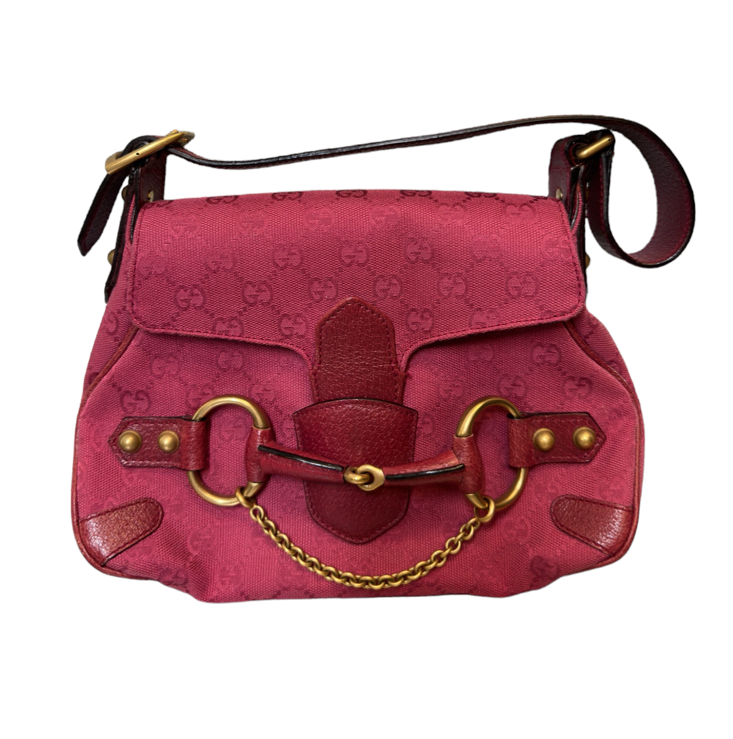 GUCCI - Bolso de hombro pequeño con cadena Horsebit en lona GG en color rosa