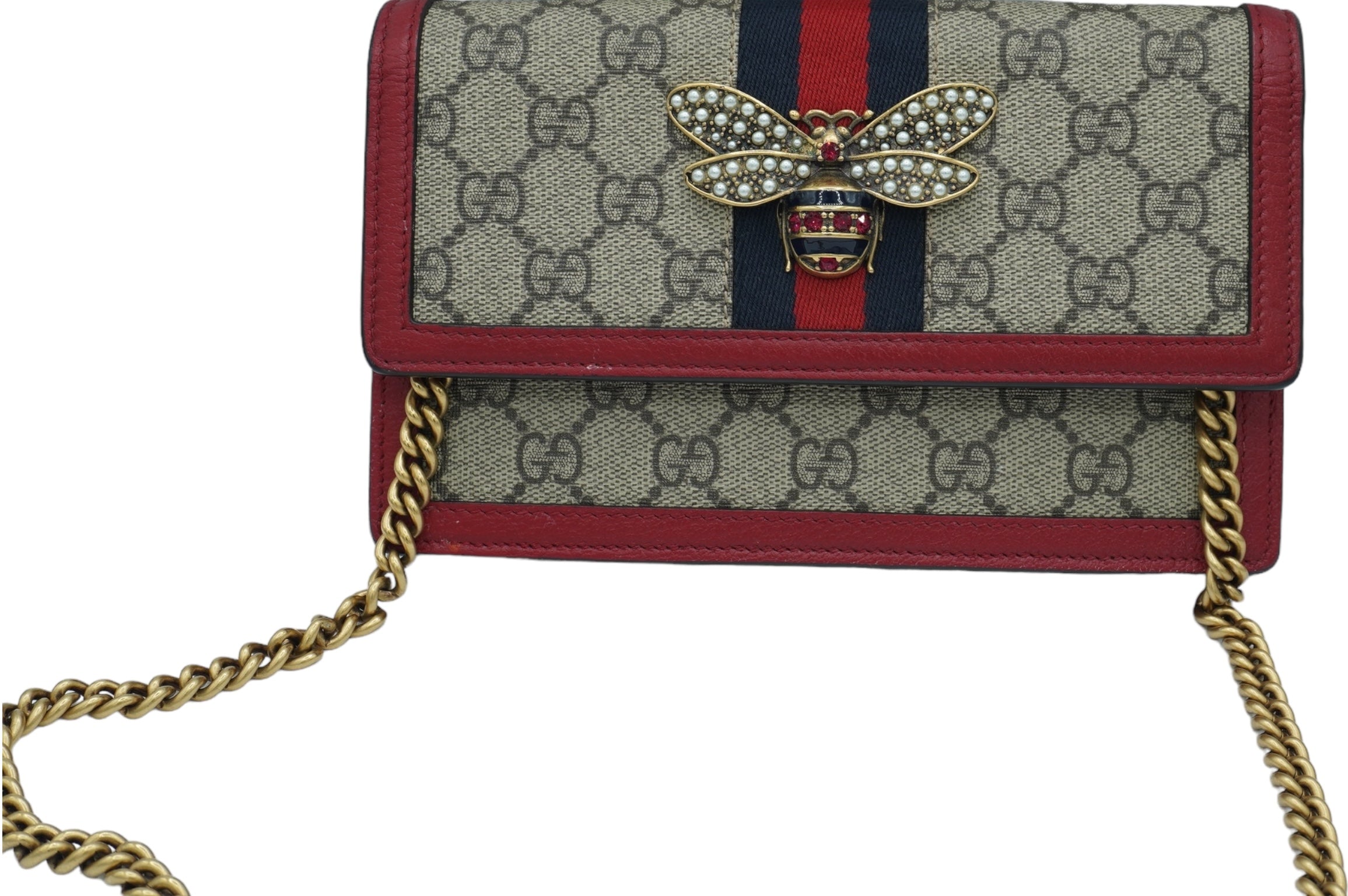 GUCCI - Cartera con cadena Queen Margaret en lona revestida GG Mini